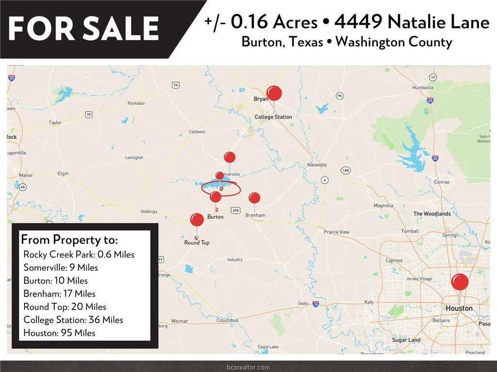 If lake living is your happy place, this property is a must-see! This ±0.16-acre lot is located just 0.7 miles from Rocky Creek Park at Lake Somerville, offering quick access to boating, fishing, and outdoor recreation. Situated in desirable Washington County and conveniently close to the popular Wild Bill’s restaurant, the location blends relaxation with local charm. The property features a stately oak tree providing natural shade along with a level, open area well-suited for an RV setup. An electric pole with a 30-amp connection is already on site. Water will require a well. Centrally located just 15 minutes to Somerville, 20 minutes to Brenham, 25 minutes to Round Top, 36 miles to Bryan/College Station, and approximately 90 miles to both Austin and Houston. Bring your RV and enjoy easy access to everything the area has to offer!