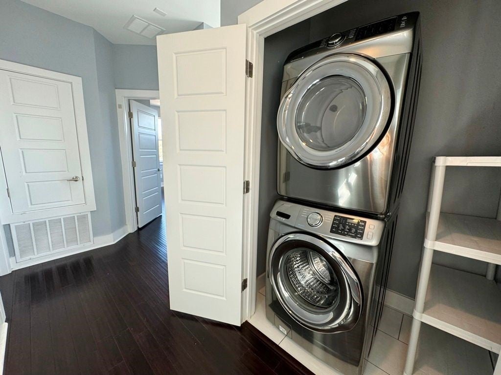 - Washer/Dryer Stacked, Dishwasher, Free-Standing Gas Oven, Gas Cooktop, Disposal, Gas Water Heater, Microwave, Refrigerator, Range Hood, Stainless Steel Appliance(s), Tankless Water Heater