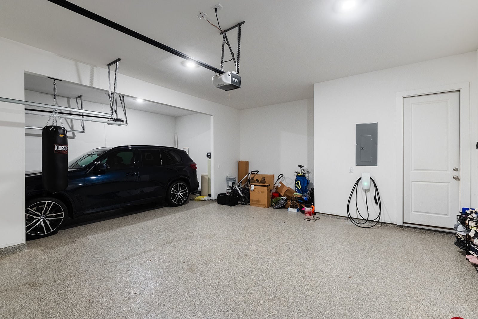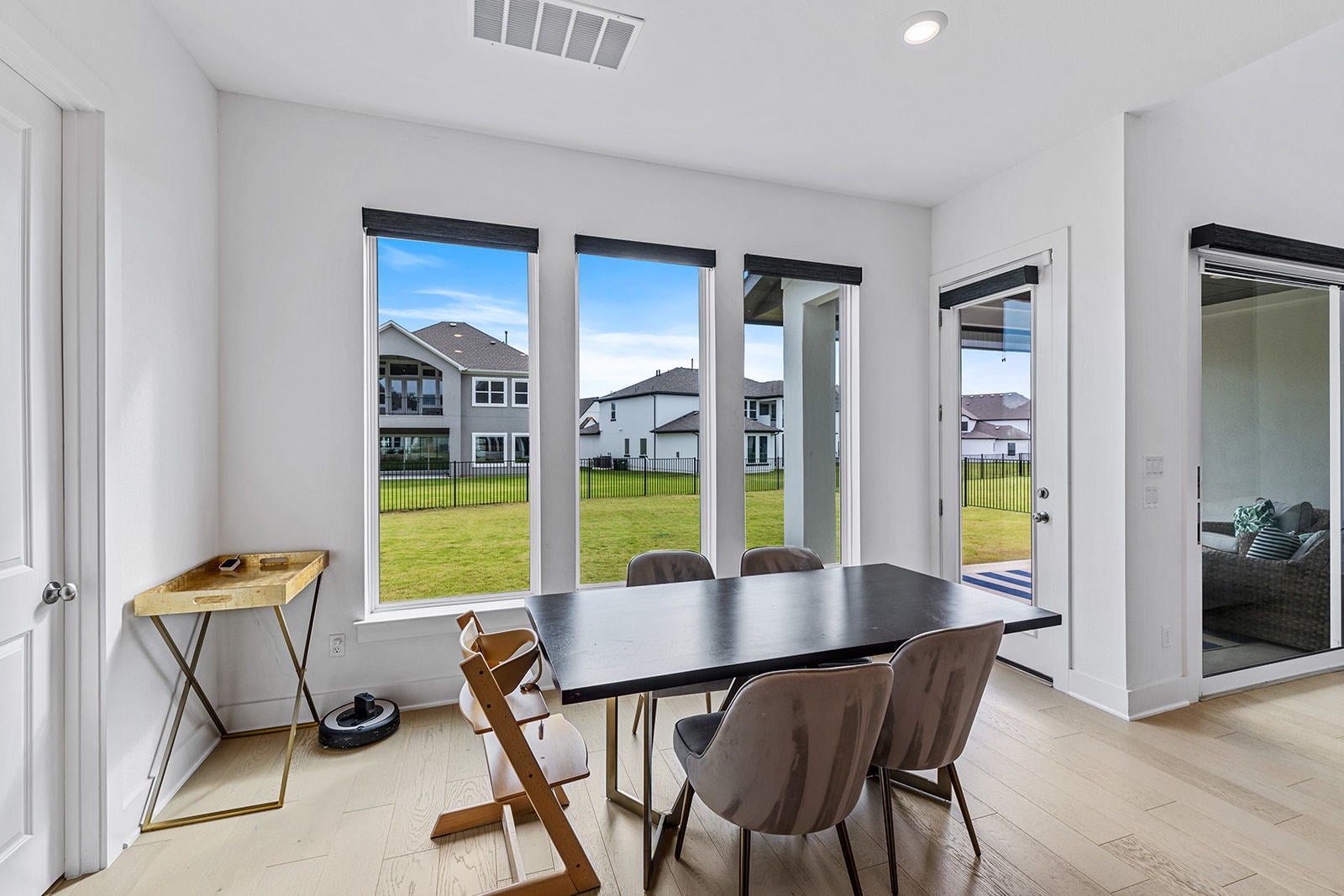 A completely flat, NE Facing Travisso homesite, on a cul de sac street, a true rarity! The highly sought after Arabella Floorplan by Taylor Morrison is an expansive five-bedroom, five-bathroom home offers 4,403 square feet . The main floor features a grand entry highlighted by a rounded staircase, high ceilings, and abundant natural light. A spacious living area centers around a modern fireplace with sleek custom mantle, and the designated painted study provides an idea modern work at home environment. The primary bedroom, also on the main floor, includes an extended sitting area, a luxurious drop-in tub, and an impressive custom closet. A guest ensuite on the main level ensures privacy and comfort for visitors. Upstairs, you’ll find a large media room, game room, and thoughtfully designed secondary bedrooms, each with custom closets for maximum usage and design. The three-car garage includes durable epoxy flooring, perfect for both parking and workshop needs. Included is a TESLA Wall Charging Unit. Nestled on a flat homesite, the large backyard provides ample space for activities or future customization. The home location nears both the front and Osage entrance of the Travisso Community, providing an advantageous exit into central Leander. Located in the highly sought-after Leander School District. Refrigerator, washer and dryer will be provided!