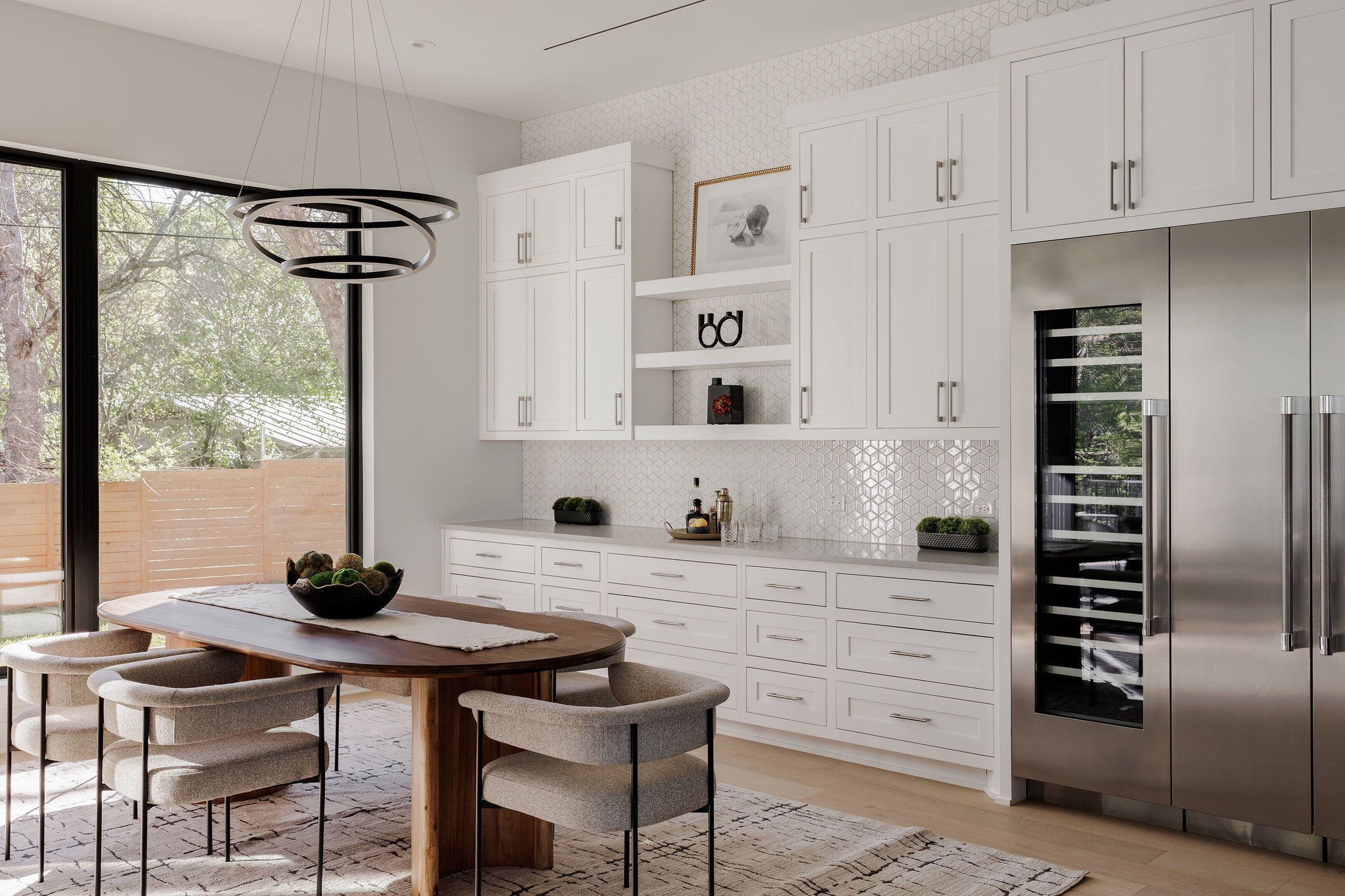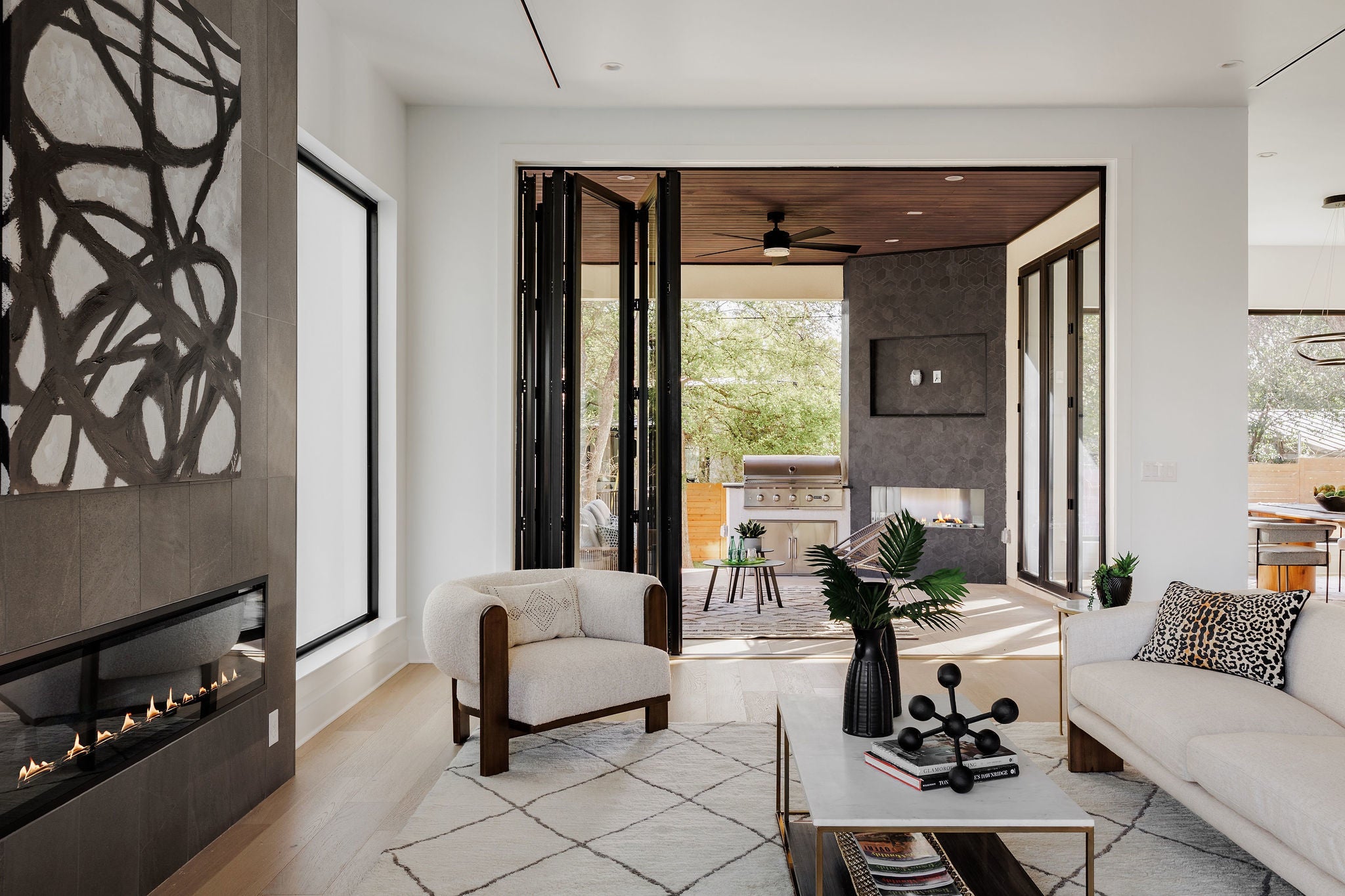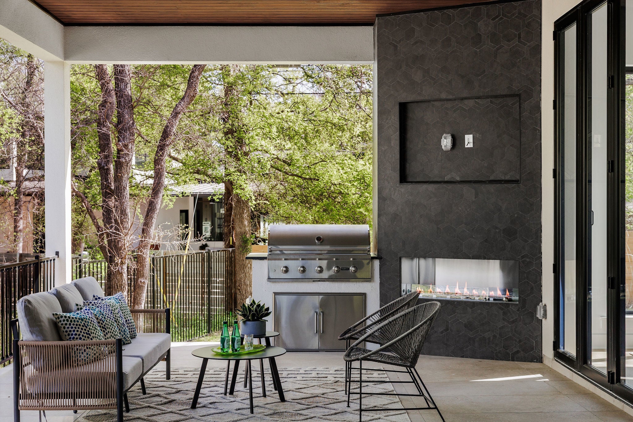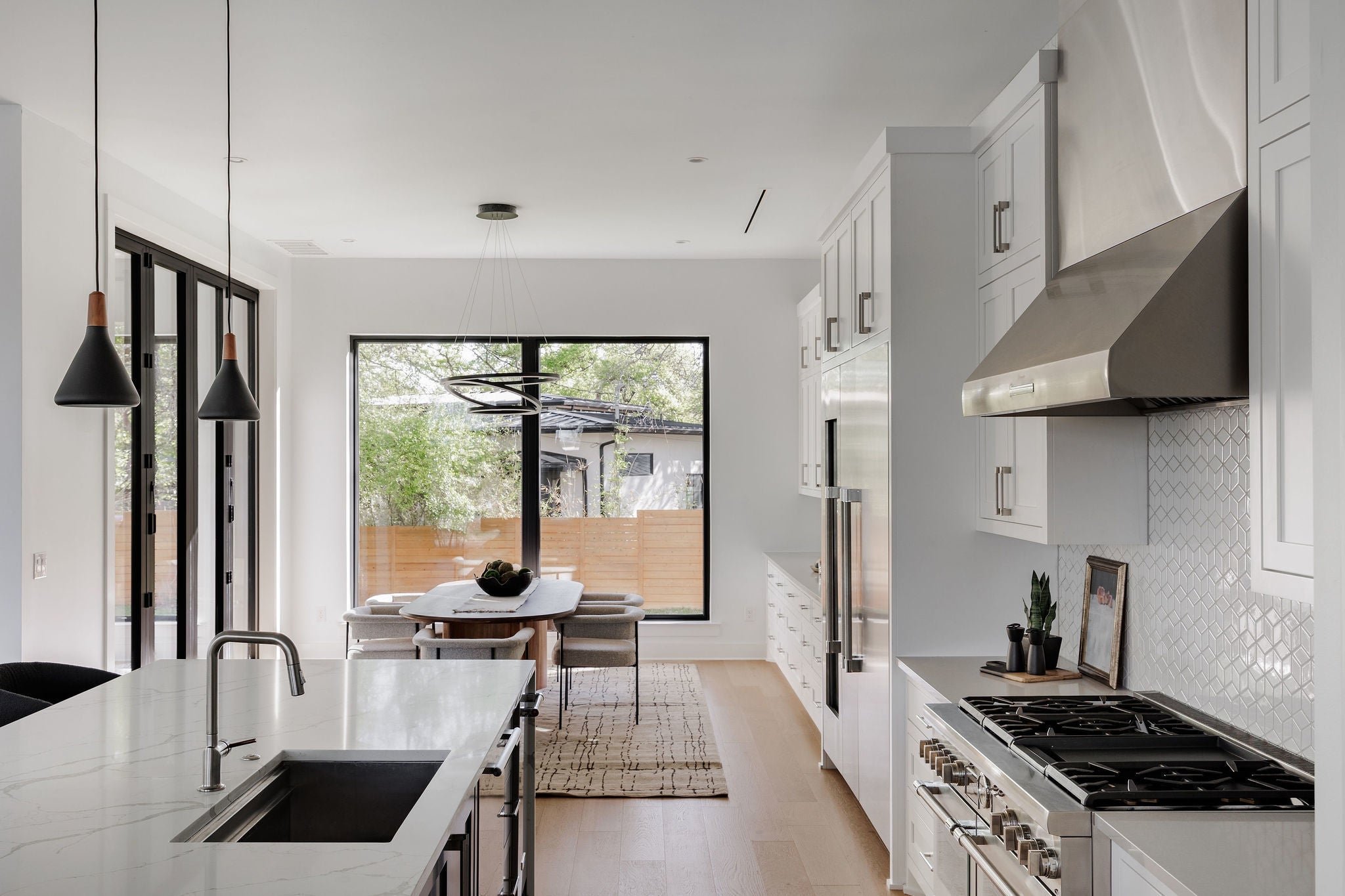 Tucked at the end of a quiet cul-de-sac in the heart of Barton Hills, this newly built residence is a study in scale, design, and setting, where refined architecture meets one of Austin’s most coveted natural backdrops. Built by Hayes Builders, one of Austin’s select LEED-certified builders, the home embodies a thoughtful standard of construction centered on efficiency, sustainability, and lasting quality. Designed with both comfort & performance in mind, it offers healthier indoor air quality, greater efficiency, and a more intentional approach to everyday living. Set on 0.26 acres backing to greenbelt and situated near Barton Creek, the home is thoughtfully positioned to capture both privacy and serenity. Clean lines, warm materials, and a striking design create a modern yet grounded abode that feels right at home in 78704. Inside, over 4,300 square feet of living space unfold with intention. Expansive glass, soaring ceilings, and a seamless indoor-outdoor connection define the main living areas, while a curated palette of wood, stone, and designer finishes brings warmth and depth throughout. The gourmet kitchen is a statement piece, complete with built-in appliances, custom cabinetry, a scullery, and a large center island. The main-level primary suite offers private outdoor access and a spa-like bath with soaking tub, walk-in shower, and an expansive custom closet. Additional living spaces, including a game room with a bar, multiple dining areas, and flexible-use rooms, create a layout that adapts effortlessly to both entertaining and everyday living. Outdoor spaces are shrouded in nature and privacy, featuring covered patios, terraces, and a private yard framed by mature trees, perfectly suited for quiet mornings or hosting under the Texas sky. With smart home integration, energy-efficient systems, and a location that places you minutes from everything Austin has to offer, this home delivers a combination of thoughtful design, modern comfort, and enduring value.