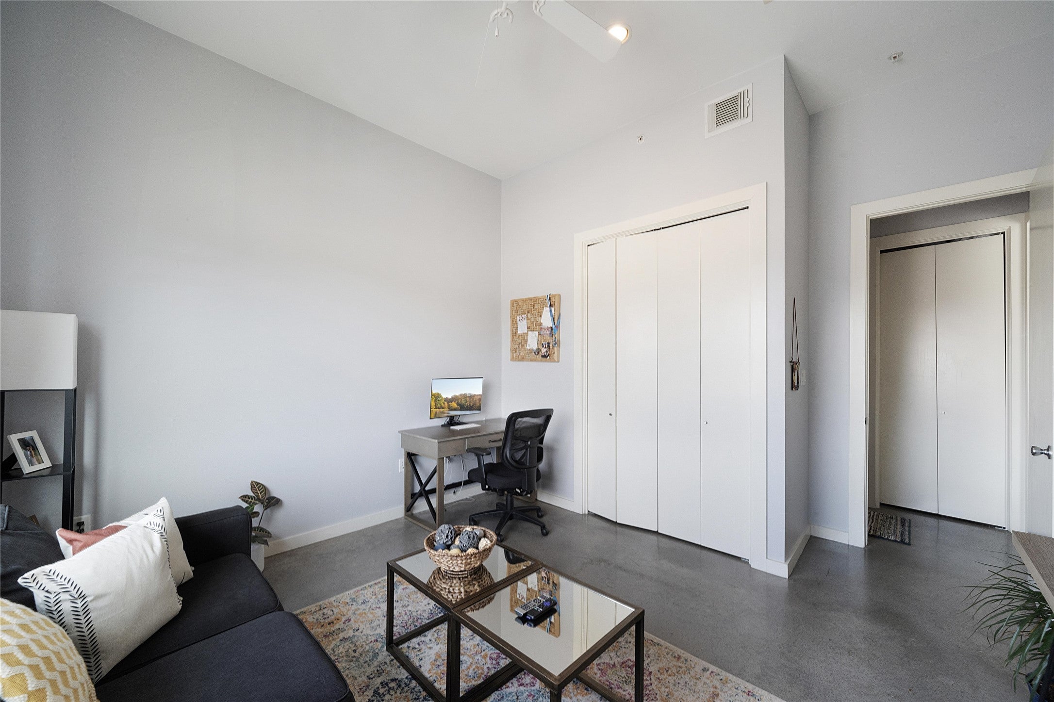 South Lamar location • Downtown Austin skyline views • Large covered balcony • End-unit condo on 3rd floor Located in the South Lamar corridor, this 3rd-floor end-unit condo offers a modern layout with downtown Austin skyline views from a spacious covered balcony. The open-concept floor plan connects the kitchen, dining, and living areas, with high ceilings, large windows, and concrete flooring throughout for a clean, contemporary feel. The kitchen features granite countertops, stainless steel appliances, gas range, and a center island with bar seating. The living area is positioned to capture natural light and exterior views, with direct access to the balcony for outdoor seating or entertaining. The primary bedroom includes large windows and connects to a bathroom with double vanity and a walk-in closet. A second bedroom provides flexibility for a home office setup. Laundry closet with washer and dryer included. This unit includes two assigned parking spaces and offers both gated pedestrian access and direct drive-up entry. Positioned along S Lamar Blvd with proximity to local dining, coffee shops, and retail. Convenient access to US-290 and TX-71 with a short drive to Downtown Austin and Lady Bird Lake. Opportunities in this location move quickly, schedule your showing today to view it in person.