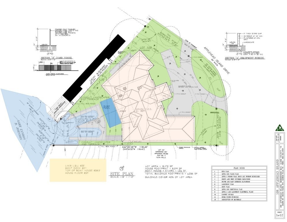 Build your dream home on this stunning waterfront lot located along the shores of Lake LBJ in the exclusive waterfront community of Applehead Island. This .35-acre homesite is one of the few remaining undeveloped lots available on this gorgeous island development that is home to some of the finest waterfront homes Horseshoe Bay has to offer. This lot is positioned to the Southwest with 165 feet of street frontage, 22 feet of lake frontage and offers excellent views out to the big open water. Don’t let the 22 feet of waterfront deter you because this lot will accommodate two 27-foot covered boat slips and two Jet-Ski lifts by cutting into the lot, which also creates additional waterfront. The topography of the lot is such that the roof of the boathouse will not be in the line of sight of the water views from the home. Applehead Island is a gated community that features 24-hour security, gorgeous peninsulas, exceptional amenities, and luxurious waterfront living. What an amazing place for you to build your luxury home, swimming pool, and private boathouse. There is a full set of beautifully designed house plans that will be conveyed with the sale of the lot. Don't miss this opportunity to own a premier Lake LBJ waterfront lot in a prestigious waterfront community.