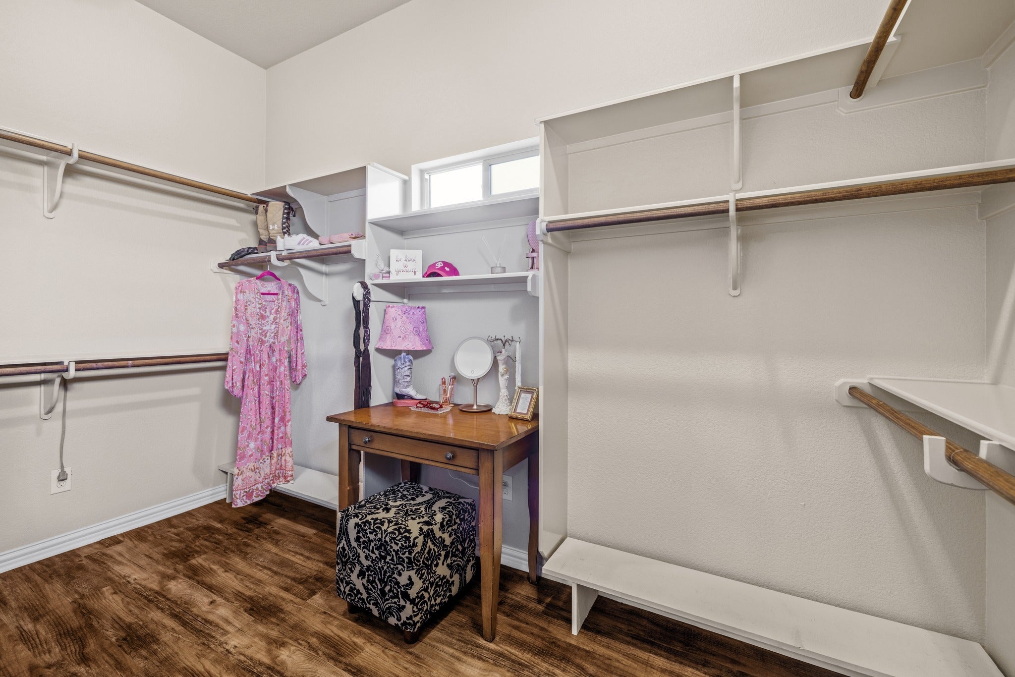 Situated on 1.89 acres with beautiful Hill Country views, this Georgetown property offers the rare combination of peaceful country living just minutes from downtown. Mature trees, open space, and wide views create a setting that feels private and relaxed while still being conveniently close to shopping, dining, and everything Georgetown has to offer. Inside, the home features an open and inviting layout with warm wood flooring, granite countertops, and a spacious kitchen with custom wood cabinetry and stainless appliances that flows naturally into the living area anchored by a stone fireplace. Large windows bring in natural light and frame the surrounding landscape. The downstairs secondary bedroom is currently used as a study and makes an ideal home office, featuring generous space and beautiful built-in wood shelving that adds both character and functionality. The primary suite is spacious and private, with a large bathroom, walk-in shower, soaking tub, and an oversized walk-in closet. Additional bedrooms offer flexibility for family, guests, or hobbies. Outdoor living is where this property truly shines. Enjoy the expansive covered patio and deck overlooking the backyard, perfect for entertaining, relaxing evenings, or watching the sunset across the Hill Country. The property also features a fire pit area and plenty of space to spread out, garden, or simply enjoy the land. Enjoy room to breathe, incredible views, and a true Texas Hill Country feel while still being close to town.