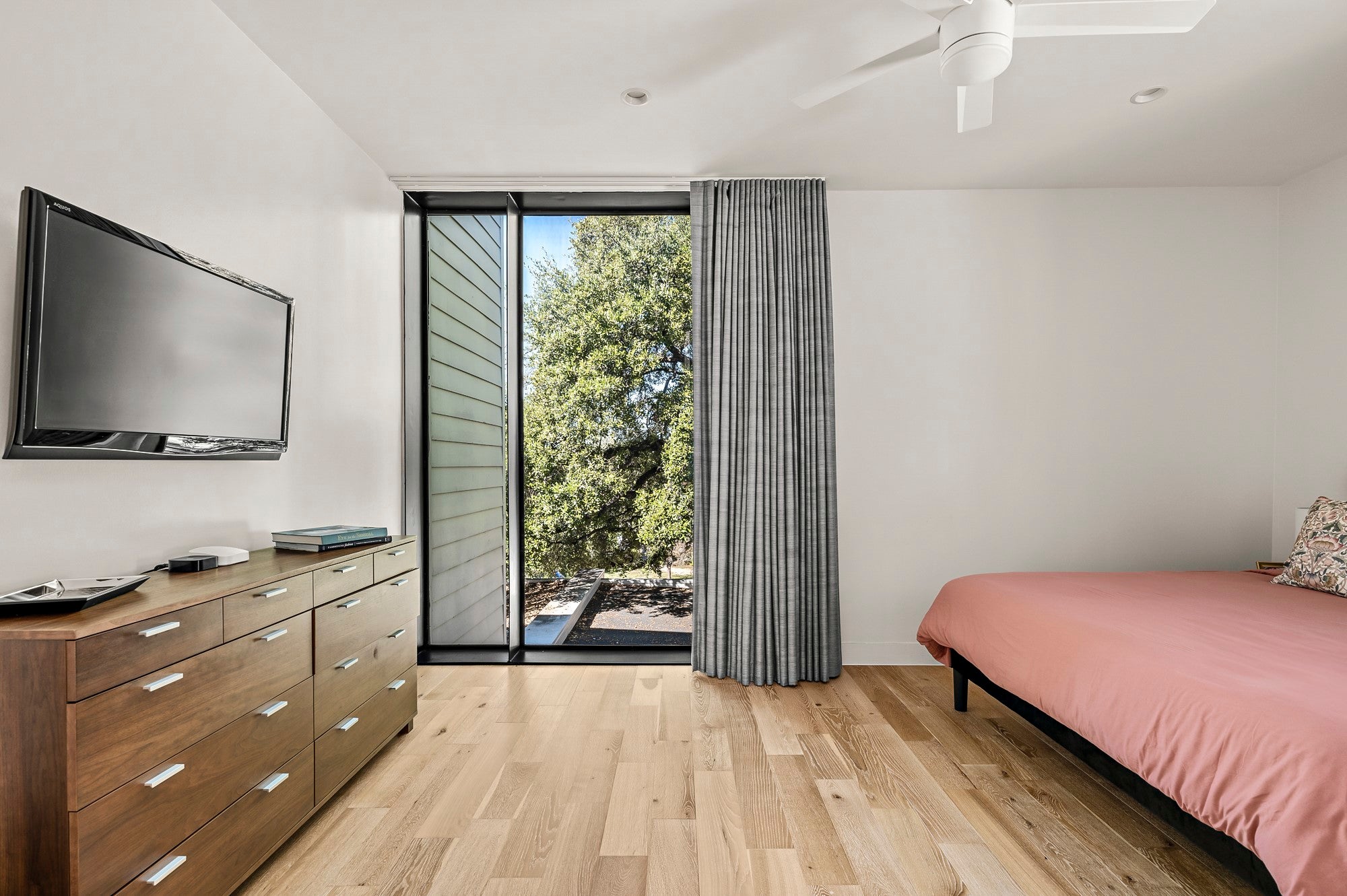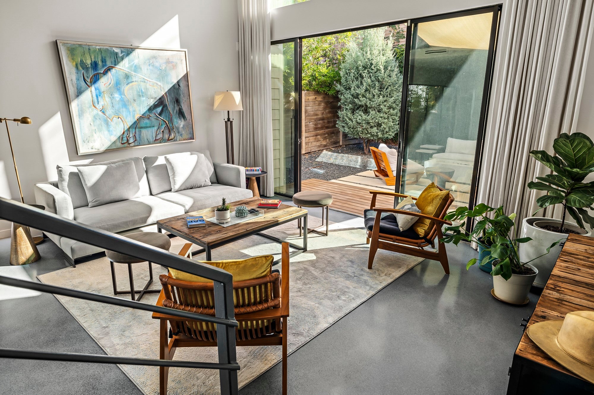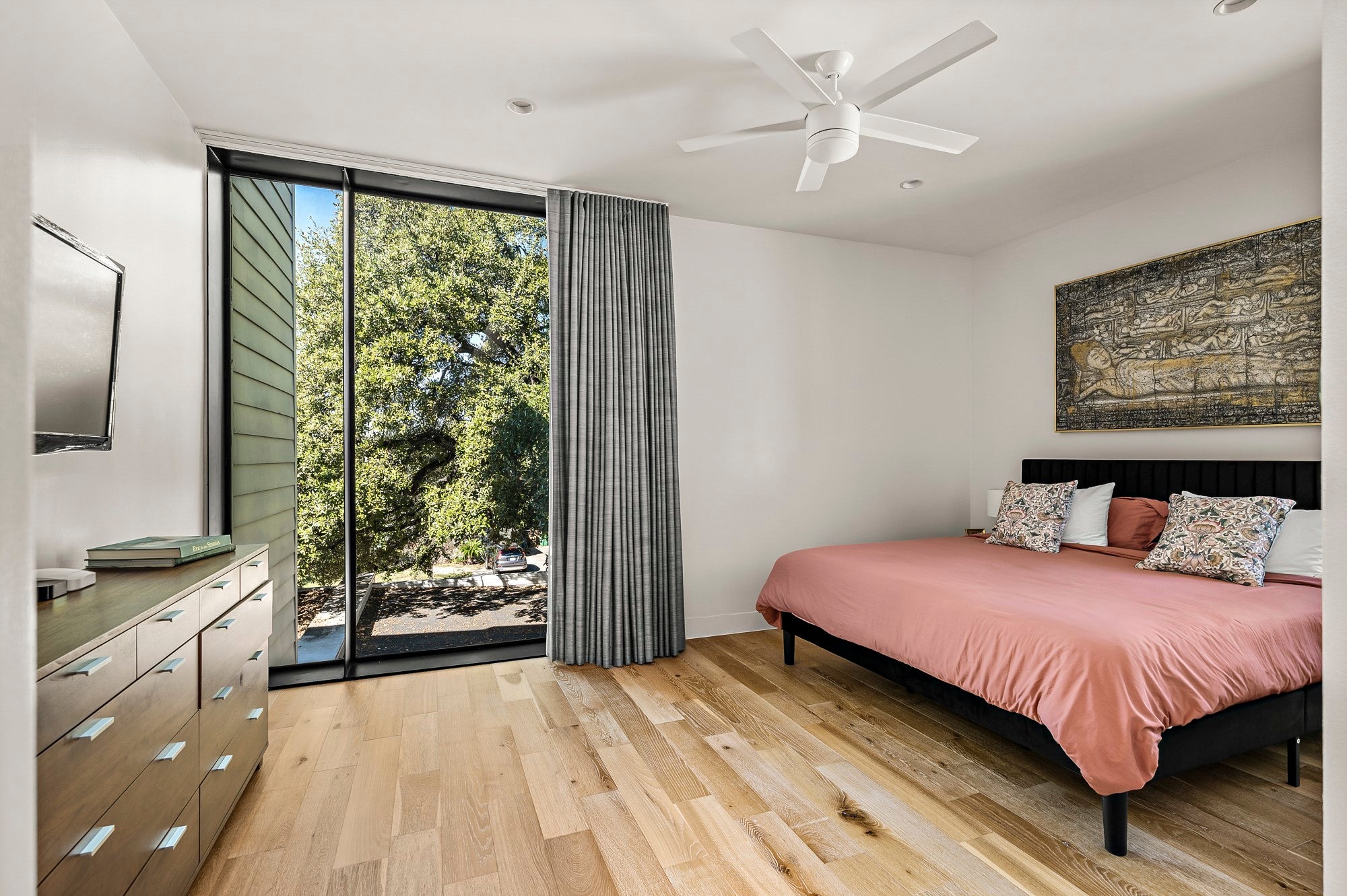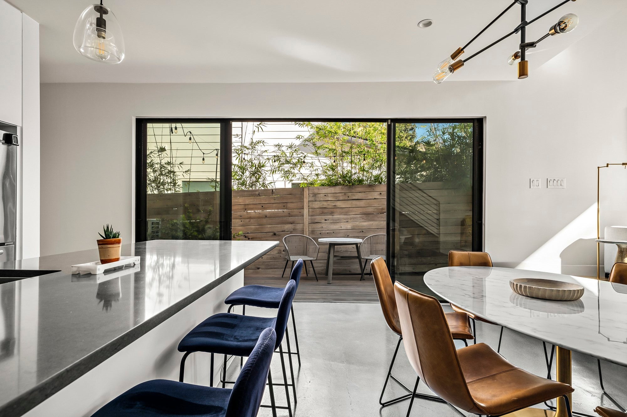 Positioned in the vibrant heart of Austin’s coveted South Austin 78704, this exceptional modern residence offers the rare combination of privacy, walkability, and urban energy. Set between South Congress and South First, the home places you directly within the rhythm of the South Austin lifestyle, where coffee shops, acclaimed restaurants, live music, parks, and everyday conveniences are right outside your door. Inspired by Danish simplicity, the architecture is clean, refined, and intentionally calming. Concrete floors on the main level create a sleek contemporary foundation, while wide plank white oak upstairs introduces warmth to the private living spaces. Floor to ceiling windows flood the interiors with natural light, highlighting the home's architectural lines and creating an open, airy atmosphere. The thoughtfully designed layout maximizes both function and flow. A sculptural floating staircase anchors the open concept living space, while expansive sliding glass doors extend the living area to a private backyard retreat ideal for entertaining or relaxing under the Austin sky. The gourmet kitchen features JennAir appliances, premium materials, and designer lighting and plumbing fixtures. The main level includes a private bedroom suite with its own ensuite bath, offering flexibility for guests or multigenerational living. Upstairs, two additional bedrooms each feature ensuite baths, while a versatile loft or office overlooks the living area below and provides an ideal work from home setting. Walk to local favorites including Simona's, The Wheel, Lucy's Fried Chicken, Freddo ATX, Habana, C Boys, Cosmic Pickle, Magnolia Cafe, Polvos, Teal House, Phoebe's Diner, The Meteor, Vinaigrette, and the open green space of Gillis Park. Impeccable craftsmanship, abundant natural light, thoughtful design, and an unbeatable South Austin 78704 location define this exceptional residence, a modern sanctuary in one of Austin's most vibrant neighborhoods.