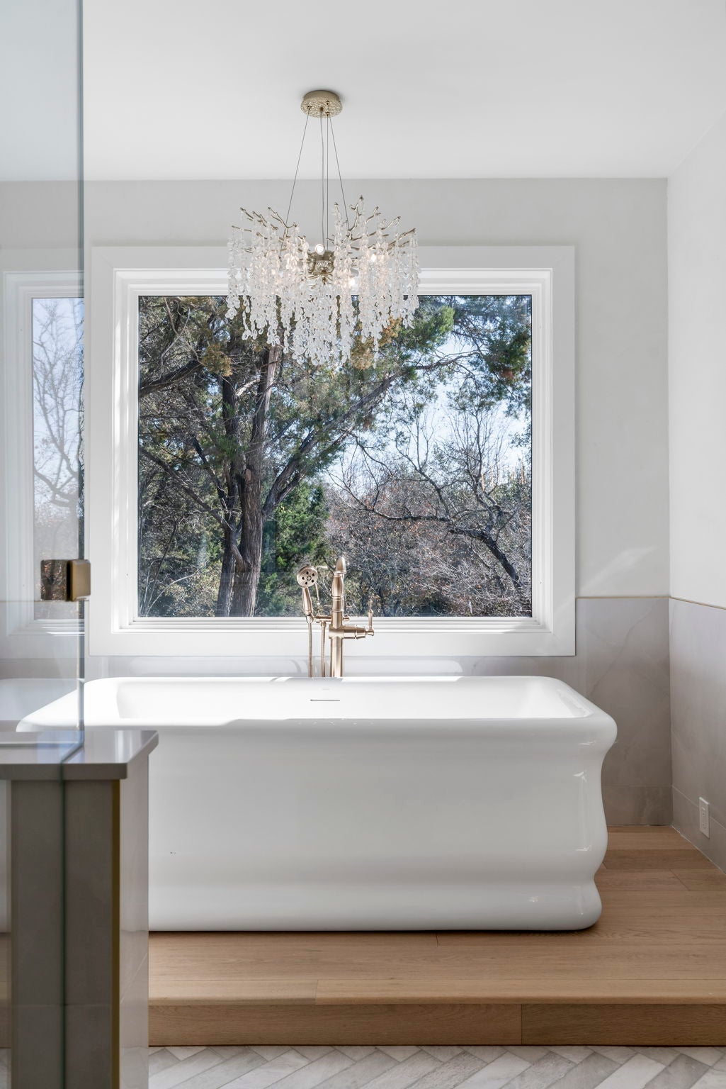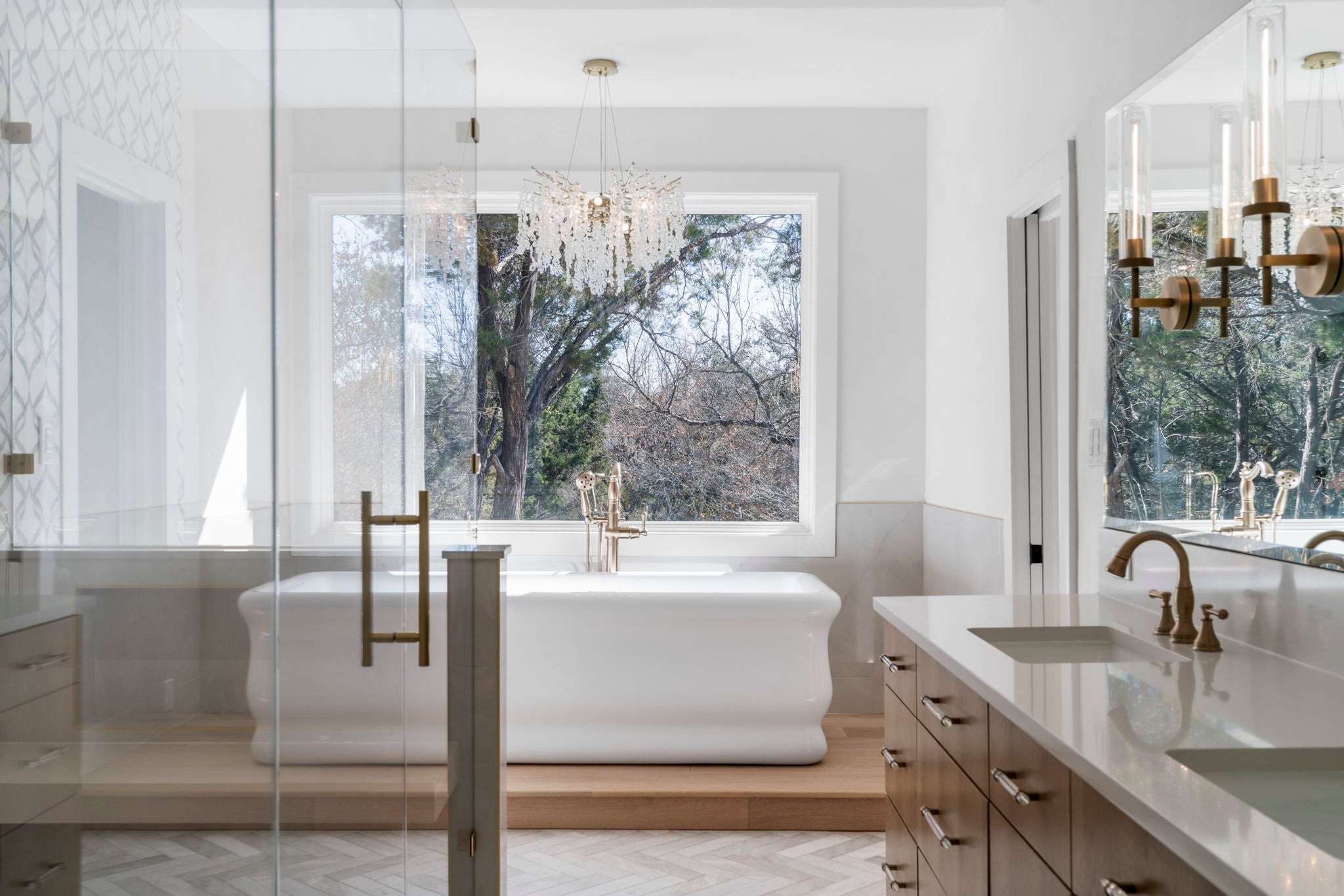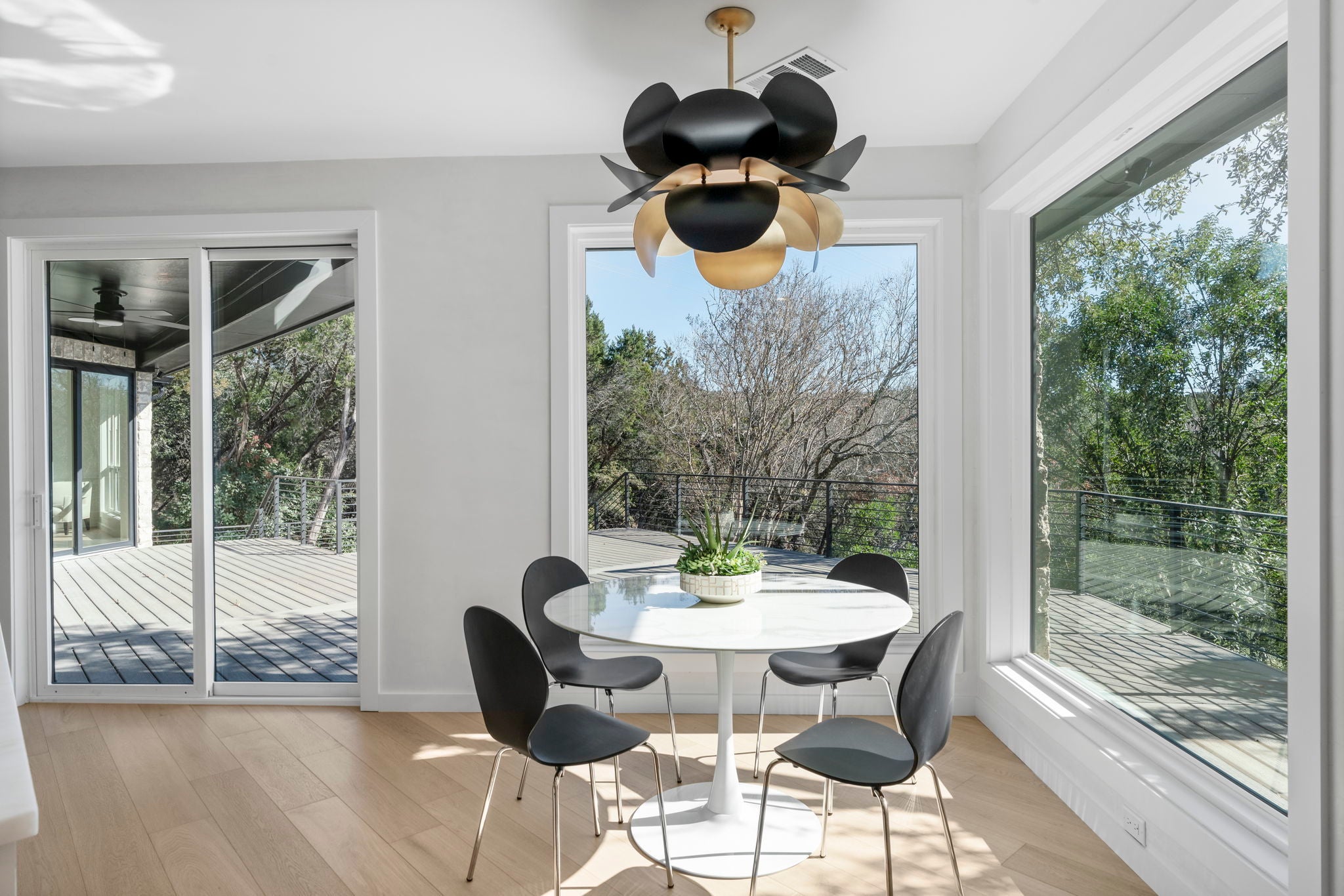 A complete down-to-the-studs luxury renovation, 701 Furlong delivers modern design, elevated finishes, and total privacy on 1.8 acres in Westlake within renowned Eanes ISD. This 5-bedroom, 3.5-bath retreat features sun-filled living spaces with wide-plank floors, soaring ceilings, and walls of windows framing peaceful wooded views. The chef’s kitchen pairs white marble and black granite counters with M-Tek brass hardware, Sub-Zero refrigeration, Wolf appliances, a Thermador-vented custom hood, pot filler, and an oversized island perfect for cooking and gathering. The vaulted primary suite offers designer wallpaper, a crystal chandelier, and private deck access. Its spa-inspired bath includes marble herringbone floors, a sculptural soaking tub, seamless double shower, Toto remote-control bidet, and expansive double vanity, all connected to a custom closet with glass-enclosed cabinetry, secure jewelry storage, butler bars, and a cushioned bench with built-in hamper. Outdoor living features multiple entertainment decks, a sparkling pool, and a fire-pit lounge tucked in the woods beyond a natural stream—creating a rare Westlake sanctuary just minutes from Austin.