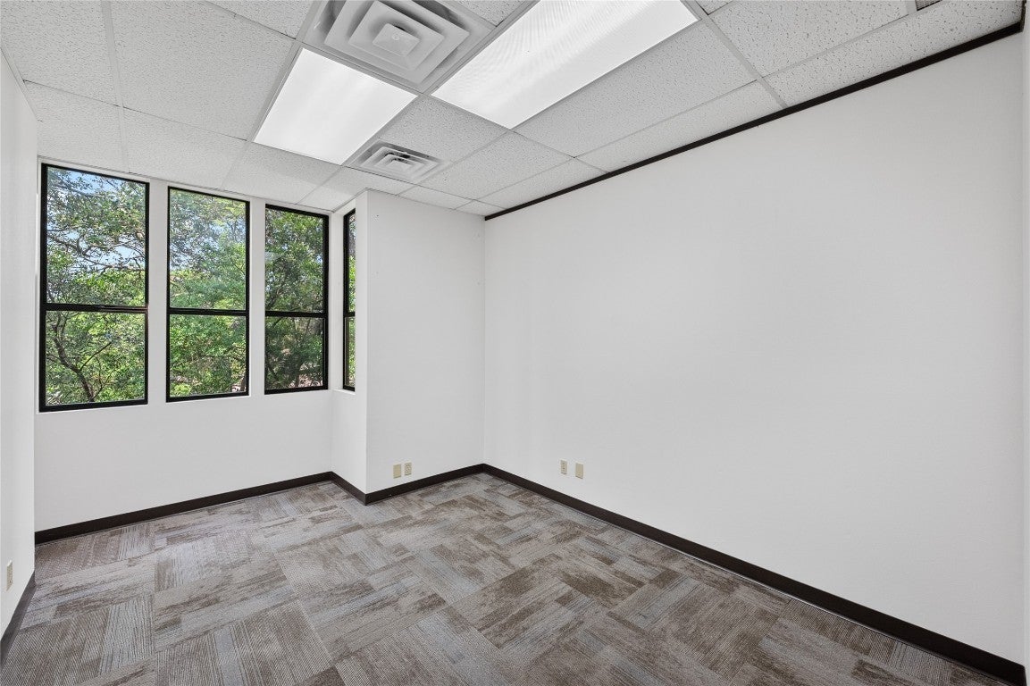 Location, location location! 14 office spaces + Common Greeting Area + Kitchen area located in the heart of the highly coveted Northwest Hills area just 5 min to Downtown Austin! When you drive in you are greeted with classic nostalgia & old growth oak trees with lush landscaping throughout the complex. The space itself is a generous 3088 sqft on the 2nd floor overlooking the outdoor courtyard with a zero-scaped Spanish fountain & towering Oaks that can be seen from most of the windows creating that outside/in feeling while you work. The space is malleable and walls can be moved to create different configurations for just about any type of office space you might need. We can show you other space in the building where multiple different styles from conference rooms to open glass cubicles to photography shooting space have been created to help visualize what is possible. The 14 offices currently have 11 rented units with leases that can be renewed or dissolved and the other have been left open for the new owner to do as they wish. Parking for this unit is 1 Covered Assigned Spot with the rest of the parking being common uncovered spaces. Ideal for Investors or Owner User!