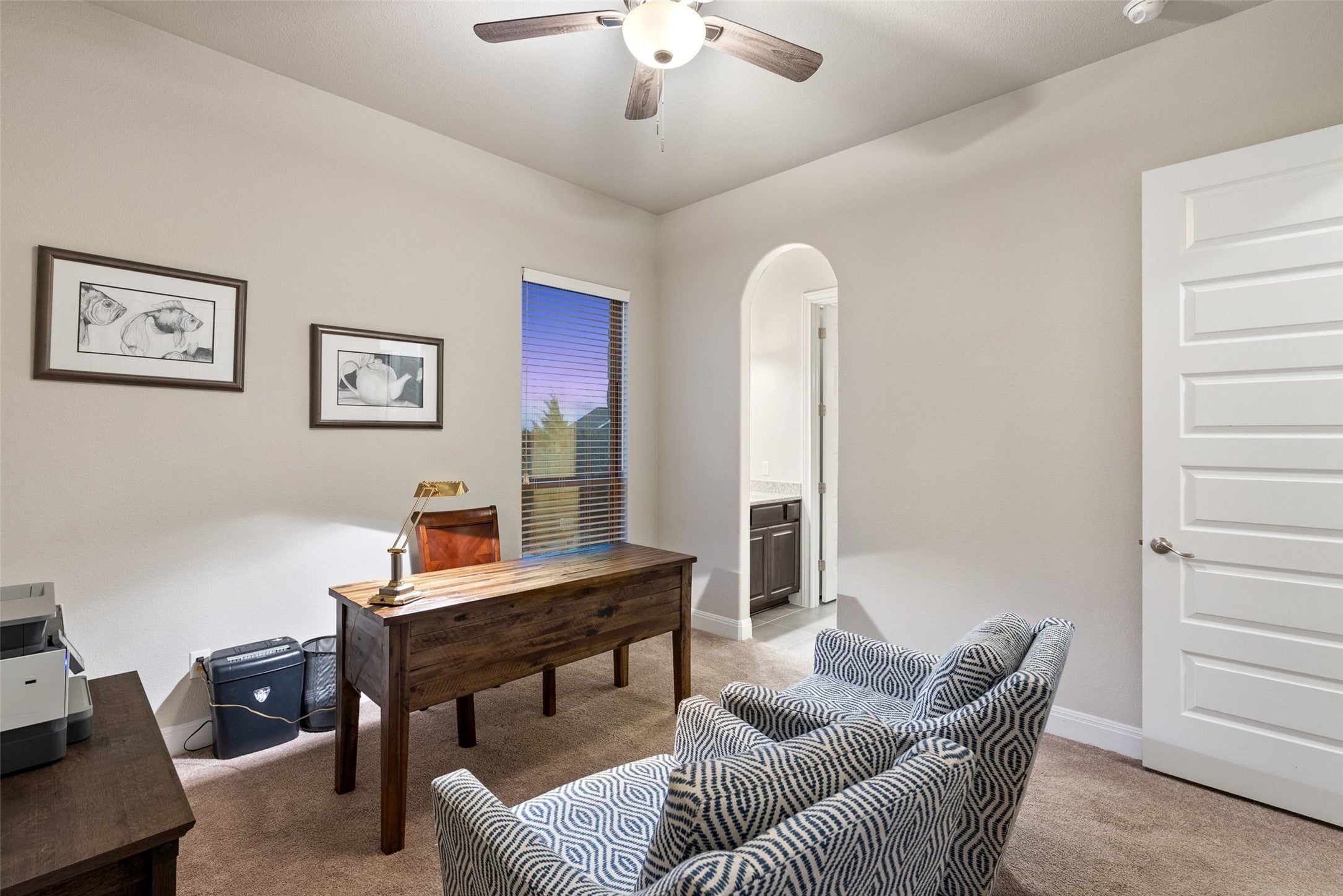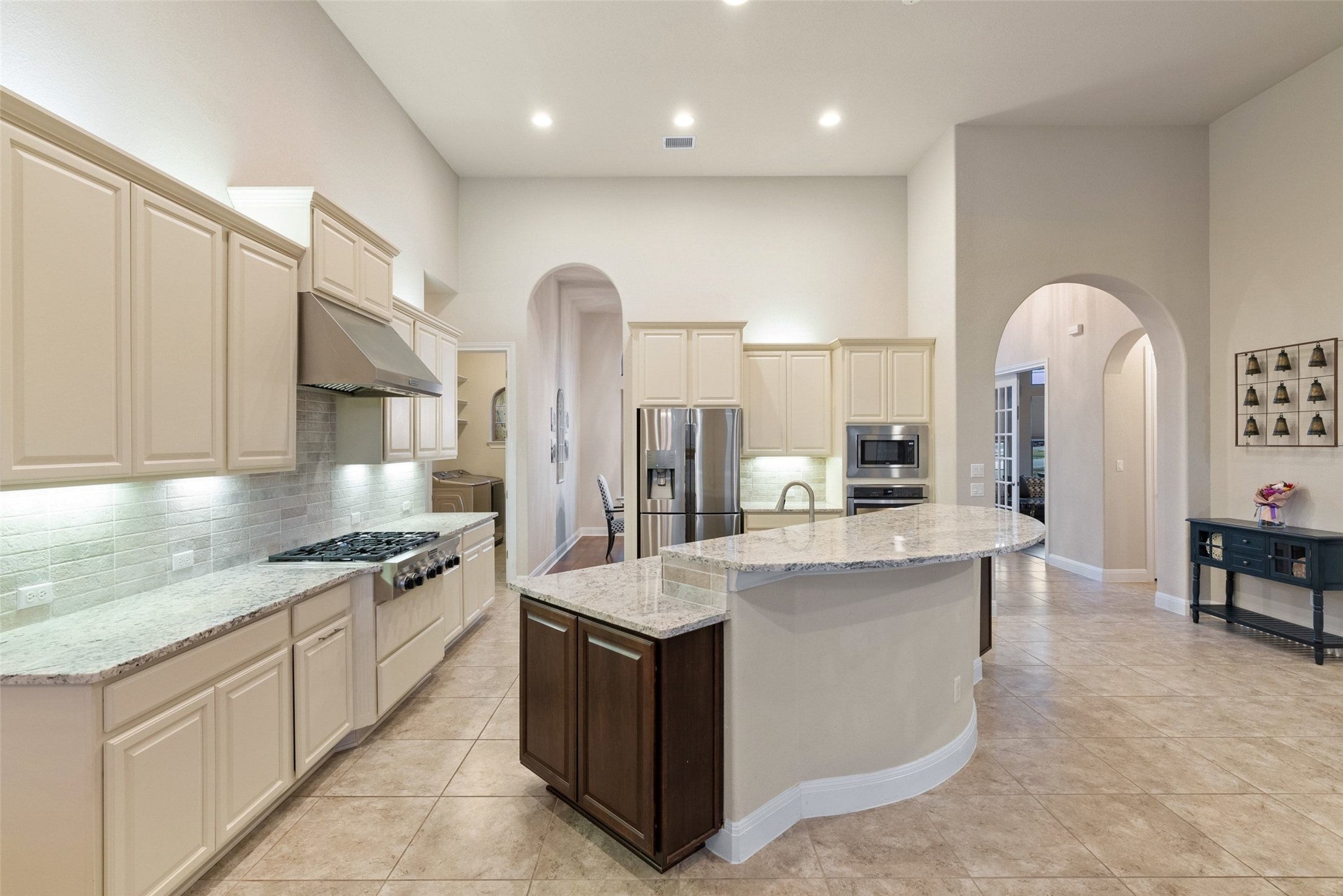 Perched on the most private 1-acre cul-de-sac lot in the exclusive 80-home Vistancia community, this stunning residence captures one of the most breathtaking panoramic Hill Country views available. A beautifully landscaped approach with mature trees and designer exterior details welcomes you home. The covered front porch, accented by elegant French doors with privacy glass, sets the tone for the refined interior beyond. Inside, a spacious foyer opens to a formal dining room and a versatile media room that can easily serve as a private study. The heart of the home is the open-concept kitchen, breakfast area, and family room anchored by a warm fireplace and expansive windows framing the sweeping Hill Country backdrop. The chef’s kitchen features a large island with seating for four, granite countertops, stainless steel appliances, a six-burner cooktop with front controls, a butler’s pantry, and an oversized walk-in pantry—perfect for both everyday living and entertaining. The tranquil primary suite offers a private retreat with dual vanities, a soaking tub, walk-in shower, private water closet, and an expansive custom walk-in closet. Three spacious secondary bedrooms are thoughtfully separated by two bathrooms, providing comfort and privacy for family or guests. Additional highlights include an oversized laundry room and a three-car garage with epoxied flooring and abundant overhead storage. Designed for exceptional outdoor living, the backyard is an entertainer’s dream. A covered dining and living area with fireplace and summer kitchen overlooks a spectacular pool with negative-edge spa and sun deck—all positioned to take full advantage of the sweeping panoramic Hill Country views. This is Texas Hill Country living at its finest—private, scenic, and ready to welcome you home.