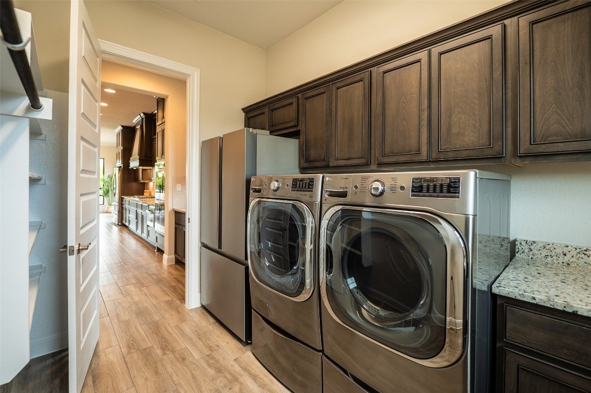 - Dryer, Dishwasher, Disposal, Refrigerator, Stainless Steel Appliance(s), Washer, Bar Fridge, Built-In Electric Oven, Convection Oven, Double Oven, Propane Cooktop, Range Hood, Water Purifier Owned, Water Softener Owned