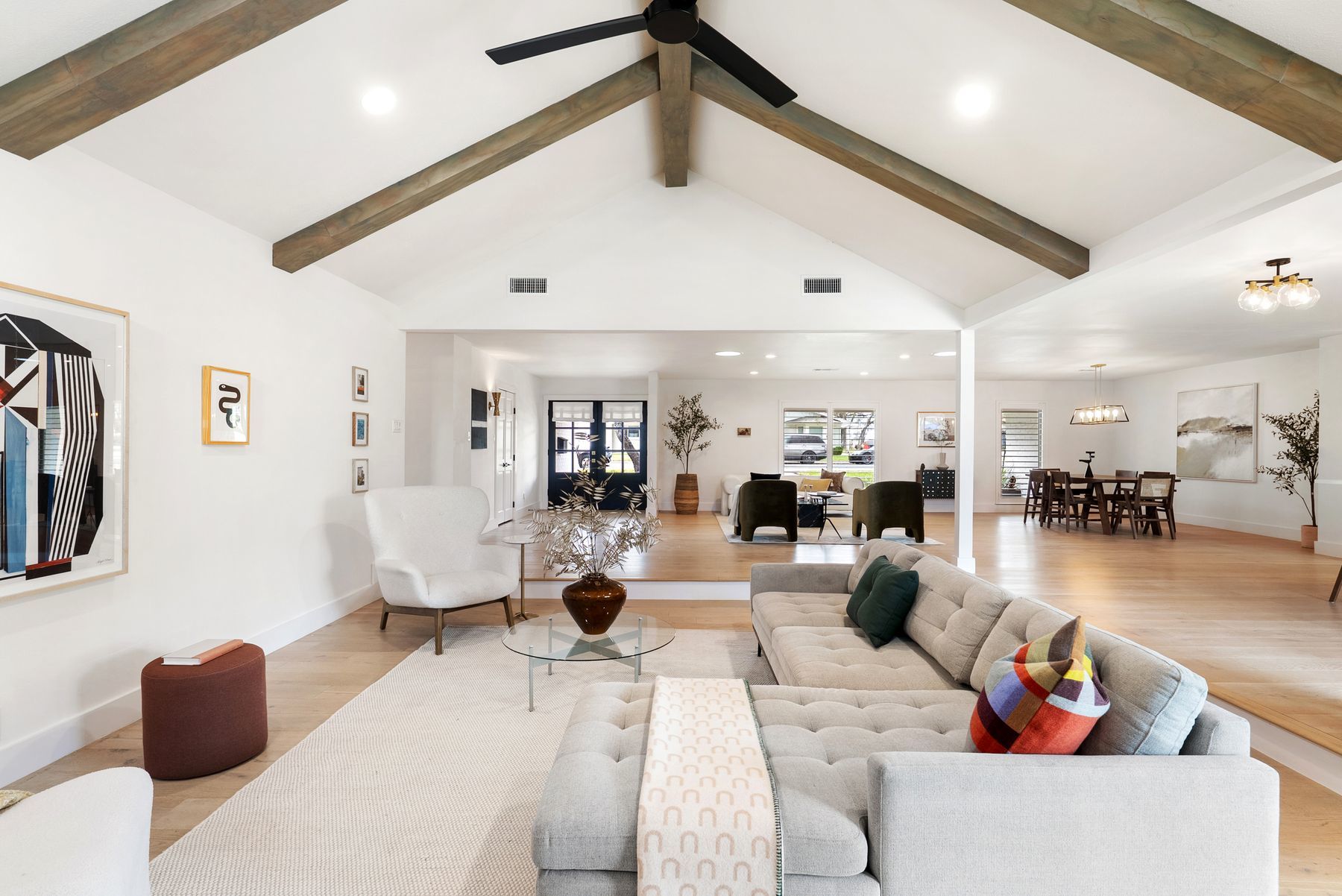 *Open house cancelled on 4/11/26 due to rain* Iconic 1962 Midcentury Modern in coveted Northwest Hills — meticulously maintained, thoughtfully updated, and dripping with vintage cool from the moment you pull up. Set on a generous .35-acre lot complete with a 3-car garage, pool and new casita (2023), this is the one that actually lives up to the listing photos. The open-concept main house (3,517 SF) features high beamed ceilings, two distinct living areas anchored by a statement fireplace and custom built-ins, a dedicated dining room, and plantation shutters throughout. Natural light pours in at every turn. The stunning kitchen is the heart of it all: gorgeous stone countertops, high-end appliances, wine fridge, breakfast bar, walk-in pantry, and unobstructed views to the pool. The primary suite features a large walk-in closet, modern bathroom and a private door out to the backyard. Three additional bedrooms include one currently living its best life as a showstopper dressing room (easily converted back) and one with a Murphy bed for ultimate flexibility. There is tons of storage for an open concept home including deep closets, coat closet, custom storage in the garage and large attic. Step outside to the outdoor entertaining area with a covered patio, fun tile, outdoor kitchen, gemstone lighting, outdoor shower and low-maintenance turf. But the main event is the casita and resort style pool that is already fenced with loungers and waterfall. The casita features a kitchenette and full bath with a separate door for the pool. Big ticket updates covered: roof & gutters (2024), HVAC (2020), hot water heater (2019) plumbing & electrical (2019), paid-off solar pool heater (2022), and a whole-house generator (2022). No HOA. Walk to highly rated Doss Elementary and Murchison Middle. They don't build them like this anymore — and they certainly don't finish them like this.
