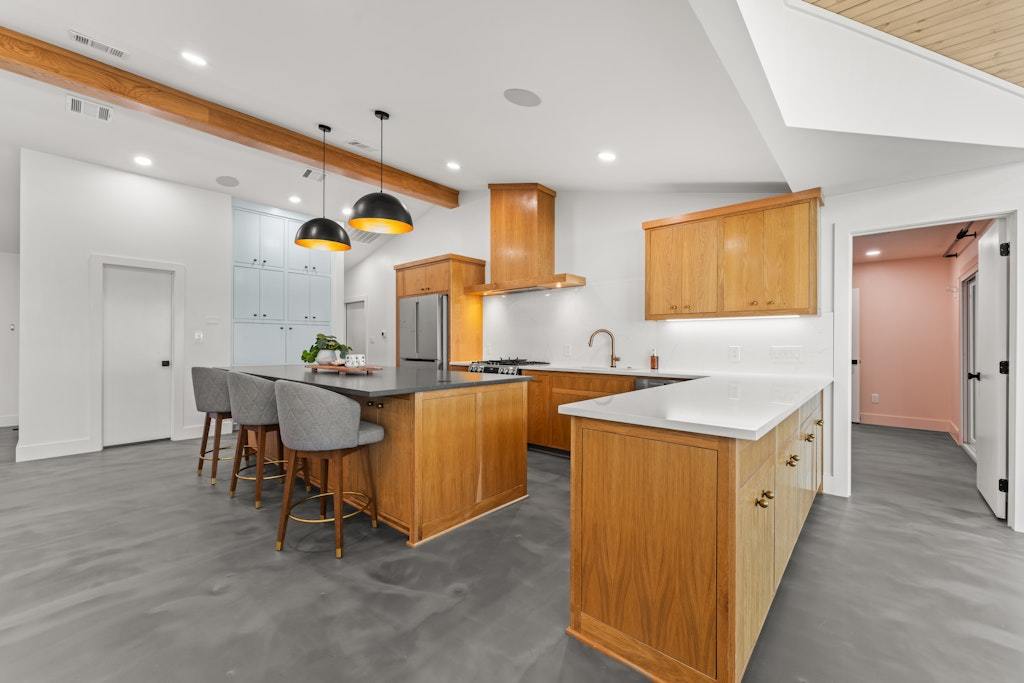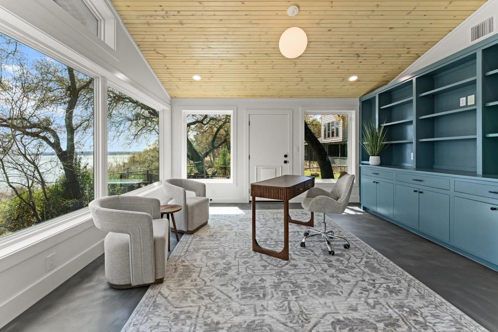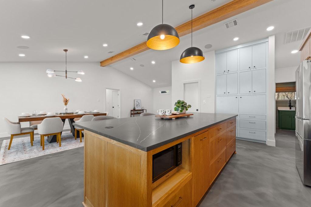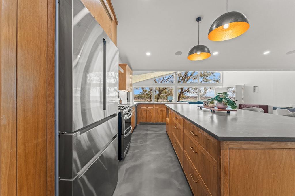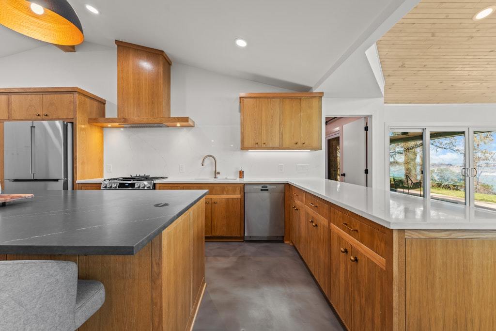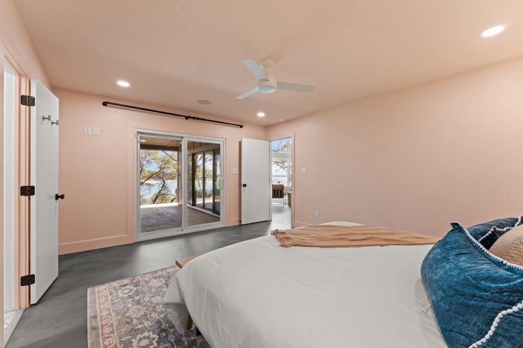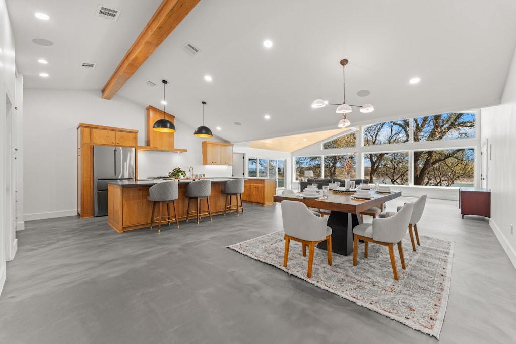 Experience refined lakefront living on the shores of Lake Belton in this fully remodeled luxury home showcasing breathtaking 180-degree water views. Thoughtfully designed with elegance and comfort in mind, this 3-bedroom, 2.5-bath residence also features a dedicated office/media room—perfect for working or relaxing while overlooking the water. Vaulted ceilings with exposed beams and beadboard accents add architectural charm, while expansive picture windows span the back of the home, filling the main living area with natural light and uninterrupted lake views. Concrete epoxy floors flow throughout, offering durability with modern style. The chef’s kitchen is a showpiece, complete with quartz countertops, a striking soapstone island, custom cabinetry, stainless steel appliances, and a hidden coffee bar tucked behind cabinet doors. Abundant storage ensures both beauty and function. Wake up to serene views in the primary suite, featuring double vanities and a spa-inspired bath with a large walk-in shower and soaking tub. Secondary bedrooms are generously sized, and the secondary bath boasts custom tile work, a spacious walk-in shower, and double vanities. Designed for modern living, the home is fully wired for security and entertainment, offering seamless connectivity throughout. The climate-controlled garage (with A/C and heat) features epoxy floors, a built-in dog washing station, and a convenient pot filler for pet bowls. Spray foam insulation enhances energy efficiency year-round. The laundry room includes a stackable washer, dryer, and utility sink. Step outside to the covered back patio and enjoy stunning sunrises over the lake. The backyard offers ample space plus a concrete pad ready for a fire pit or cowboy pool. A private trail leads down to Temple Lake Park road for peaceful walks, and the boat ramp at Arrowhead Point Park is just minutes away. Luxury, views, and lifestyle—this is lake living at its finest.