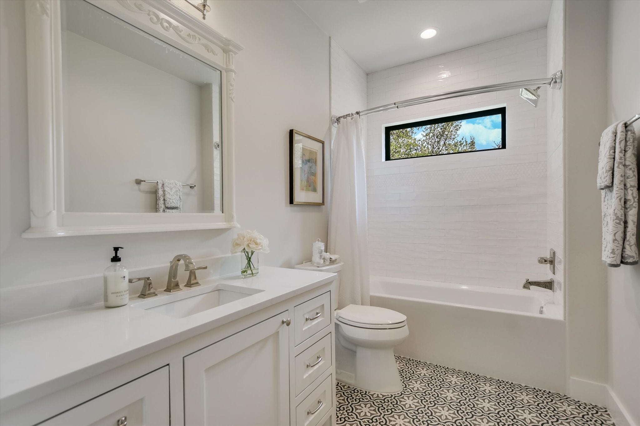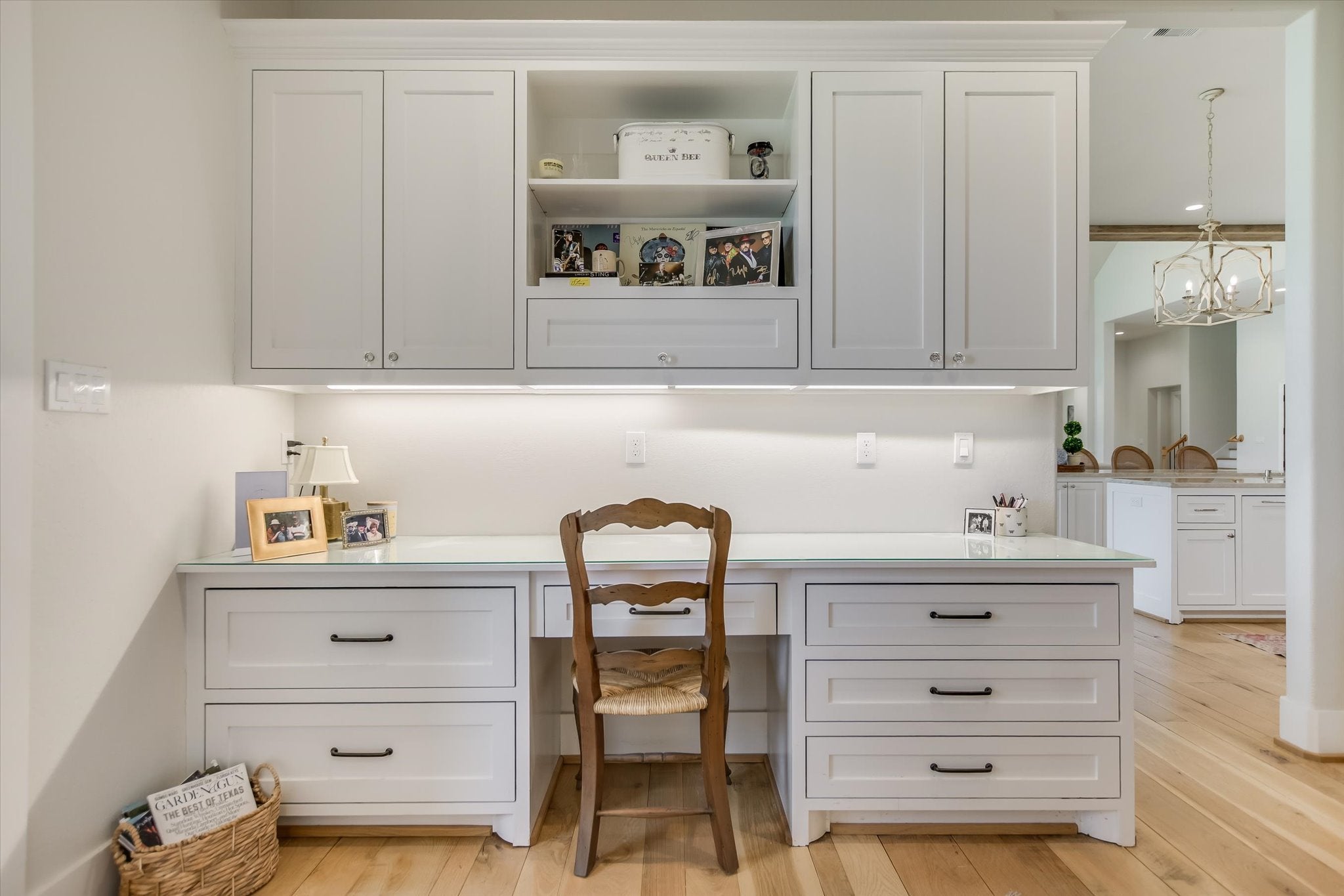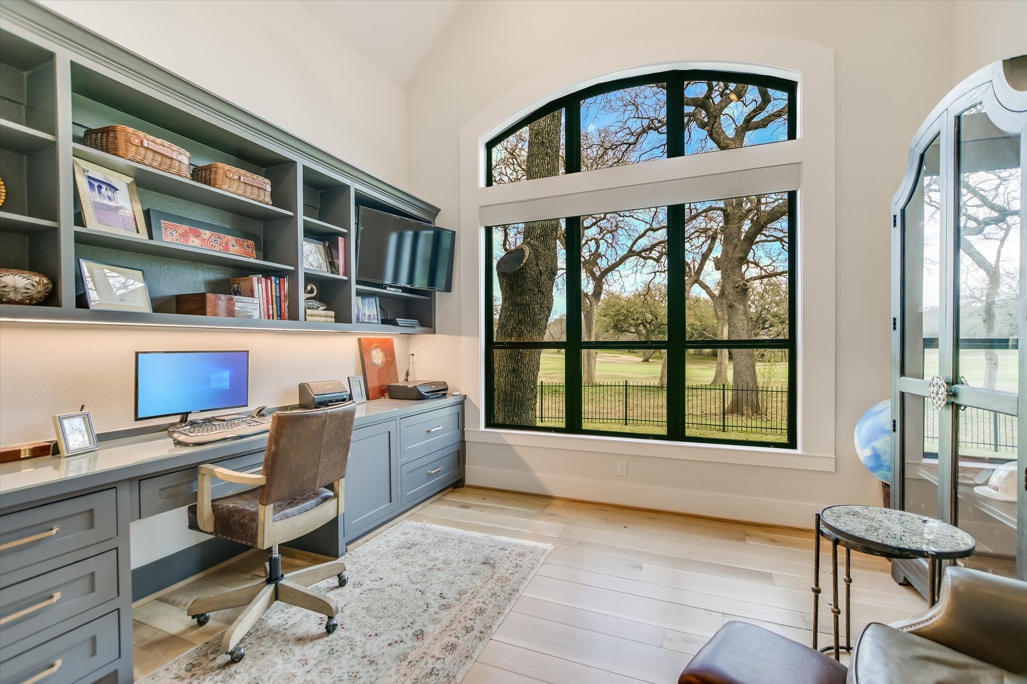 PRIVATE* GOLF COURSE* DOUBLE LOT W/ LARGE TREES* QUALITY* CUSTOM HOME BUILT IN 2021* GORGEOUS! One of a kind 4,012 sqft "French / Transitional" style home is the perfect blend of mod -Transitional meets Traditional, meets French / Southern Living all in one! As you approach the wide-set stucco & brick home enveloped by trees & backing to Ram Rock golf course, you're compelled to go inside! Front double doors w/ beveled glass open into the perfect blend of warmth from the 16,000 pounds of white oak wood floors-some antique honed w/ new, massive open rooms w/ soaring ceilings, authentic antique wood beams, and butted glass windows as a wall of the living room overlooking the most stunning-unobstructed views of the golf course as well as trees for true privacy. The light open floorplan flows perfectly for living and entertaining indoors / out. The kitchen features two separate islands- one for preparing & one for serving/seating and the color palette is superb--soft white walls and custom cabinets with Taj Mahal Quartzite countertops throughout. Polished heavy chrome Restoration Hardware type hardware adorns the cabinets in the kitchen, butlers pantry & the catering pantry, complete w/ sink, built in storage, coffee station and canned goods area behind antique doors. Top of the line Thermador incl commercial 6 burner gas cooktop w/ pot filler & built in side by side refrig. The brkfst room shares the golf course view & overlooks the massive covered back patio area w/ outdoor kitchen, grill and separate outdoor living area w/ fireplace. There's even a GENERATOR out back just in case! This showplace has 3 bdrms plus a dedicated study that could be a 4th bd-all w/ large closets. There's 3 1/2 bathrooms w/ designer tile & Taj Mahl quartzite. Planning center & mudroom off GIANT 3+ extra deep garage w/ AC storage rm & other --in add. to the Christmas closet inside. Primary has vaulted beamed ceiling, dual massive closets and double vanities & sep soak tub & shower!
