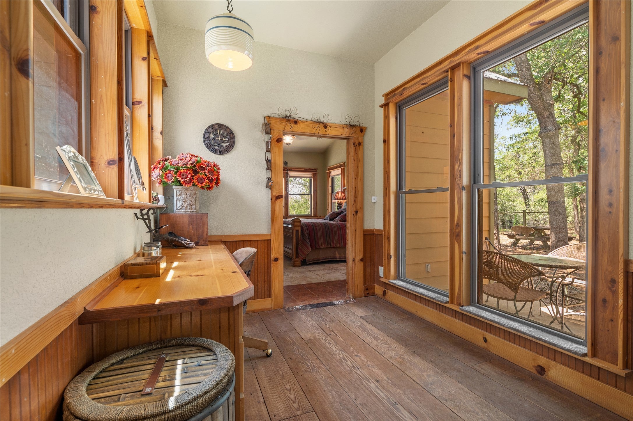 Experience the essence of Texas country living on this serene and secluded 23.45-acre retreat near charming Bastrop. Tucked among a mature tree canopy, this private estate offers a unique blend of heritage and craftsmanship. The custom-built two-story cabin evokes central Texas history with reclaimed wood flooring sourced from a historic Walburg cabin, an original 1950s stove from the Pfluger family homestead, and hand-stripped Bastrop pine columns harvested onsite to support the cathedral ceiling. These authentic details are seamlessly integrated with modern conveniences to create a residence that is both timeless and functional. The cabin is the heart of the property serving as the main dwelling and offering the primary bedroom along with another secondary bedroom and 2.5 baths all on the main level. Additional main level areas include a management center, laundry room, dedicated office/library space, a charming kitchen and large living space with foyer entry. Upstairs is one large open bedroom and bathroom originally intended to serve as a bunkroom that can accommodate multiple sleepers. A separate barndominium provides additional living space ideal for a guest house, rental opportunity, or multigenerational living, complete with an entertainment area. This flexible space offers 2 bedrooms and 2 baths with 2 separate living areas and an open kitchen to living on the main level. With 6 garage bays on property—including a dedicated RV space with hookups—there is ample room for your toys, gear, equipment and adventure essentials. Outdoors, a thoughtfully designed pond supports native wildlife, including bass and ducks, enriching the land’s natural beauty. This one-of-a-kind property offers a slow and relaxed lifestyle, yet remains just a few miles from historic Bastrop, the Airport, COTA, Tesla, and the hustle and bustle of downtown Austin. Tractor may convey, see agent for details.