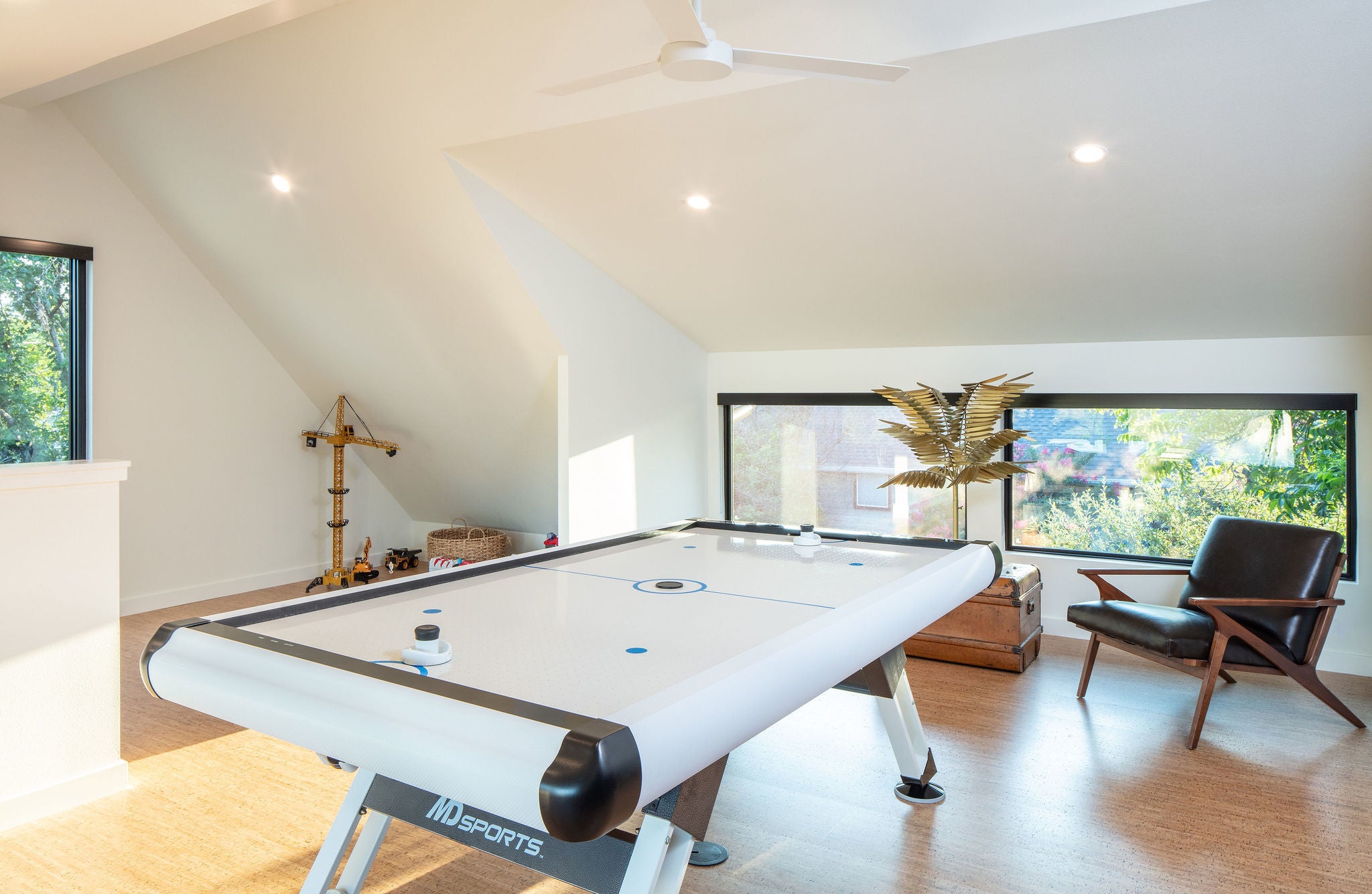 Completed in 2021 as the personal residence of homebuilder Roost Custom Homes, this thoughtfully designed 3,260 SF home with a garage apartment blends timeless character with modern family living. The 4-bedroom, 3-bath main home (including two bedrooms on the main level) features a light-filled layout with the living room, chef’s kitchen, and expansive screened porch flowing together for effortless entertaining. The kitchen is equipped with a Wolf and Sub-Zero appliance package, quartzite countertops, custom cabinetry, and a walnut butcher block island, while oversized Marvin windows and a Western sliding door connect the home seamlessly to the outdoors. The screened porch functions as an additional living space with a fireplace and built-in seating, perfect for year-round gatherings. Upstairs offers two additional bedrooms, a shared bath, and a flexible third-level space currently used as a game room. The fully fenced backyard features an ipe deck, artificial turf, mature landscaping, and a private putting green. A detached 1.5-car garage with alley access and motorized gate includes a self-contained garage apartment—ideal for guests, multigenerational living, a home office, or rental potential. High-end finishes throughout include European white oak floors, custom steel accents, flush inset cabinetry, marble and quartzite surfaces, a steam shower in the primary bath, standing seam metal roof, and a beautiful heritage live oak anchoring the front yard. Zoned to highly acclaimed Bryker Woods Elementary (walkable), O. Henry Middle, and Austin High, and also walkable to St. Andrew’s Episcopal School. Minutes to Downtown Austin and walkable to shops, restaurants, hospitals, and the Shoal Creek Trail.