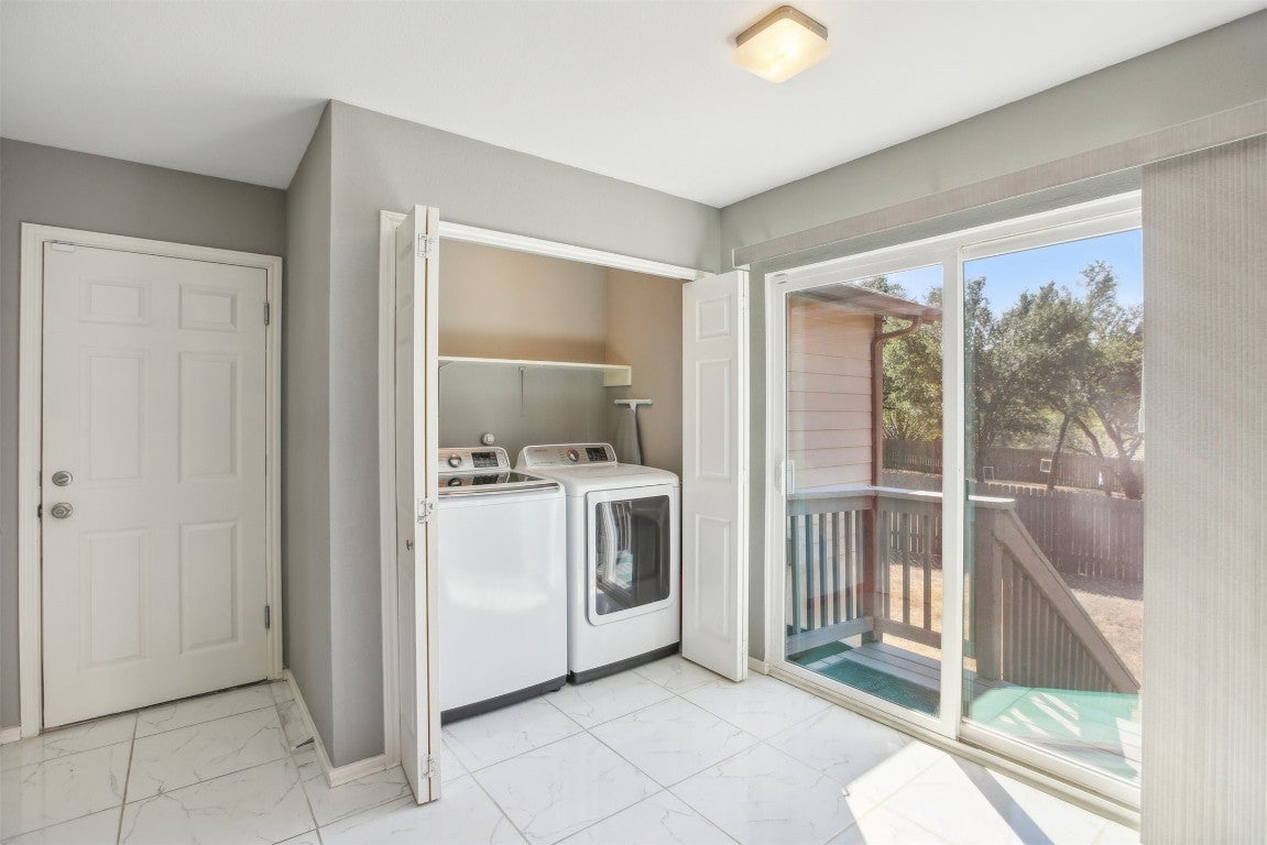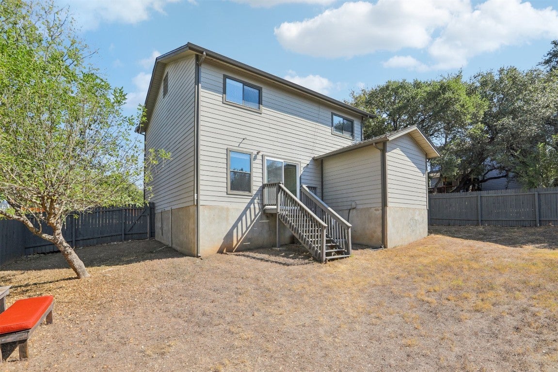WASHER/DRYER,REFRIDGE,ALARM SYSTEM AND FLAT SCREEN TVS CONVEY!!!!!* Welcome to your own slice of Austin paradise, where modern living meets the charm of Saddlewood Estates! This single-family home is a breath of fresh air, showcasing a transformation that’s both inviting and stylish, all while offering the privacy of a lush greenbelt with trails as your backdrop. As you enter, you’re greeted by a open-concept layout with neutral walls and wood-look tile flooring. In the living room, a chic designer light fixture steals the spotlight, and open shelving invites you to display your unique treasures. Get ready to whip up culinary masterpieces in the eat-in kitchen, where painted cabinetry, brushed nickel hardware, tile backsplash, stainless-steel appliances and granite countertops add a touch of flair. And when it’s time to unwind, head through the sliding glass door to the private backyard, where outdoor living becomes a joy! On the 2nd floor, the primary bedroom awaits—a relaxing haven complete with a ceiling fan, a walk-in closet, and an en-suite bathroom featuring a granite-topped vanity and a tub/shower combo with modern tile accents. You’ll also find 3 additional bedrooms and a shared guest bathroom, perfect for family, friends, or your creative workspace! The large, fenced backyard is your personal playground, complete with an enclosed outdoor bar with bar seating and a tv—your friends will love gathering here for drinks and laughs. Plus, enjoy the convenience of a rare two-car garage, offering ample space for your vehicles, outdoor gear, or a workshop! Several upgrades include the roof, carpet, alarm, smoke detectors, disposal and bar shed in 2022, along with blinds, screens, a/c flow switch and oven in 2023. Washer, dryer and TV all convey! Location is everything, and this home delivers!