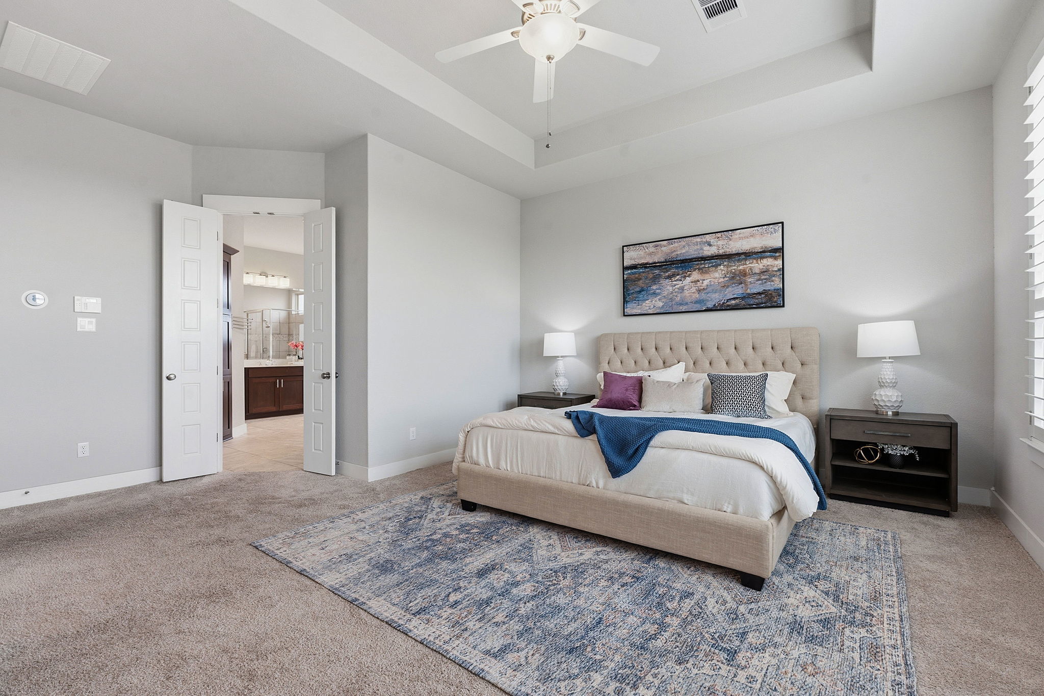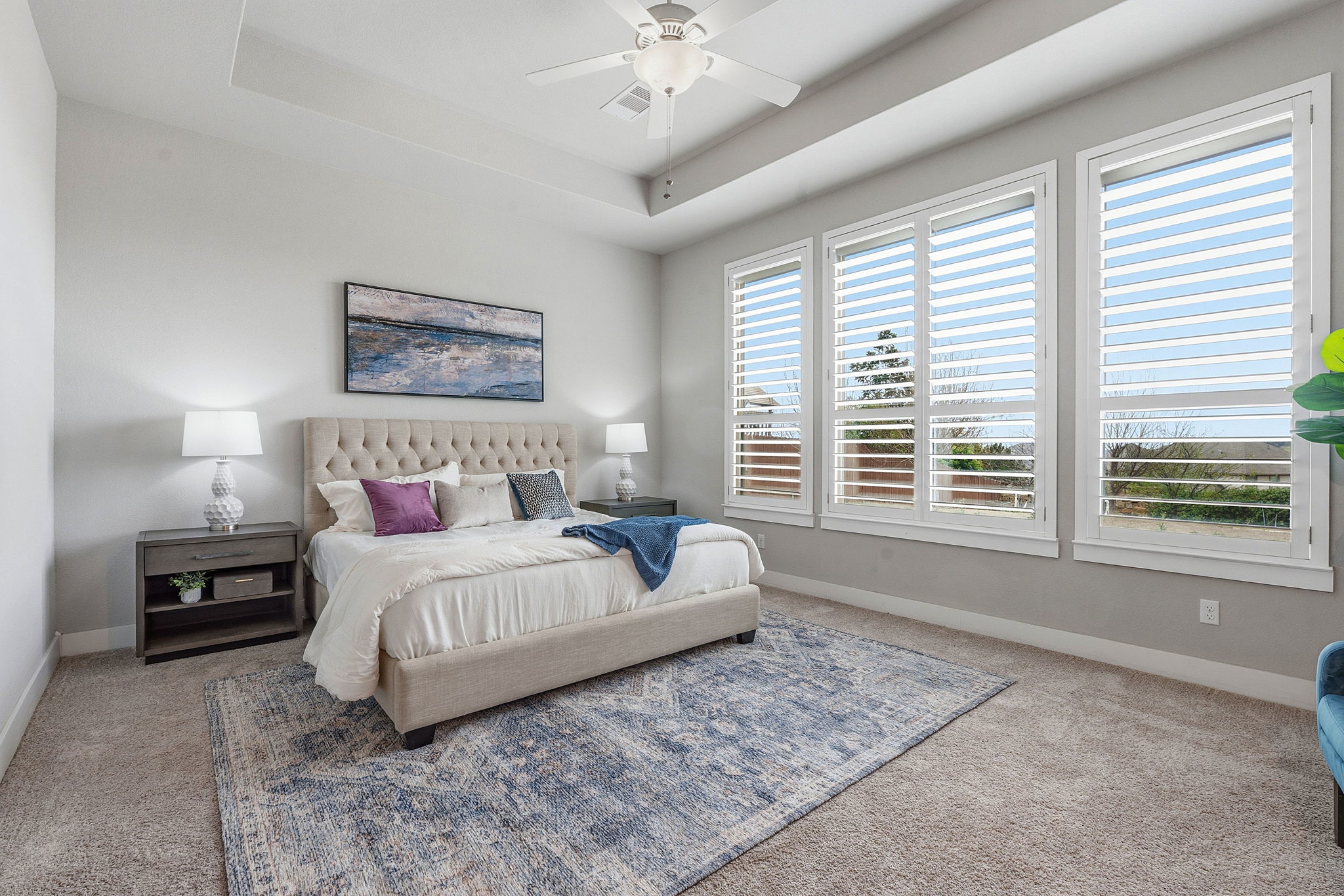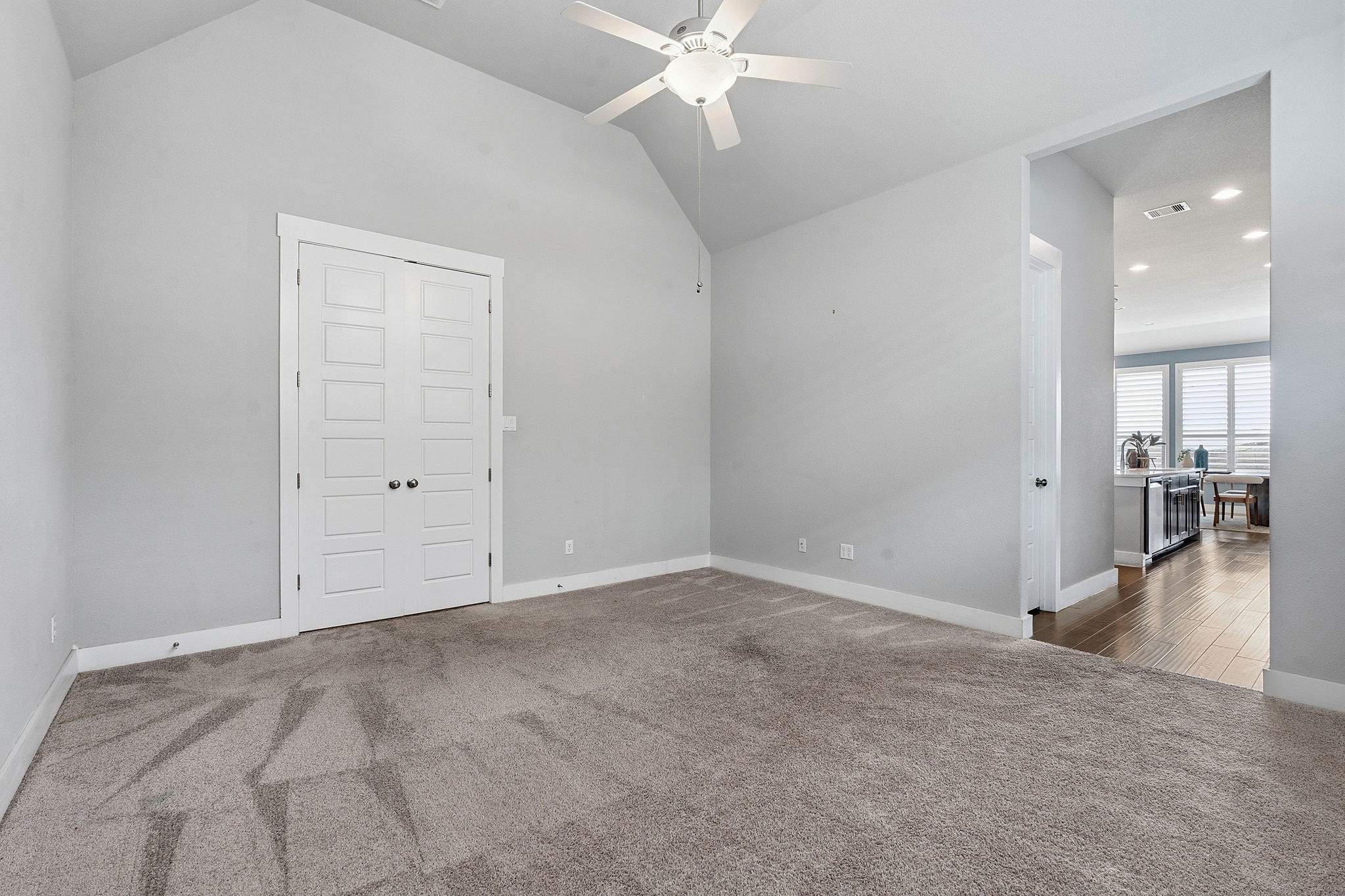 Welcome to this beautifully maintained 4-bedroom, 3.5-bath home with 3,337 square feet, built in 2016 and located on a quiet cul-de-sac in the newer west side of Belterra. Perched on a hill, the home enjoys pleasant views and refreshing breezes, creating a peaceful and comfortable setting. The open floor plan offers excellent flow for everyday living and entertaining, with a dedicated home office featuring a built-in bookcase and drawers. The spacious primary suite includes dual large walk-in closets, a soaking tub, walk-in shower, and dual vanity. A guest bedroom with walk-in closet and walk-in shower provides ideal accommodations for visitors, while bedrooms three and four share a convenient Jack-and-Jill bathroom. Step outside to a private backyard that backs to a greenbelt, offering added privacy and natural beauty. Garden enthusiasts will love the variety of fruit trees, including persimmon, jujube, pecan, plum, fig, Asian pear, peach, and guava, along with two raised beds ready for vegetable gardening. Additional highlights include a large laundry room, two HVAC systems for efficient climate control, and refrigerator, washer, and dryer included. Residents of Belterra enjoy exceptional HOA amenities, including a clubhouse, two swimming pools, fitness center, basketball courts, community events, and miles of scenic walking trails. The home is also within walking distance to Rooster Springs Elementary. This home offers the perfect combination of space, privacy, and community living. $207K assumable loan @ 2.25% interest rate.