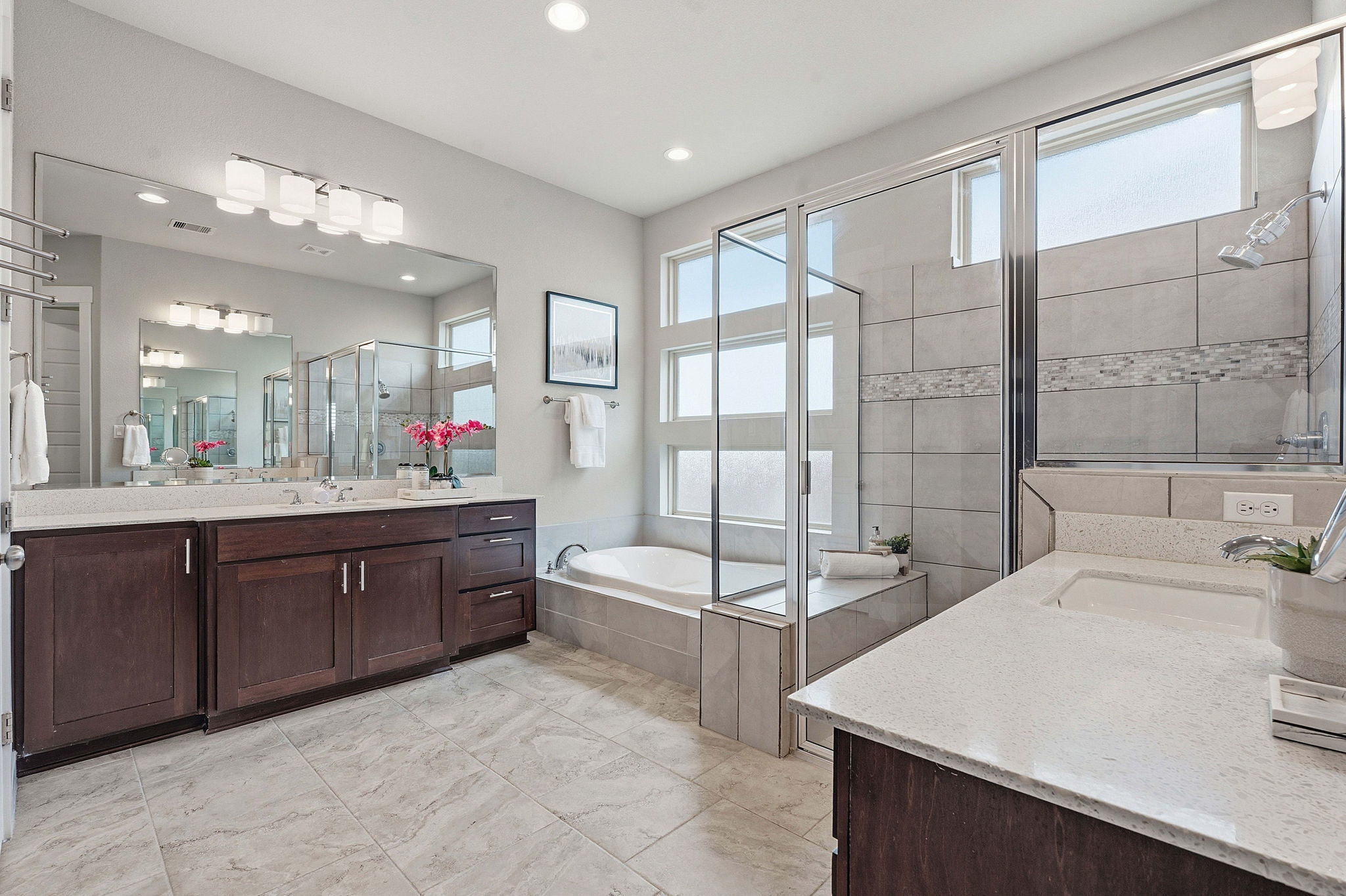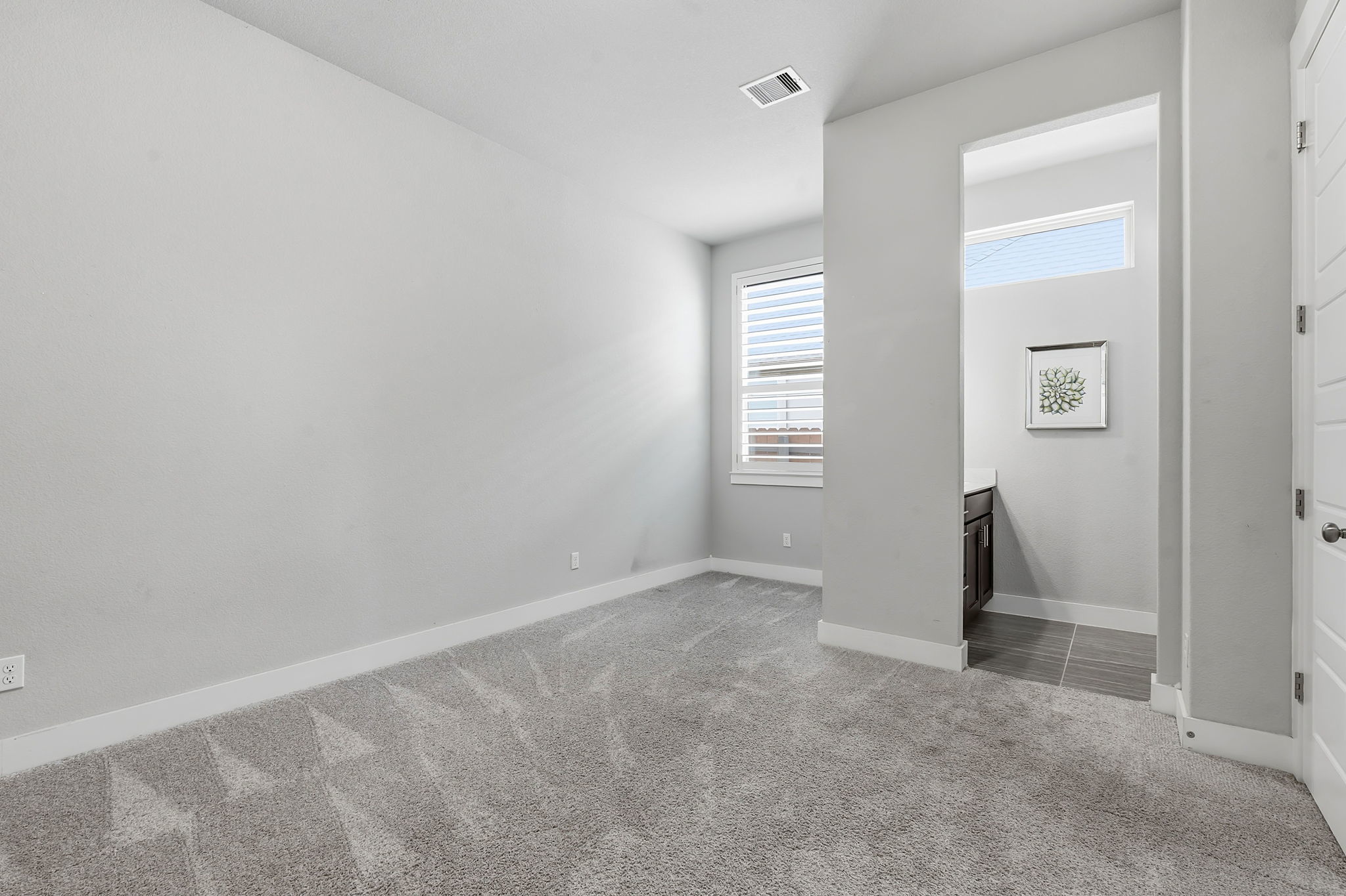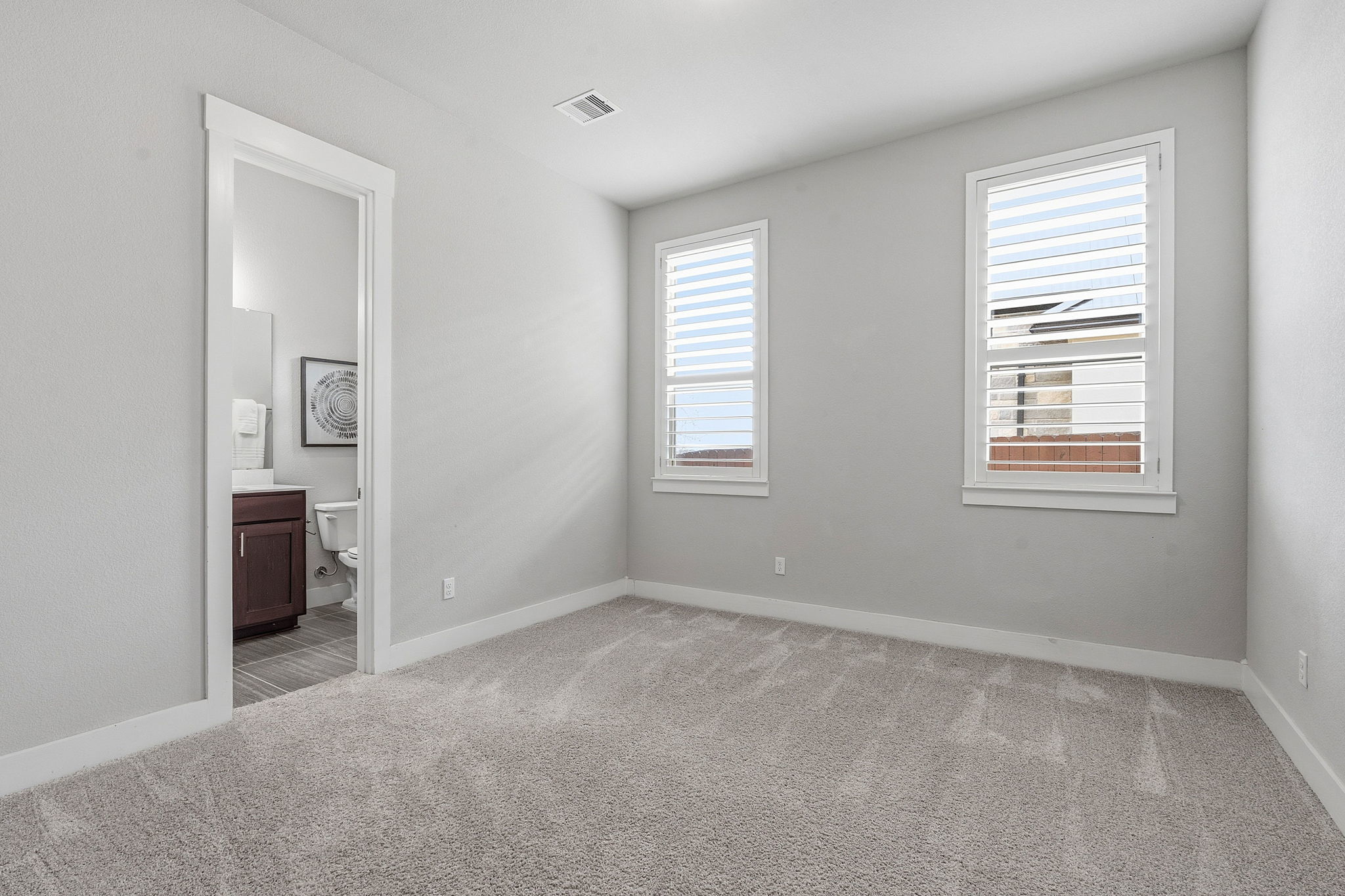 Welcome to this beautifully maintained 4-bedroom, 3.5-bath home with 3,337 square feet, built in 2016 and located on a quiet cul-de-sac in the newer west side of Belterra. Perched on a hill, the home enjoys pleasant views and refreshing breezes, creating a peaceful and comfortable setting. The open floor plan offers excellent flow for everyday living and entertaining, with a dedicated home office featuring a built-in bookcase and drawers. The spacious primary suite includes dual large walk-in closets, a soaking tub, walk-in shower, and dual vanity. A guest bedroom with walk-in closet and walk-in shower provides ideal accommodations for visitors, while bedrooms three and four share a convenient Jack-and-Jill bathroom. Step outside to a private backyard that backs to a greenbelt, offering added privacy and natural beauty. Garden enthusiasts will love the variety of fruit trees, including persimmon, jujube, pecan, plum, fig, Asian pear, peach, and guava, along with two raised beds ready for vegetable gardening. Additional highlights include a large laundry room, two HVAC systems for efficient climate control, and refrigerator, washer, and dryer included. Residents of Belterra enjoy exceptional HOA amenities, including a clubhouse, two swimming pools, fitness center, basketball courts, community events, and miles of scenic walking trails. The home is also within walking distance to Rooster Springs Elementary. This home offers the perfect combination of space, privacy, and community living. $207K assumable loan @ 2.25% interest rate.