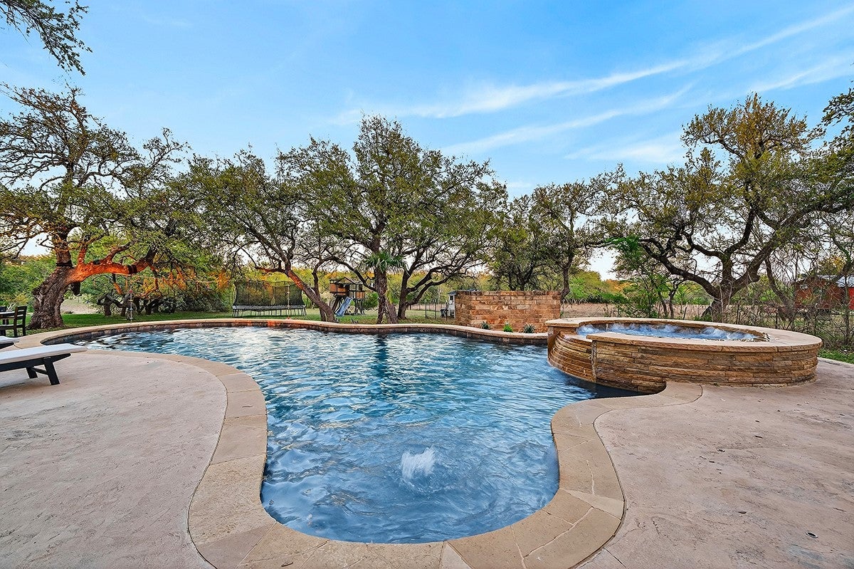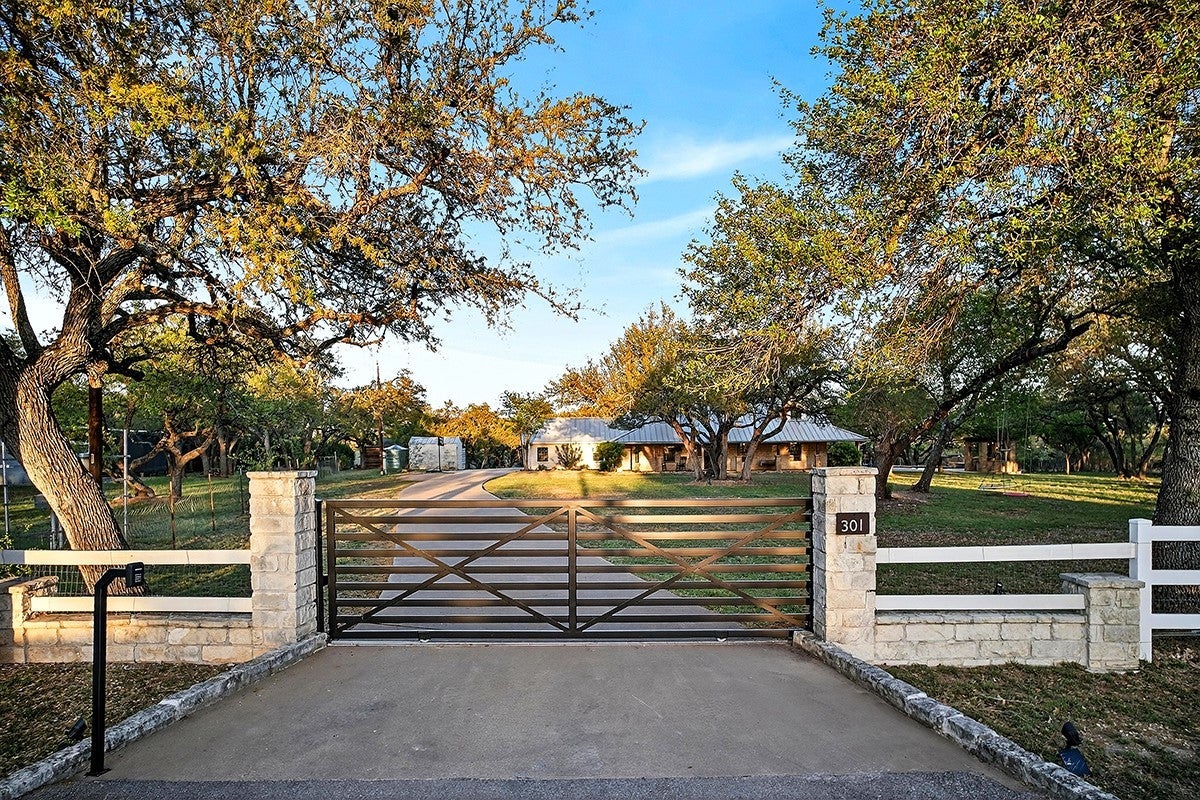 Set on 2.3 fully fenced and gated acres in the highly sought-after Medlin Creek neighborhood off Fitzhugh Rd, this remodeled Hill Country property offers space, privacy, and a lifestyle close to wineries, breweries, and near one of the hill countries favorite towns, Dripping Springs. The 3,500 sq ft home features 3 bedrooms, 2.5 bathrooms, and a large converted garage that functions as an expansive bonus or flex space with endless potential for a large primary suite, guest quarters or more bedrooms. The main level includes the primary suite, while two additional bedrooms are located upstairs. Remodeled in 2021, the home exudes rustic charm with thoughtful updates like beamed ceilings and a german schmear fireplace. Interior highlights include wood floors in the main area, shiplap walls, wainscoting in the dining area and updated lighting fixtures. The kitchen and primary shower have been updated, offering a beautiful, functional layout while maintaining character. Outdoor living is a standout feature with a large covered back patio, pool and spa, fire pit, outdoor kitchen, a wet weather creek at the back of the lot, and views of oak groves throughout the property. The wraparound front porch, complete with a swing and space for rocking chairs, creates a welcoming place to enjoy the Hill Country setting. The property backs to a larger ranchette, enhancing the sense of privacy and country living while still only being minutes from downtown Dripping Springs. Additional features include a well and 40,000 gallon rainwater collection system, a storage shed, playscape and a chicken coop. This is a rare opportunity for acreage living in a prime Dripping Springs location with flexibility, charm, and room to make it your own. Call today!