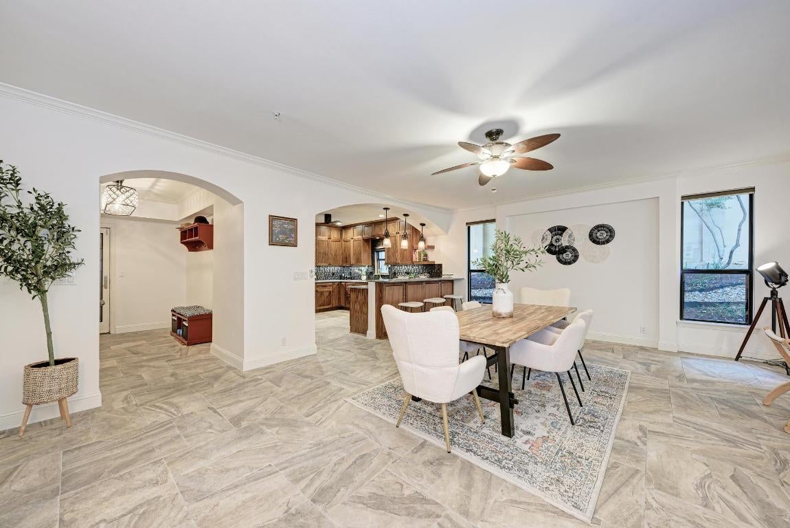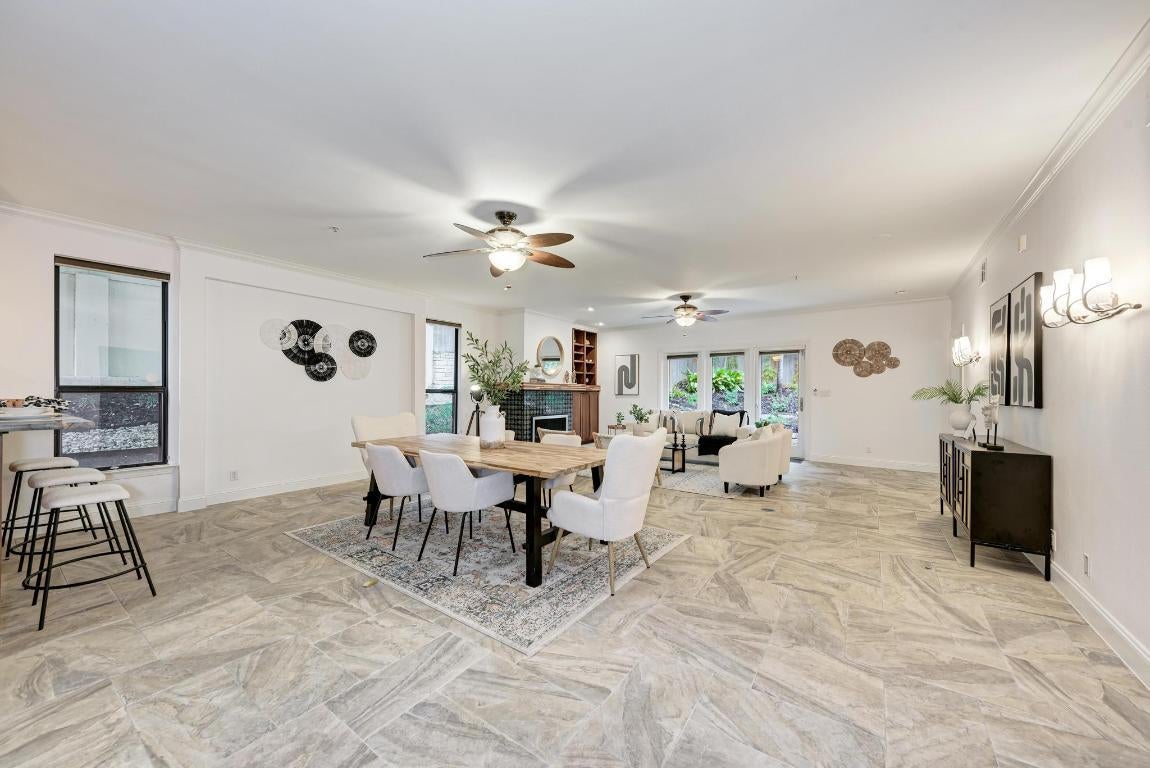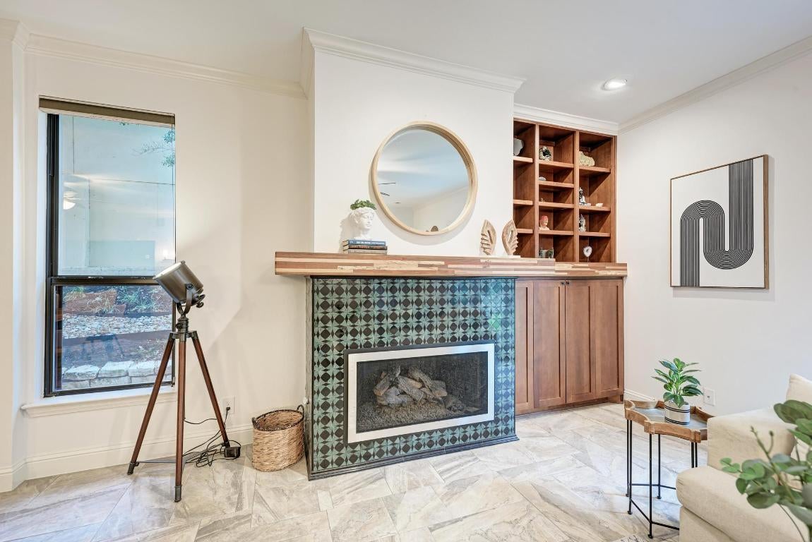 Sophisticated Luxury Condo Living in Clarksville – steps from Downtown Austin! Located just two blocks from 7th & Lamar, this boutique residence offers the perfect blend of historic charm and modern convenience. This is a coveted ground floor unit with a private backyard - one of the few offered. Enjoy the best of city living with Whole Foods, Lin Asian Bar, and Pecan Square Cafe all just a short stroll away. Plus you’re right behind the exciting new up & coming Sixth & Blanco development. Inside, a bright open-concept living and dining area features crown molding, gorgeous tile flooring, and a designer tiled fireplace with a smooth modern wood mantel. Natural light flows through tall windows and a glass door that opens onto an enchanting patio with tiered landscaping, a grassy area perfect for pets, and privacy fencing. The remodeled chef’s kitchen impresses with ceiling-height cabinetry, granite countertops, built-in appliances and an entertainer’s peninsula under a graceful archway. Enjoy a bright and spacious primary suite with walkout access to the backyard plus a spa-like dual vanity ensuite bath with a remodeled walk-in shower and an XL walk-in closet. The guest suite also features its own ensuite bath and walk-in closet, while a private office or bonus living area boasts the addition of custom built-ins. A powder room, in-home laundry, and two reserved garage parking spaces add everyday convenience. Nestled within one of Austin’s most coveted neighborhoods, this exclusive 11-unit community offers a quiet retreat amid the energy of downtown. Step outside and explore local favorites such as BookPeople, Swedish Hill, Garbo’s, Amy’s Ice Cream, Pepe’s Tacos, and Bar Peached, or unwind at the nearby West Austin Dog Park. With gas, water, trash, recycling, quarterly pest control, weekly landscaping, and porter service included in the POA, residents enjoy a truly effortless lifestyle in one of Austin’s most walkable areas. Secure your showing today!