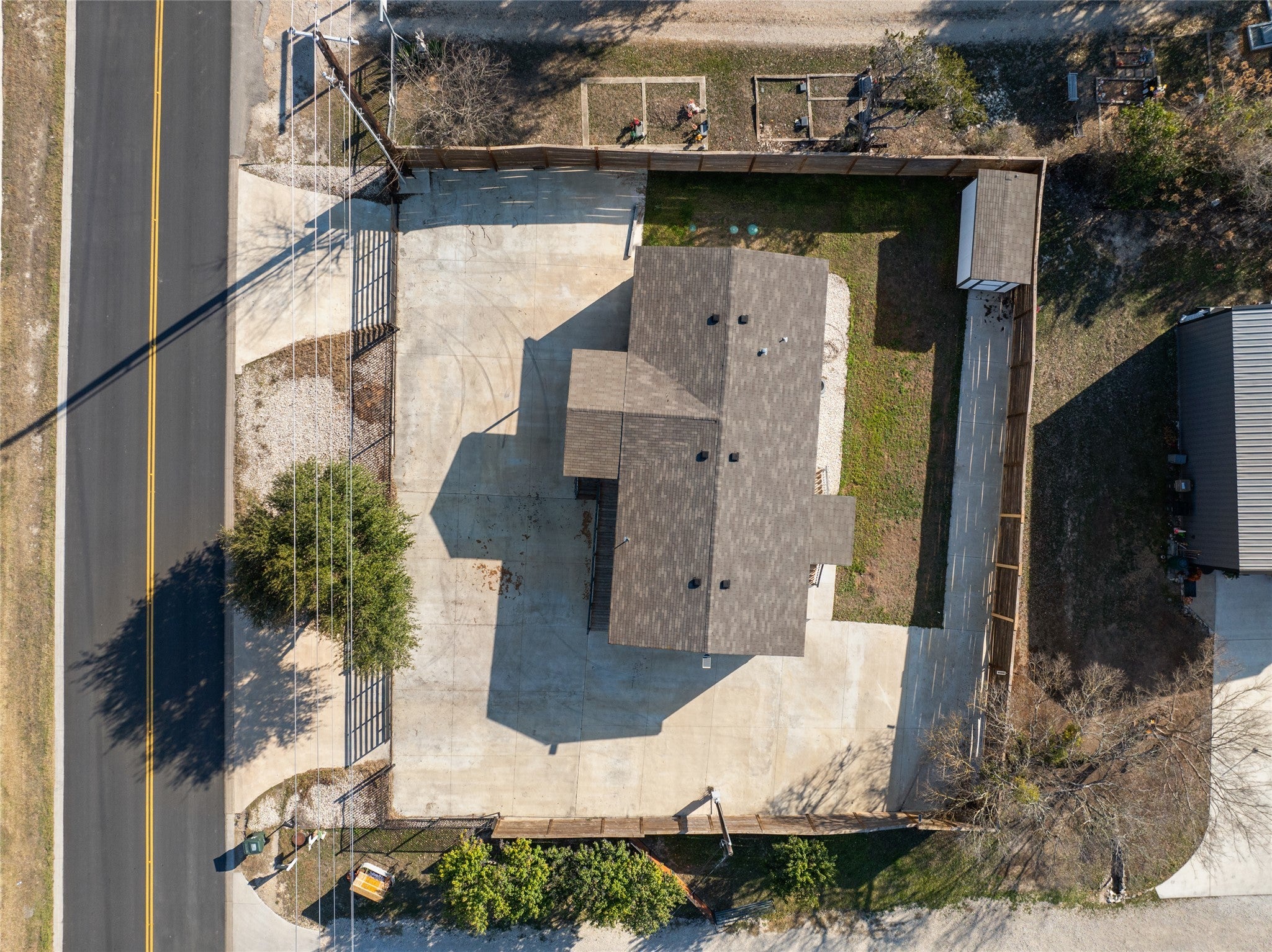 - Concrete, Driveway, Electric Gate, Enclosed, Outside, Private, Secured, Storage