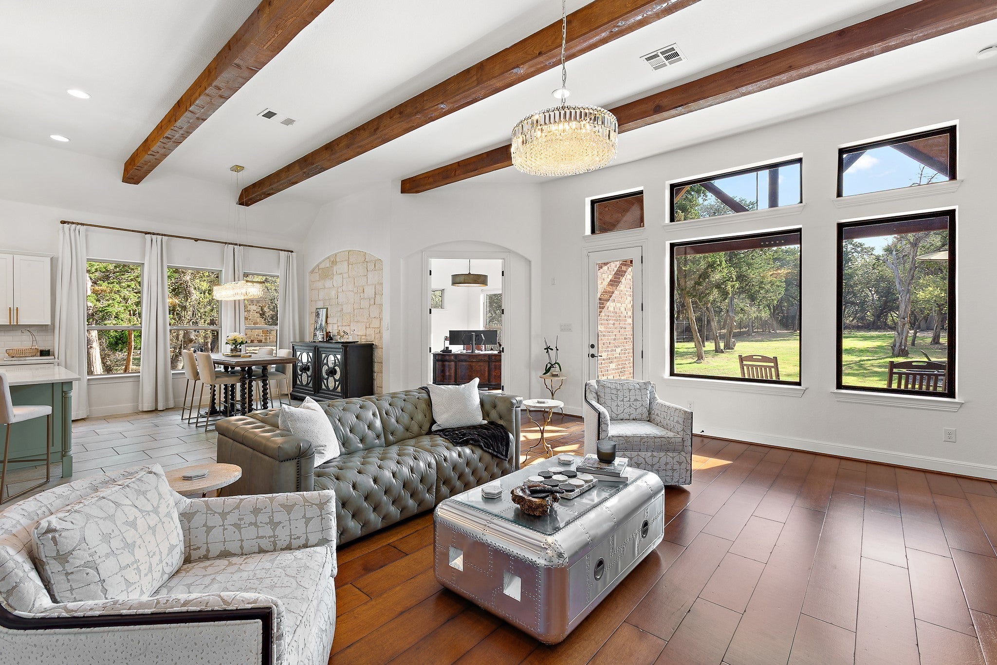 Welcome home to this beautifully updated single-story residence at 1165 Flint Rock Loop in the desirable Rim Rock community of Driftwood, TX. This stunning 3-bedroom, 2.5-bath home offers 2,951 square feet of thoughtfully designed living space on a spacious lot in the Texas Hill Country. It features a dedicated home office and a versatile flex room that can easily serve as a guest room, nursery, or additional living area—ideal for today’s lifestyles. The open, light-filled floor plan offers a cohesive, color-coordinated aesthetic and has been refreshed with numerous upgrades and improvements throughout. The gourmet kitchen is a standout, complete with premium Thermador oven and speed oven microwave. Both the primary and secondary bathrooms boast new countertops, elegant marble accent tiles, and a sleek glass shower enclosure in the primary bath. New lighting has been installed throughout the home, enhancing the bright and inviting atmosphere. Comfort and air quality are elevated with a brand-new dual-zone HVAC system featuring a Halo air purifier and advanced filtration technology that kills 99% of airborne bacteria and viruses. Additional updates include a fresh LED-lit garage with dual EV charging capability, making it perfect for today’s electric vehicle owners. Situated on a generous lot just over one acre in Driftwood, this home offers Hill Country charm with easy access to Austin’s tech corridor, wineries, golf courses, and outdoor recreation. It is served by top-rated Dripping Springs ISD schools. With so many thoughtful updates and upgrades, this move-in-ready home is truly turn-key. Whether you’re working from home, entertaining guests, or simply enjoying peaceful Hill Country living, this property delivers comfort, style, and functionality in one of Driftwood’s most sought-after neighborhoods. Don’t miss the opportunity to make this beautifully enhanced home yours!