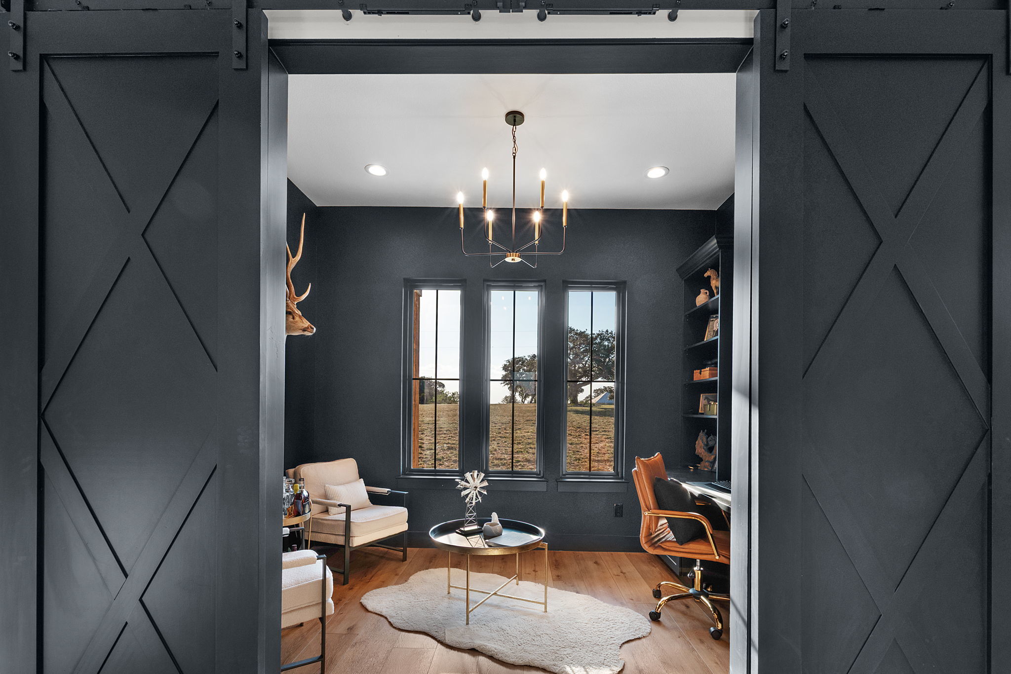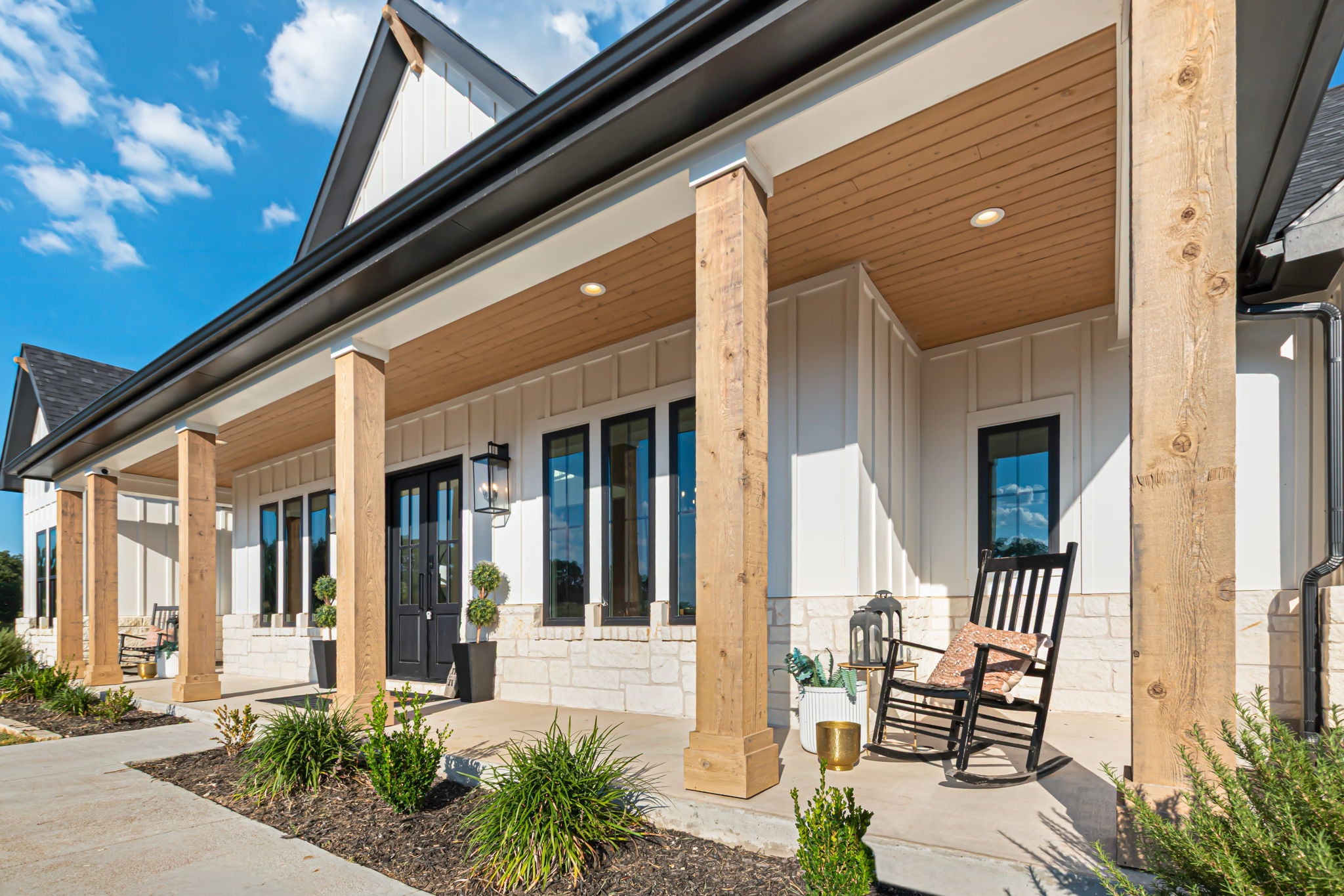 Modern and luxurious, this Jace & Bowen Custom Builders home sits on 5 acres with a wildlife exemption and offers 5 bedrooms and 4.5 bathrooms with exceptional craftsmanship throughout. The grand entryway features soaring 20 foot ceilings, Nu Core luxury vinyl plank flooring, and high beamed ceilings that enhance the open layout. Quartz countertops and backsplash extend through the kitchen and baths, creating a cohesive modern design. The gourmet kitchen highlights quartz surfaces, a large center island, maple cabinetry, and Moen fixtures. ZLINE Energy Star rated appliances include a dual gas/electric range oven, pot filler, automatic microwave drawer, and a vented recirculating hood system. The primary bath features a mirrored barn door entry, dual vanities with quartz counters, a spacious walk in quartz shower with handheld sprayer, and a soaking tub accented by a chandelier and wall mounted TV. The adjoining walk in closet offers custom built ins. A dedicated office with stunning built ins provides an elegant workspace. Anderson 100 Series windows with Fibrex frames fill the home with natural light. The upstairs loft with full bath offers flexibility for an additional bedroom or living area. The insulated three car garage includes a sauna, storage, and an acclimatized room with cooled walk-in space. A 500 gallon underground propane tank and 3,000 gallon water storage tank add efficiency. Outdoor living features a covered back porch with gas log fireplace plumbed for an outdoor kitchen, a large backyard currently being fenced in, and a barn with electricity.