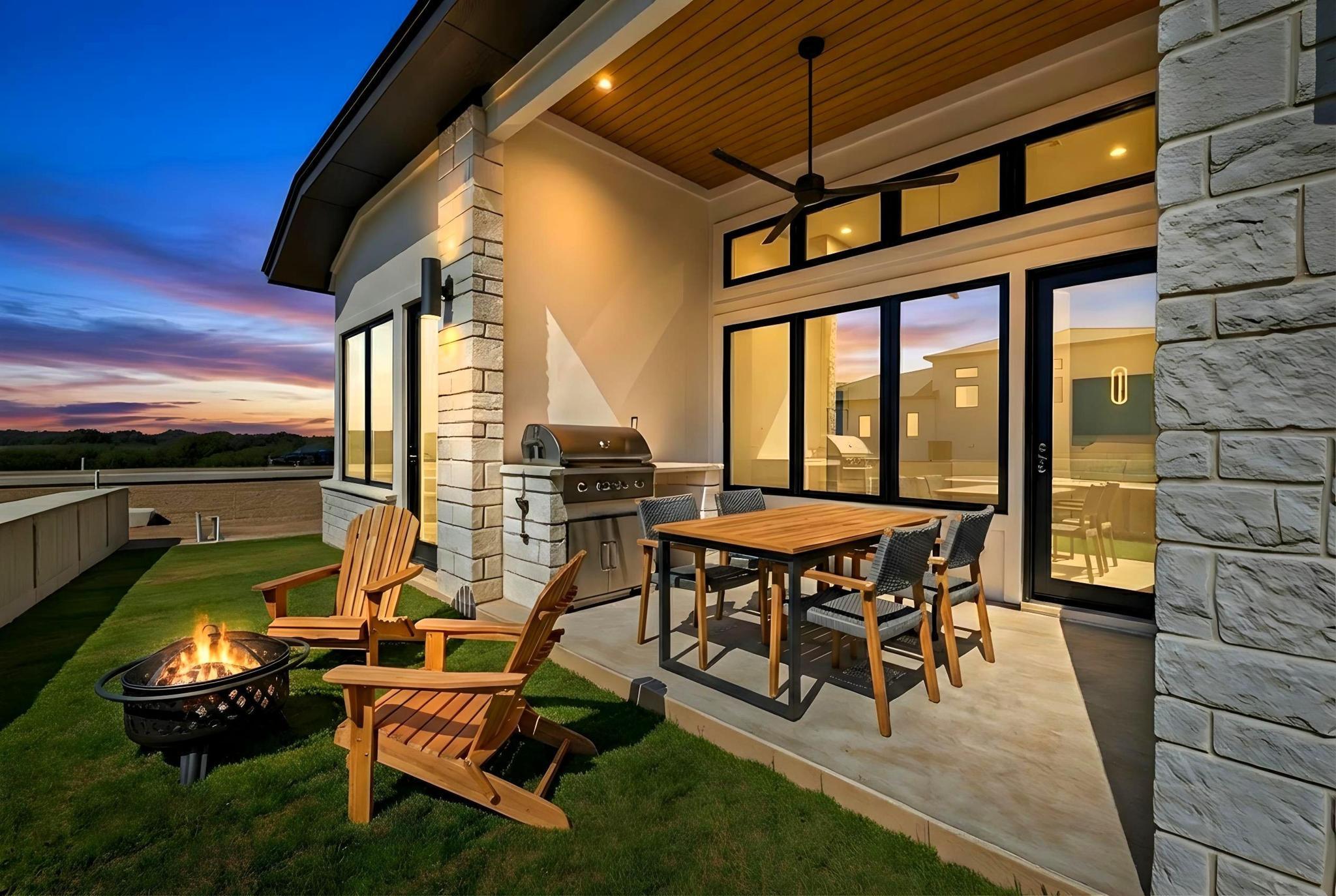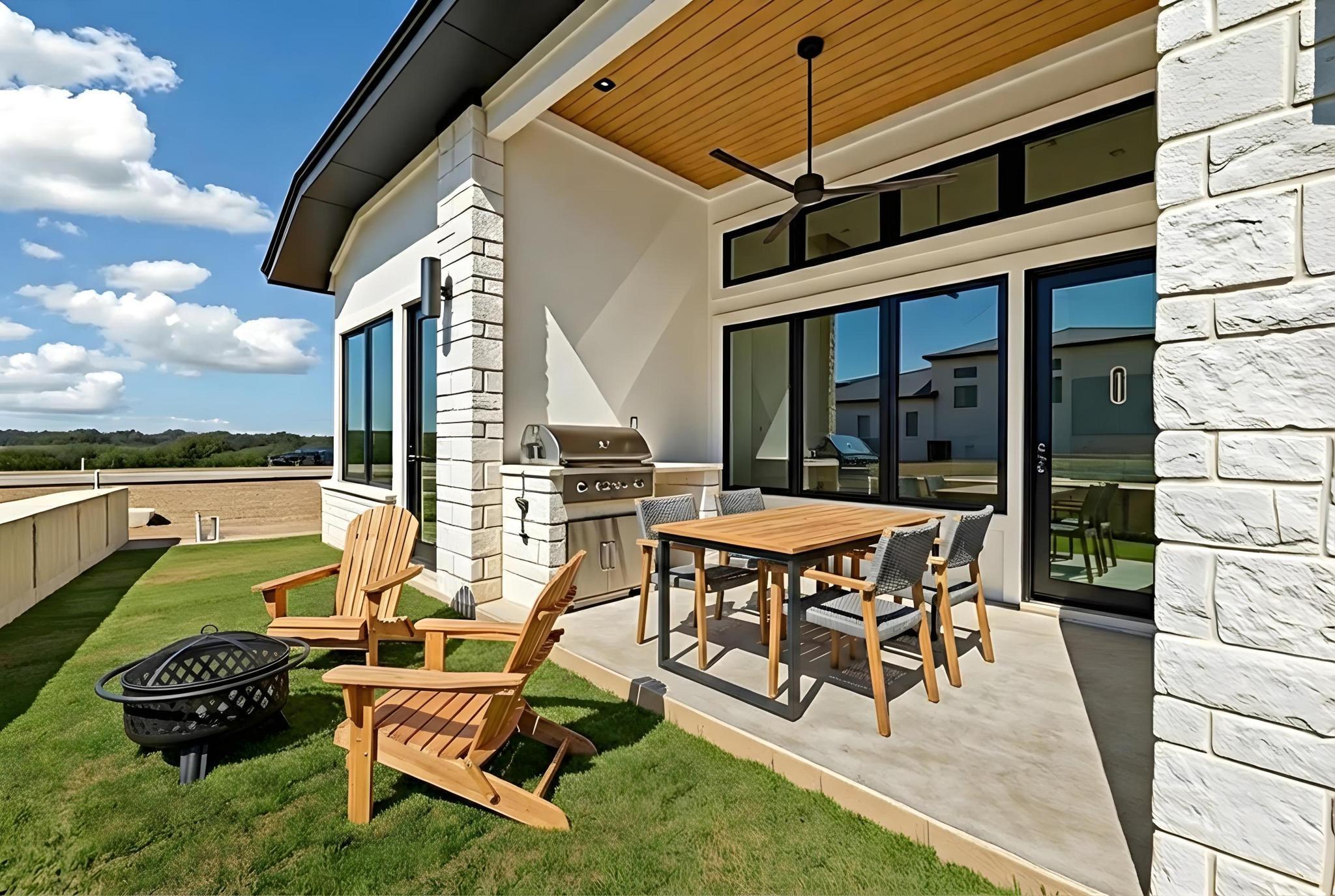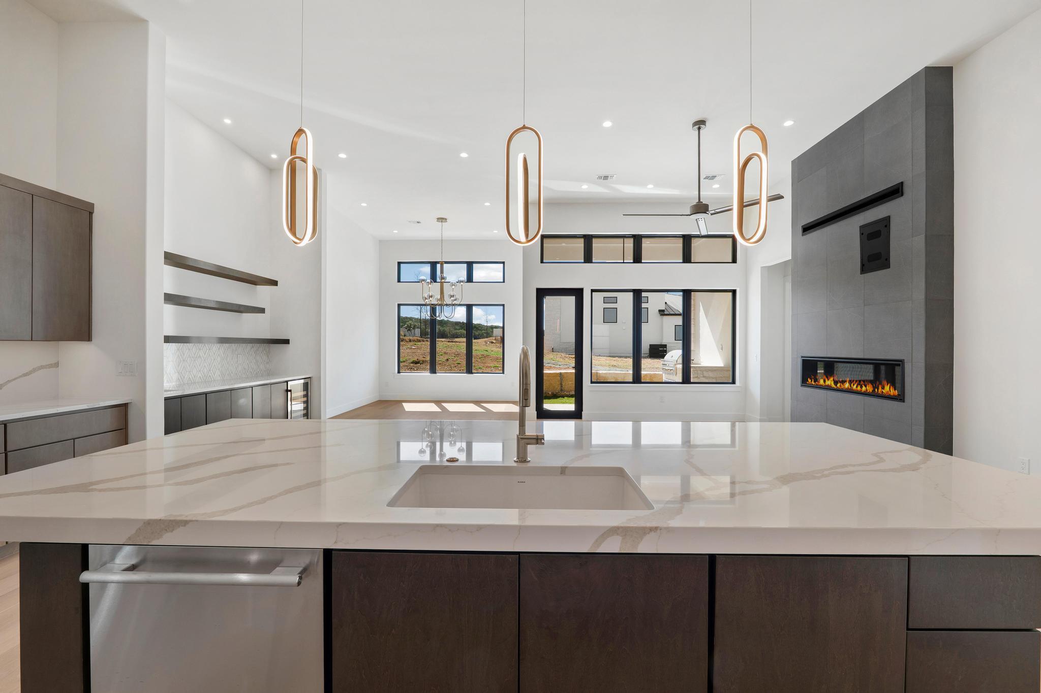 Welcome to 103 Via Roma, an exceptional new construction home in Tuscan Village at Summit Rock Estates, a premier 55+ resort-style community in Horseshoe Bay. Thoughtfully designed with contemporary elegance, this home offers refined living in a peaceful Hill Country setting. The open-concept floor plan features 3 bedrooms, 3 bathrooms, and a 2-car garage. The family room showcases a sleek linear fireplace with a striking tile feature wall, while expansive sliding glass doors create seamless indoor-outdoor living. The gourmet kitchen is appointed with quartz countertops, abundant cabinetry, and a spacious dining area, along with a separate prep kitchen featuring a second sink and additional storage. The primary suite offers a spa-inspired bath with dual vanities, soaking tub, walk-in shower, and generous walk-in closet. Residents enjoy gated access, a community pool, pickleball and tennis courts, fitness center, and beautifully maintained grounds. Developer incentive includes a Links Level initiation waiver for The Club at Horseshoe Bay valued at $40,000 (membership approval required) plus a $10,000 discretionary package.Also, Promotional Pricing of $909,900 available until 5/31/2026. Don't miss out on the additional savings!