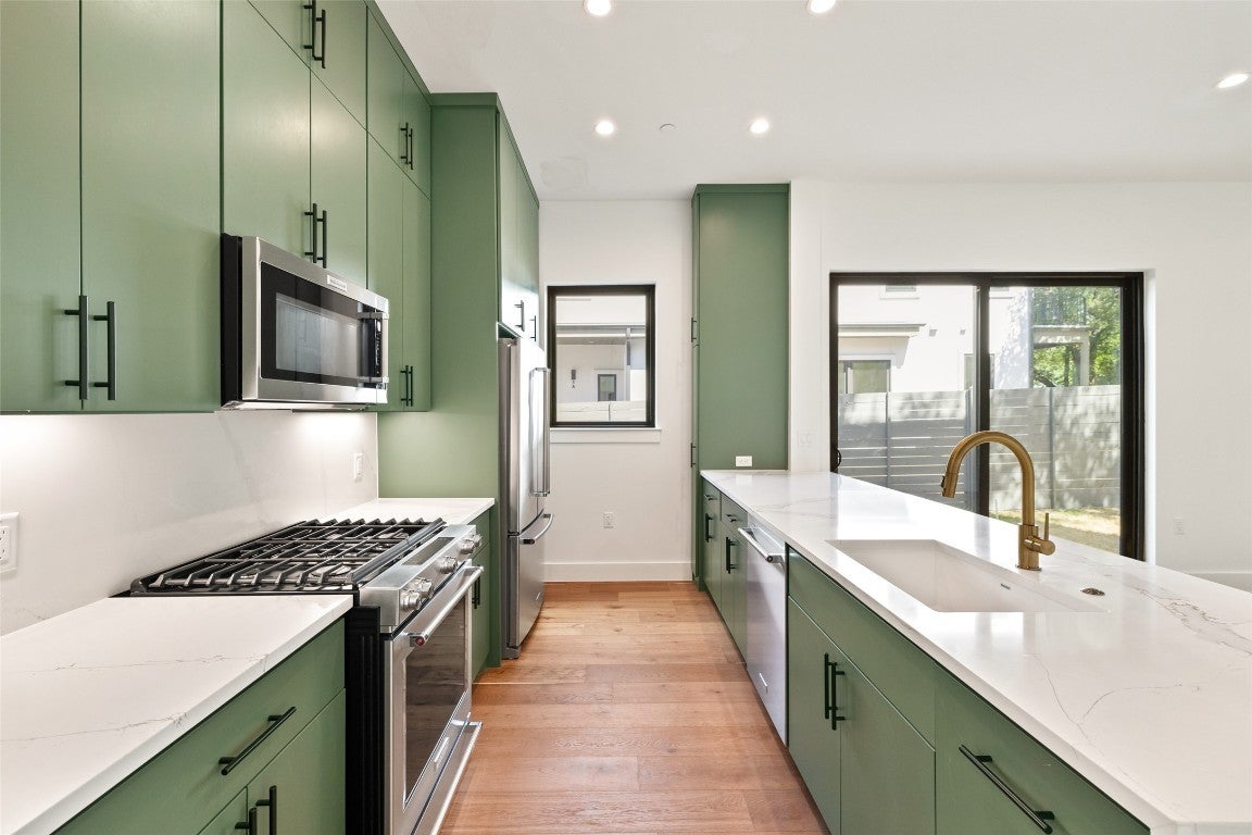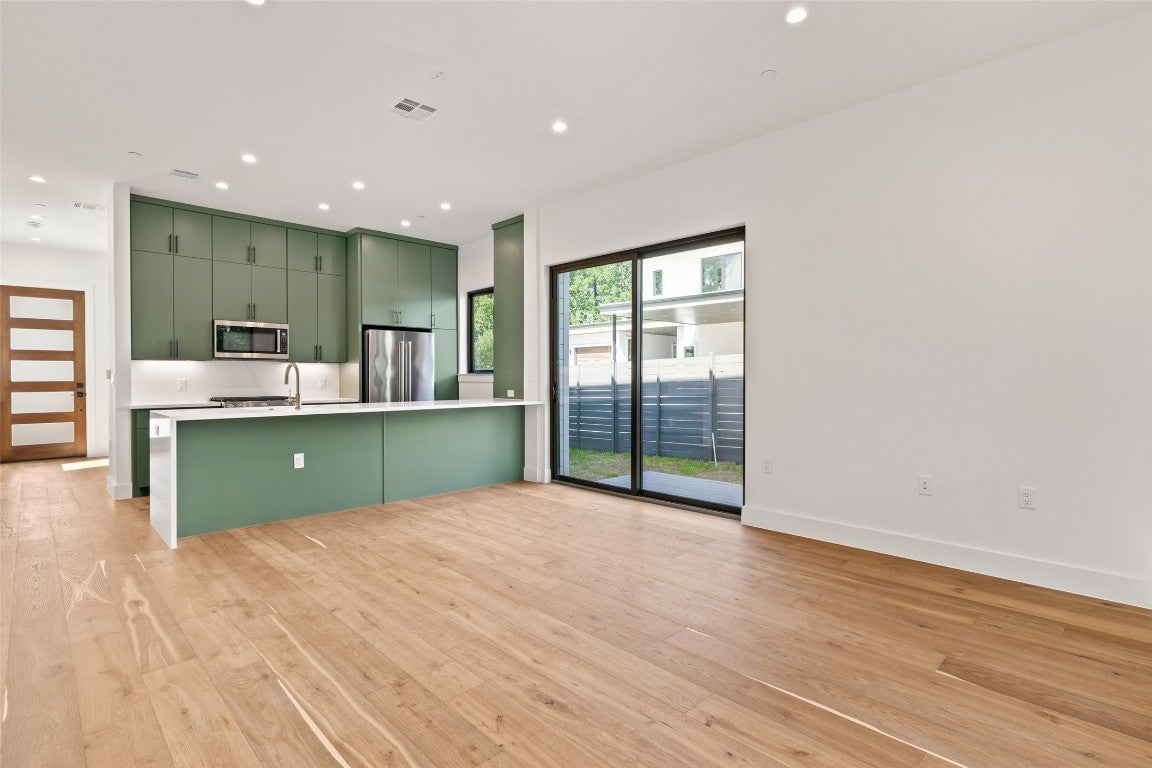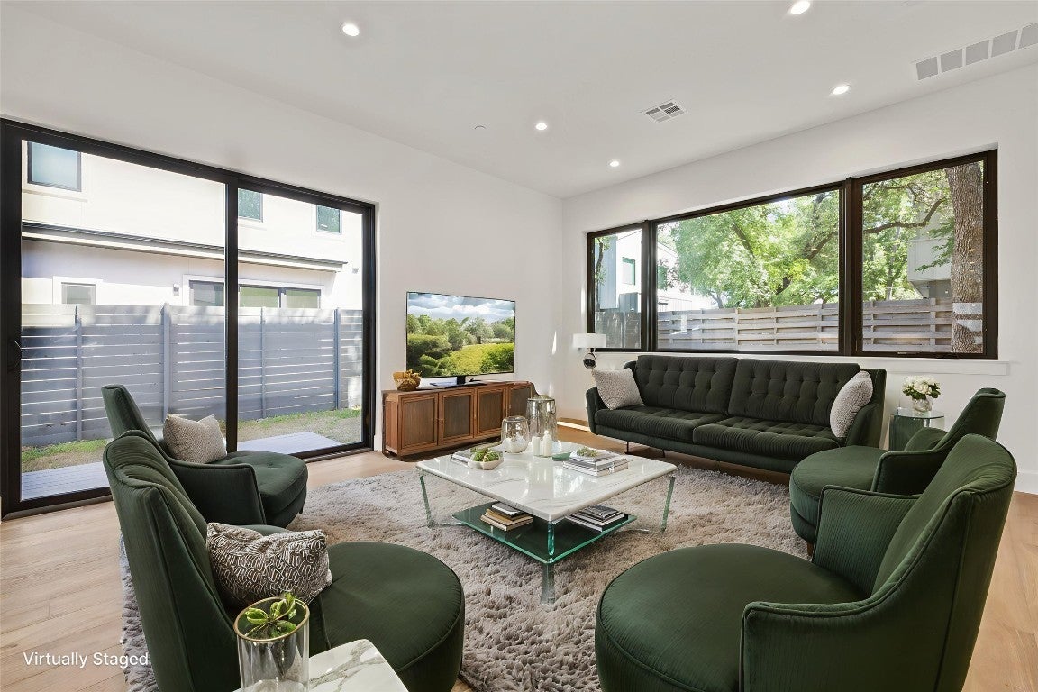 Newly Priced! A GREAT VALUE. NEW CONSTRUCTION IN 78704.....Modern city living near downtown. 2 Bedrooms, 2.5 baths, 2 living & 1 Car Garage (Semi-detached home) 1 of 8 unique residences nestled in the small enclave of Clawson Oaks. All 8 homes have different floor plans. Showcasing contemporary design, clean lines & stylish finishes, these two & three bedroom homes offer the perfect blend of function, location & lifestyle. Beautifully designed elevated sexy bathrooms. Abundant natural light fills the interior, highlighting such features as quartz countertops & backsplash with KitchenAid appliances, Modern Euro style cabinets & soft close hardware. Beautiful plank wood floors throughout & custom tile bathrooms. Each home has a private backyard, offering a tranquil retreat amongst the stately Live oaks that adorn the property. Enjoy the vibrant outdoor ATX lifestyle. Located near many of Austin’s favorite hangouts, restaurants, coffee shops, bars, BBQ, music venues, Lady Bird Lake, Barton Springs & Zilker Park. Your perfect private retreat close to everything. (Andersen sliding doors & casement windows, Standing seam interlocking metal roof, Stucco & architect line James Hardie V Plank siding exterior, Tankless hot water heater, Spray foam insulation, Carrier HVAC, Wood and tile flooring throughout & Google fiber) Ready for BLUE TAPE buyer walk through and final construction punch list. Builder warranty provided at closing. A Must See! *Virtual AI Furnished & Back yard grass images.