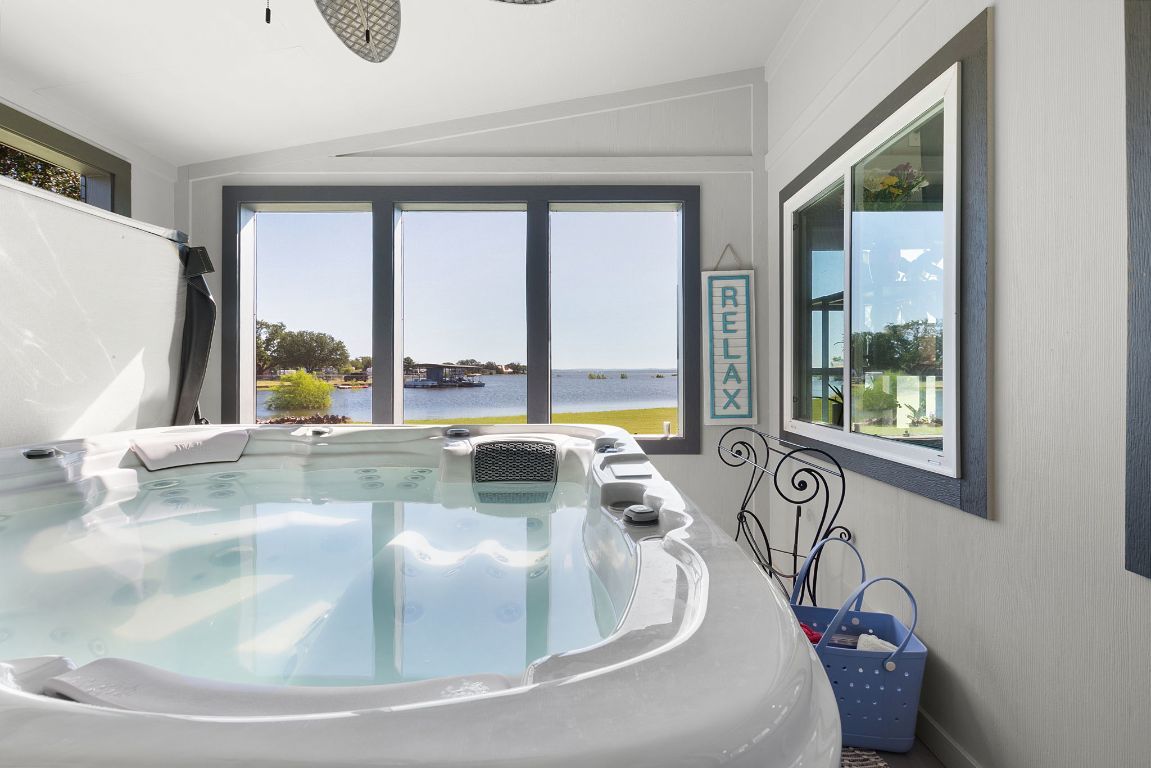 Discover an exclusive waterfront retreat on Lake Buchanan—a rare find offering 1.3 acres of Texas Hill Country beauty with approx. 334 ft of private waterfront. This 3,375 sq ft, 4-bed, 3-bath home is perfectly positioned to capture wide-open lake views and deliver the best of lakeside living. Inside, enjoy a bright, open layout with expansive living and dining spaces that flow into a modern kitchen featuring quartz counters, a gas range, open shelving, and sleek tile backsplash. A newly added sunroom houses a private hot tub room overlooking the lake, creating a relaxing year-round retreat. Other highlights include a luxurious walk-in tile shower, a dedicated craft room, and 2 bedrooms that enjoy peaceful water views. Recent upgrades include a new LCRA-approved septic system (2025), new roof (2020), updated windows, HVAC, well house, driveway, and fresh paint inside and out. The lake is full and ready for fun—enjoy boating, fishing, and swimming just steps from your backyard. During lower lake levels, explore the expanded shoreline, natural rock features, and hidden trails. Whether you're looking for a primary residence, weekend getaway, this lakefront gem delivers comfort, space, and unbeatable waterfront living.