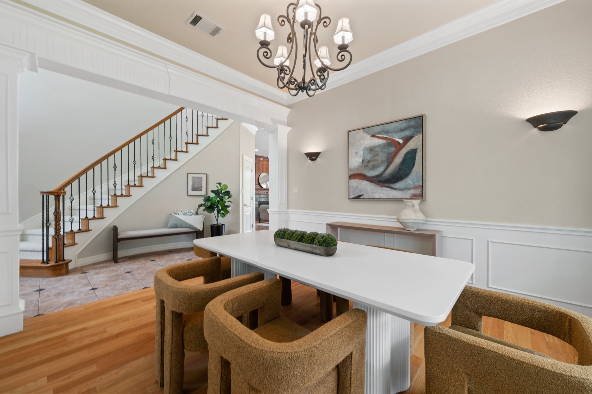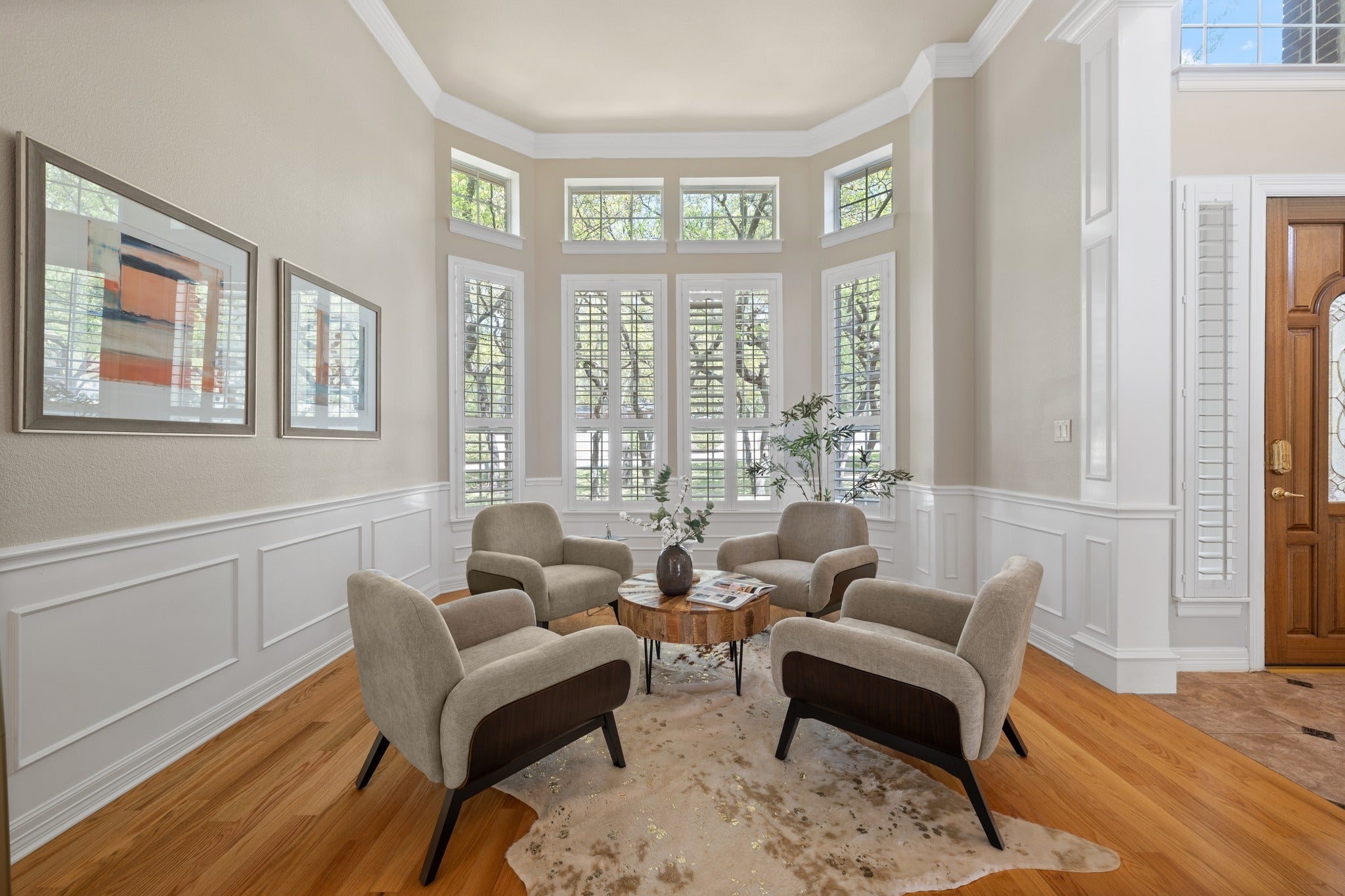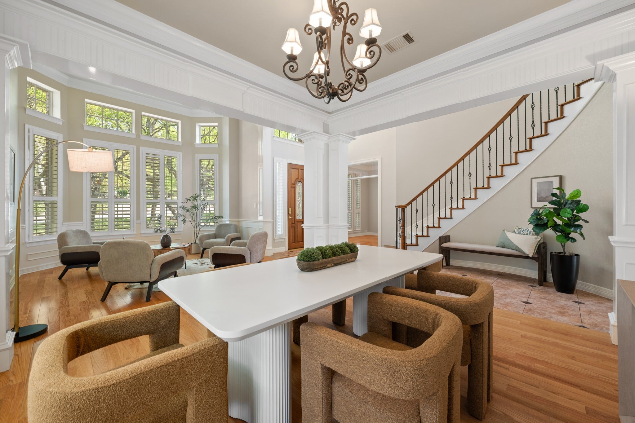 Experience refined luxury and serene natural beauty in this stunning 4,527 sq ft estate, perfectly situated on a private half-acre lot backing to a spring-fed creek and lush greenbelt. Surrounded by mature trees, this exceptional property offers the ultimate in privacy, tranquility, and upscale living. Thoughtfully designed, the two-story layout features a spacious primary suite on the main level, with additional bedrooms upstairs. Expansive windows fill the home with natural light, highlighting the rich oak floors and fresh updates, including new paint and carpeting. Step outside to your own private retreat, complete with a heated pool, outdoor grill, and elegant Lueder limestone hardscaping—ideal for both entertaining and quiet relaxation. A rare opportunity to own a luxury home that seamlessly blends comfort, style, and breathtaking natural surroundings.