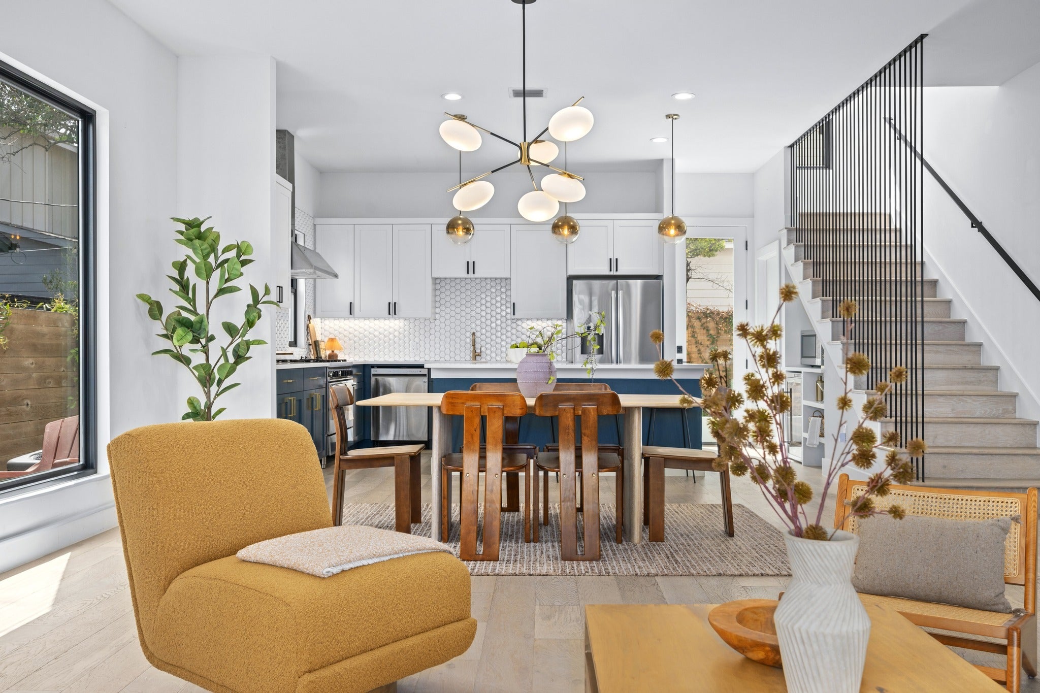 Set in the heart of Austin’s coveted 78704, this free standing condo offers a thoughtful, light-filled layout paired with multiple outdoor spaces and sweeping downtown views. Designed for both everyday living and easy entertaining, the home blends smart functionality with the vibrant energy of one of Austin’s most sought-after neighborhoods. The main living level centers around a sprawling kitchen island with bar-top seating, creating a natural gathering place that flows seamlessly into the dining area and main living room. Bertazzoni gas range, built-in wine fridge and spacious pantry and stylish hex backsplash make the kitchen area pop! The open-concept design allows the spaces to connect effortlessly, while expansive windows and glass doors bring in abundant natural light and offer access to fenced in front yard. Well-appointed bedrooms offer comfortable retreats, with a vaulted primary bedroom and stunning bath that won't disappoint. The expansive double vanity offers ample space and a true walk-in shower + soaker tub behind a framless glass enclosure. A third-level bonus space provides flexibility for a home office, lounge, or creative studio and opens to a top floor outdoor lounge that capture skyline views. Fenced in outdoor spaces, including both a front yard and private backyard, create opportunities for relaxing, entertaining, or enjoying Austin’s year-round weather. The current owners appreciate the valueable storage space a 2car garage offers. All of this sits just moments from Austin’s best restaurants, coffee shops, and boutiques, with the convenience of a brand-new H-E-B less than a mile away, making everyday errands just as easy as a night out in the city. In 78704, lifestyle and location truly go hand in hand.