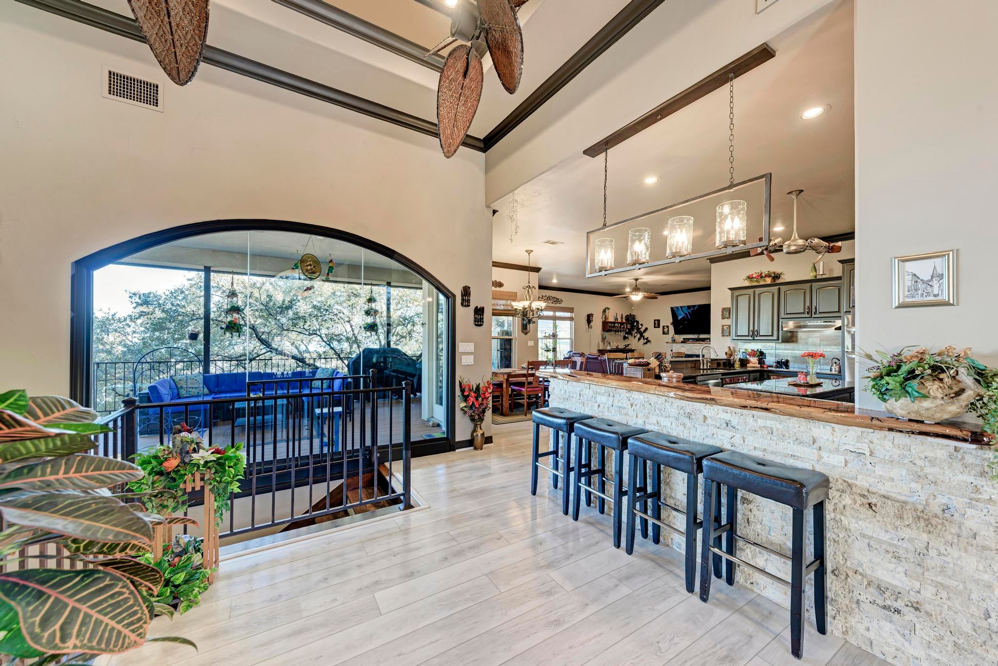 Welcome to your dream home in the prestigious Horseshoe Bay Resort, where luxury meets comfort! This stunning 4-bedroom, 4 ½-bath residence offers an unparalleled lifestyle, featuring a spacious layout ideal for both relaxation and entertainment. As you step inside, you’ll be greeted by a grand view of Lake LBJ. The open concept kitchen and living are the center of this lovely home. The large primary bedroom is a true retreat, boasting a cozy fireplace, a soaking tub, and a separate shower for your ultimate relaxation. Each additional bedroom is generously sized and designed with comfort and privacy in mind. The lower level has a huge game room and wet bar, perfect for entertaining guests or family game nights. The exercise area ensures you can maintain an active lifestyle without leaving the comfort of your home. There is also a fourth bedroom and bath downstairs with a separate entry from the carport, lending itself to multi-generational living. Step outside to your private oasis, where a heated saltwater pool with a picturesque waterfall awaits. The inviting cabana provides a perfect spot for fun and entertainment. When the weather is colder, you can sit around the firepit in the terraced rock garden. Additional features include a two-car garage and a two-car carport, ensuring ample parking space. You won't be left in the dark because this home has solar panels and a Tesla backup battery! You must see this home to appreciate everything it has to offer.