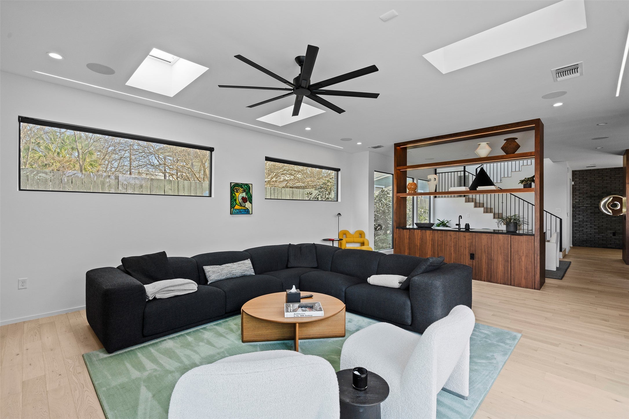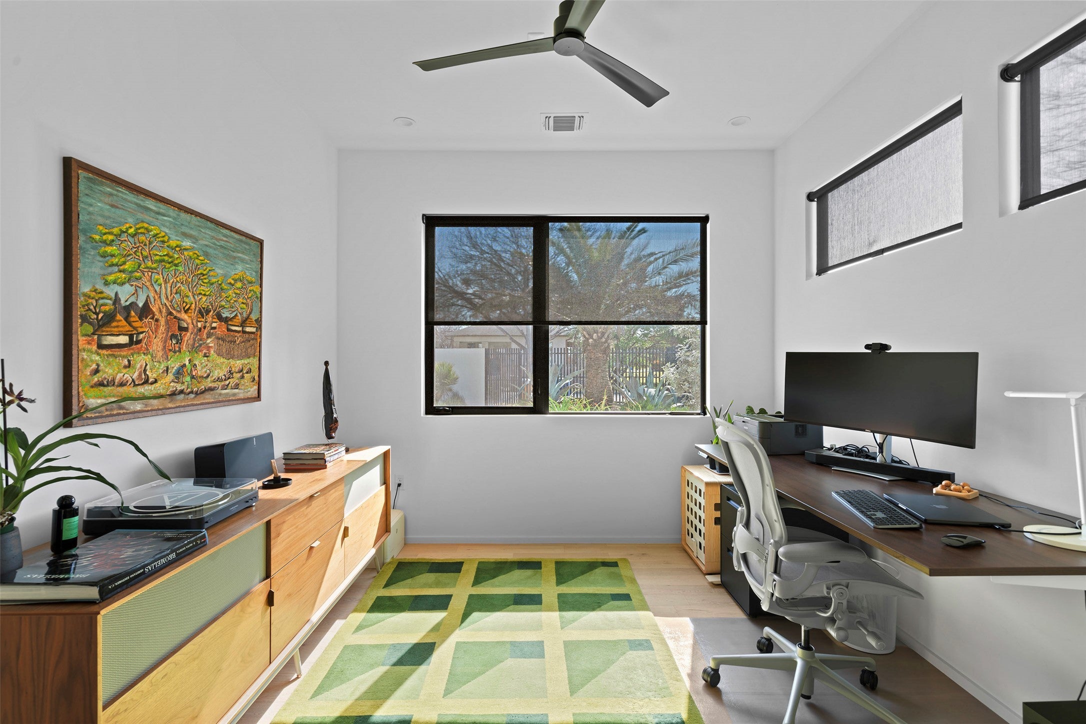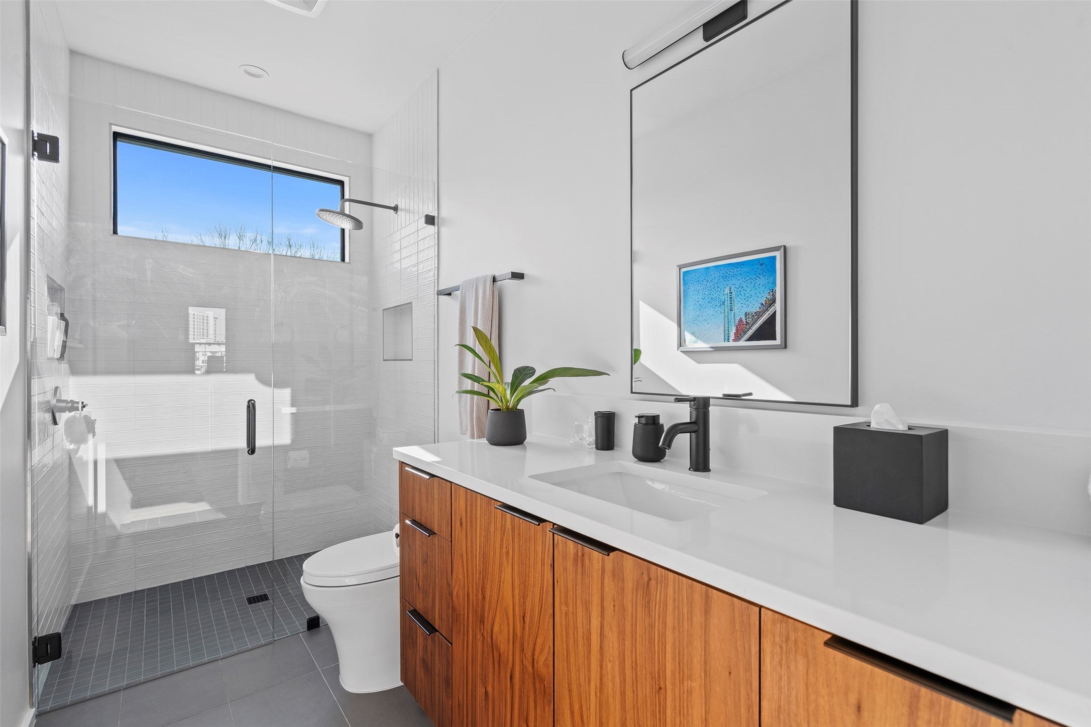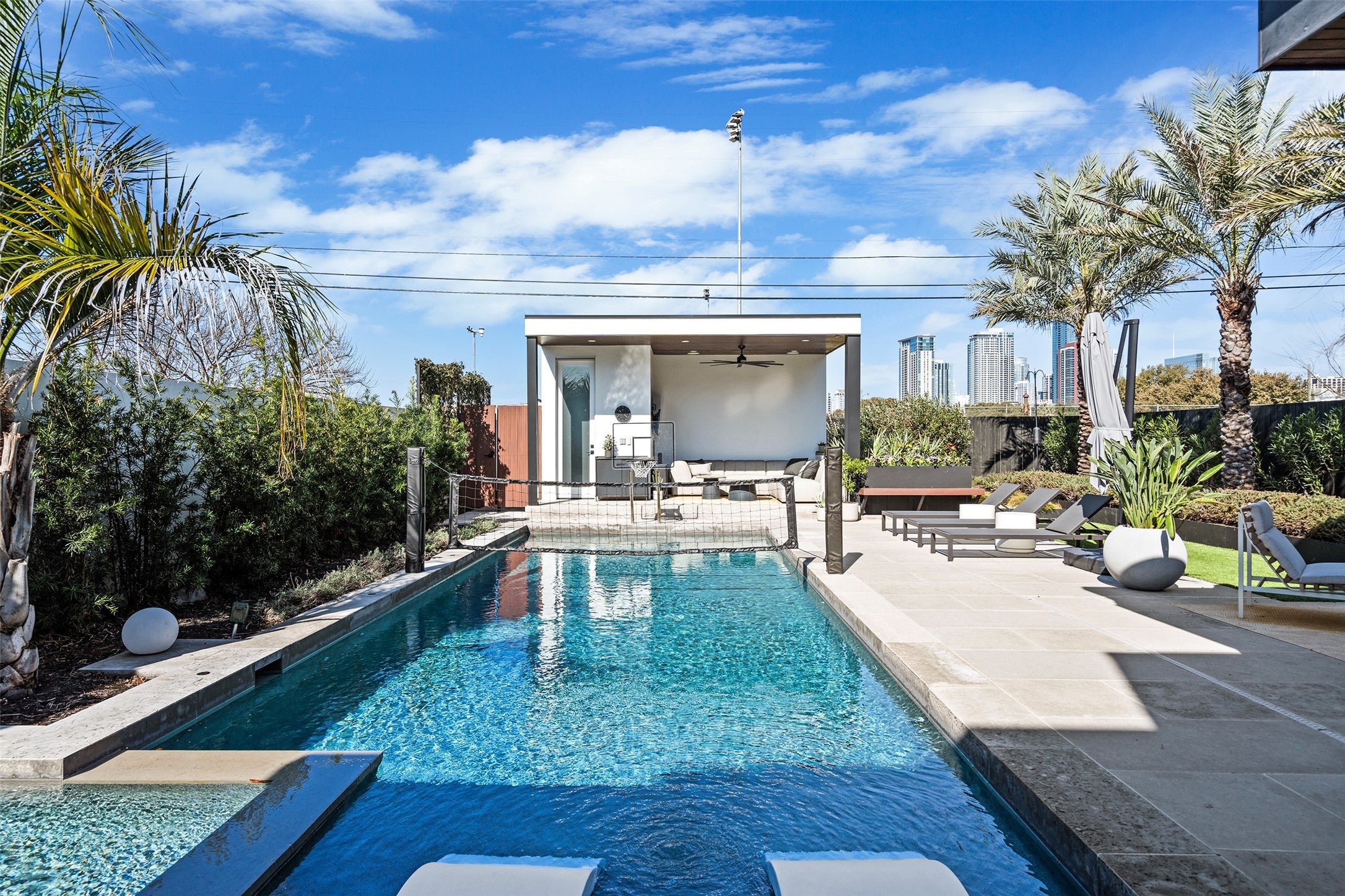 This rare modern residence in Austin's coveted Holly District is an architectural gem, designed & furnished by SLIC Design & featured in 1stDibs Introspective Magazine. It blends luxury, smart technology, & sophisticated design. Every detail, from structure to landscaping, has been meticulously crafted for an elevated living experience. The backyard is an urban oasis with a large pool, built-in spa, beach area, & smart controls for heating/chilling. Multiple seating areas, a pool casita with a half bath, full kitchen, TV setup, outdoor shower, sound system, & fireplace. Enjoy skyline & park views with privacy, created by a custom boundary wall. Over $250,000 was spent on landscaping alone. Smart Home & Security - Josh AI integration for voice-controlled music, lighting, & fans. Full security system with cameras & Door Bird video entry with remote access. Fast 2GB internet. Whole-home water filter, auto-start backup generator, dual tankless water heaters, & two variable-speed HVAC units. White oak floors, level 5 drywall, & walnut cabinetry. Motorized blinds, Sonos speakers, gas fireplace, & 77” TV cutout. Natural light pours through large sliding doors & skylights. State-of-the-Art Kitchen: Quartzite countertops, walnut cabinetry & Sub-Zero/Wolf appliances. Sliding doors connect indoor & outdoor kitchens. Luxurious Primary Suite: Downtown views, custom headboard, Sonos surround sound, motorized blackout shades, & with waterfall shower. Walk-in closet with walnut cabinetry & full-size washer/dryer. Garage & More: Finished two-car garage with epoxy floors, built-in storage, two electric car chargers, & mini-split for heating/cooling, ideal for gym or workshop. The home features bespoke pieces from SLIC Design, with $225k invested in art & furnishings (available for negotiation). Built to the highest standards, this home offers an unparalleled blend of design, technology, & luxury. Don’t miss the chance to own this one-of-a-kind property.