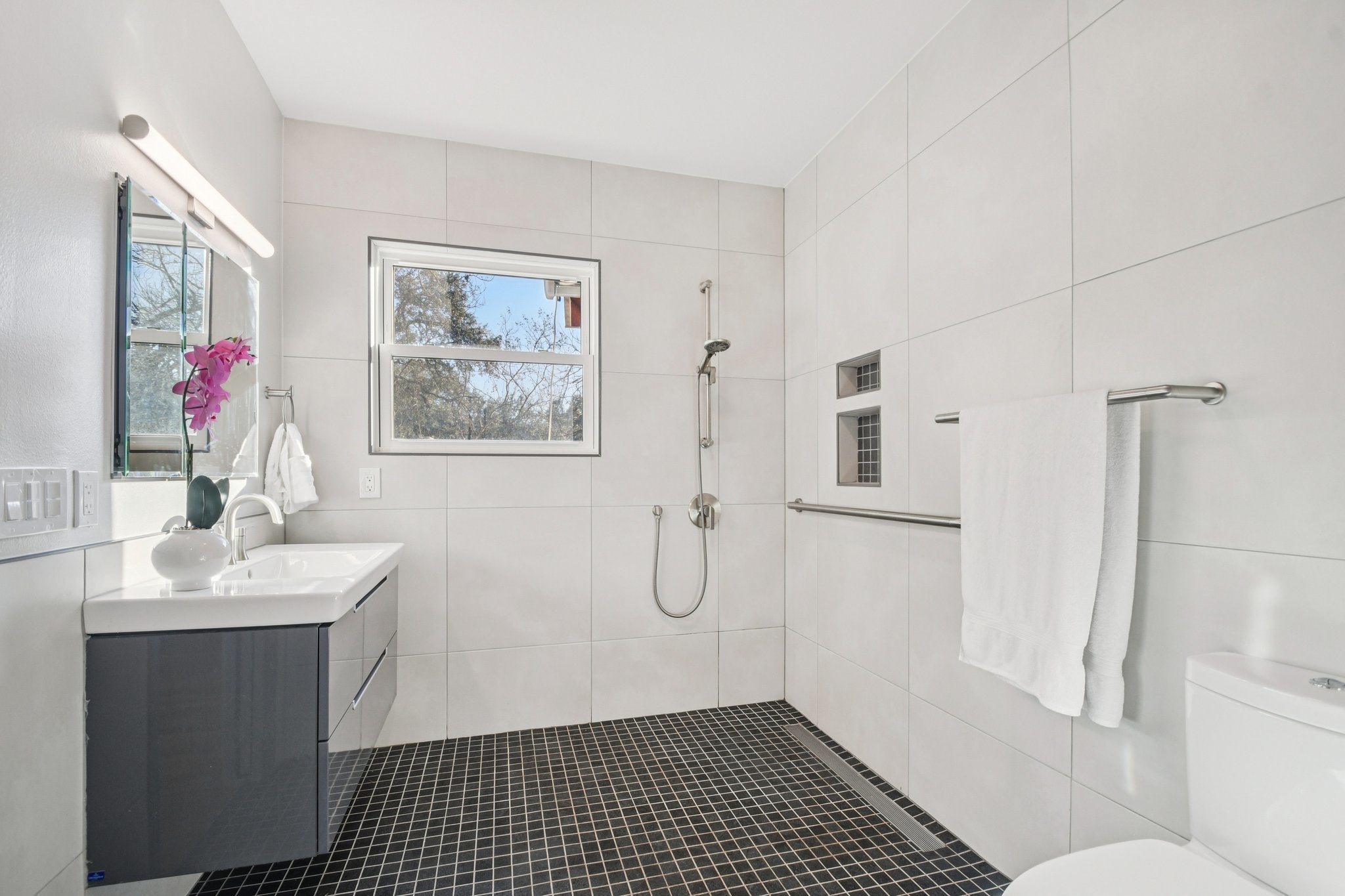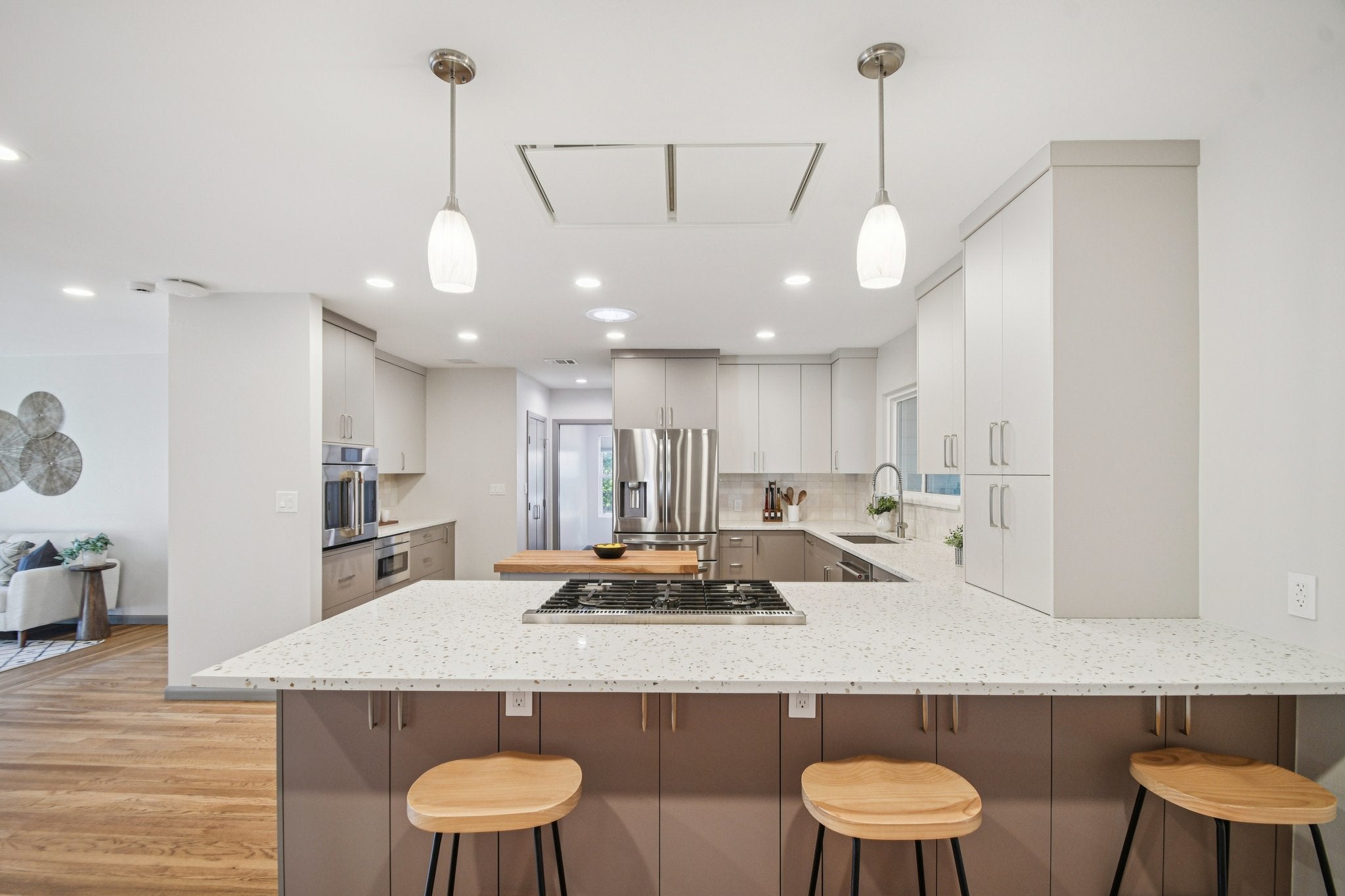 *Bundled service pricing available for buyers. Connect with the listing agent for details* Redesigned for Age-in-Place! 2 Master Suites. Set in one of Central Austin’s most desirable pockets, this beautifully remodeled home raises the bar for everyday living. From the layout to the finishes, every detail has been thoughtfully executed to create spaces that feel refined, welcoming, and exceptionally livable. At the heart of the home is a standout kitchen designed for both daily life and entertaining. Custom NXT cabinetry offers deep drawers, hidden pull-outs, vertical storage, and dual walk-in pantries, all anchored by a solid oak island. High-performance appliances include a GE Cafe dual-fuel range, GE Cafe French-door oven, Samsung smart refrigerator, KitchenAid dishwasher, and a sleek microwave drawer. Solatube daylighting, full-spectrum Philips Hue lighting, and Aerial Quartz countertops. Living and dining areas feel expansive yet grounded, unified by original oak flooring that runs seamlessly throughout with no interior thresholds. Double sliding glass doors open to the outdoor deck, creating an effortless indoor-outdoor connection ideal for entertaining. Smart lighting throughout allows the ambiance to shift easily from day to night. Two private primary suites offer flexibility and comfort, each with walk-in closets and spa-inspired bathrooms featuring Villeroy & Boch vanities, adjustable shower systems, and in-ceiling heat and lighting. Two additional bedrooms provide space for guests, home offices, or creative use. Outdoor living is equally well considered, with an Azek capped-polymer deck, steel railing, extendable lighted awning, natural gas grill connection, and layered exterior lighting for year-round enjoyment. Belgard permeable pavers provide off-street parking, while a retaining wall and undercroft lighting enhance curb appeal. The home is fully modernized with Anlin windows, a tankless water heater, new HVAC system, electrical panels, & Tesla charger.