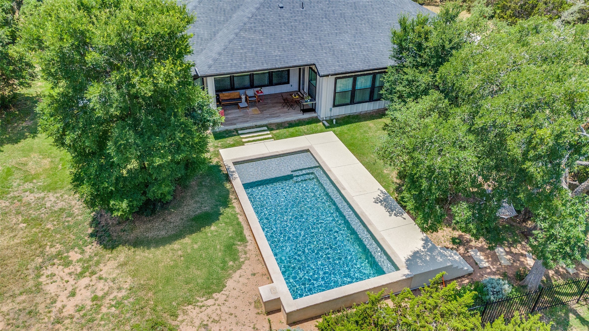 Welcome to refined Hill Country living at 410 Woodland Oaks Trl. Situated on a private cul-de-sac, a gated 2+ acre prime lot, this exceptional single-story 2021 build offers tranquility and convenient access to Austin and the surrounding Hill Country. Thoughtfully designed, this 3,313sf residence features 5 spacious bedrooms,3 1/2 bathrooms, and a flexible winged layout ideal for multi generational living or work from home needs. A dedicated office or den sits just off the entry, while soaring 11ft ceilings and abundant natural light create an open and welcoming atmosphere throughout the home. The chef inspired kitchen features custom cabinetry, quartz countertops, a farmhouse sink, massive island prep, and a striking 48in 6-burner gas range with griddle and custom vent hood perfect for gathering. Premium Knotty Alder interior doors and porcelain plank tile flooring add warmth while providing durable, low maintenance Hill Country living. The outdoors are equally inviting: a custom pool just off the covered back porch, surrounded by mature oaks and peaceful Hill Country views, perfect for sitting on either covered patio. Professionally curated landscape highlights Waterwise native plants and a vibrant wildflower meadow that blooms each spring with the Ladybird Johnson mix. You will love the 3 car garage with epoxy-coated floors, spacious attic with spray-foam insulation, low E windows, propane-powered Generac generator, automatic hot-water recirculation, fully-fenced yard, with smart gate access. The hobbyist will revel in the +/-1,500sf outbuilding, separately metered with covered parking, offering exceptional flexibility for equipment storage, a workshop, or RV/ATV/boat storing. Qualified VA buyers have the rare opportunity to assume the existing 2.75% interest rate, offering substantial monthly savings and increased purchasing power. Austin, Dripping Springs and beyond- this home is your perfect pivot point. Luxury, privacy, and simplicity can truly be yours.
