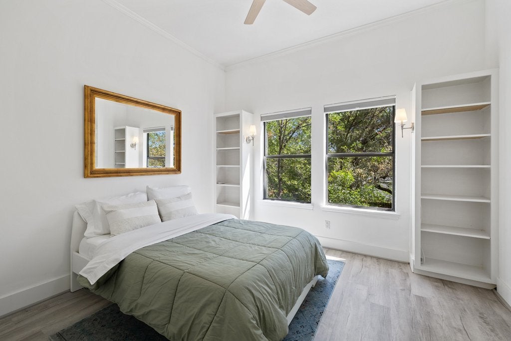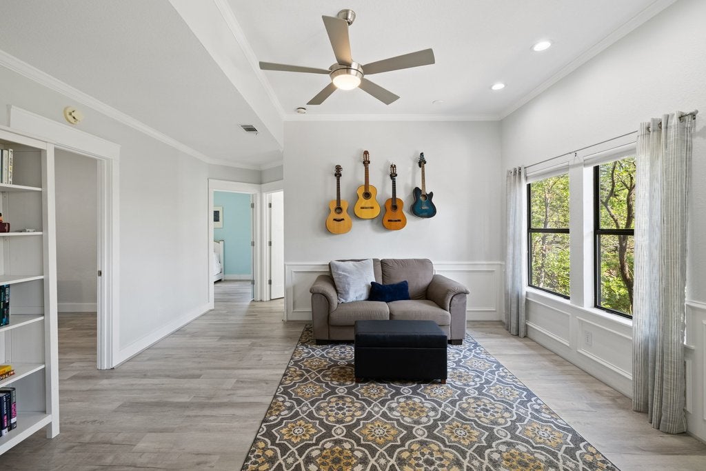 Positioned on a quiet, tree-lined street in the highly sought-after Northwest Hills area, this residence offers a rare blend of privacy, architectural presence, and scenic views surrounded by the mature landscape that defines this part of Austin. The tastefully renovated interior is both refined and practical, with a thoughtful layout that balances openness with defined spaces. Multiple living areas create a natural flow for entertaining and everyday living, allowing each space to feel functional without sacrificing connection. Expanses of natural light move throughout, enhancing the home’s warmth and character. A consistent level of craftsmanship and finish is evident throughout, offering a sense of quality that feels timeless and enduring. A versatile flex space adds function without compromise, ideal for a home office, gym, media room, or a relaxed retreat that adapts to your lifestyle. Outdoor living is equally compelling. Sweeping views and inviting gathering spaces create a seamless extension of the interior ideal for slow mornings, relaxed evenings, and everything in between, all set against a backdrop of treetops and sky. The backyard offers a rare sense of space and possibility whether envisioned as a future pool and outdoor retreat or enjoyed just as it is, with room to relax, entertain, and connect with the natural surroundings. Zoned to highly regarded schools, the location adds another layer of long-term value while remaining equally appealing for those seeking a peaceful, low-maintenance lifestyle. The result is a home that lives beautifully: refined yet comfortable, welcoming and easy, set in one of Austin’s most desirable locations.