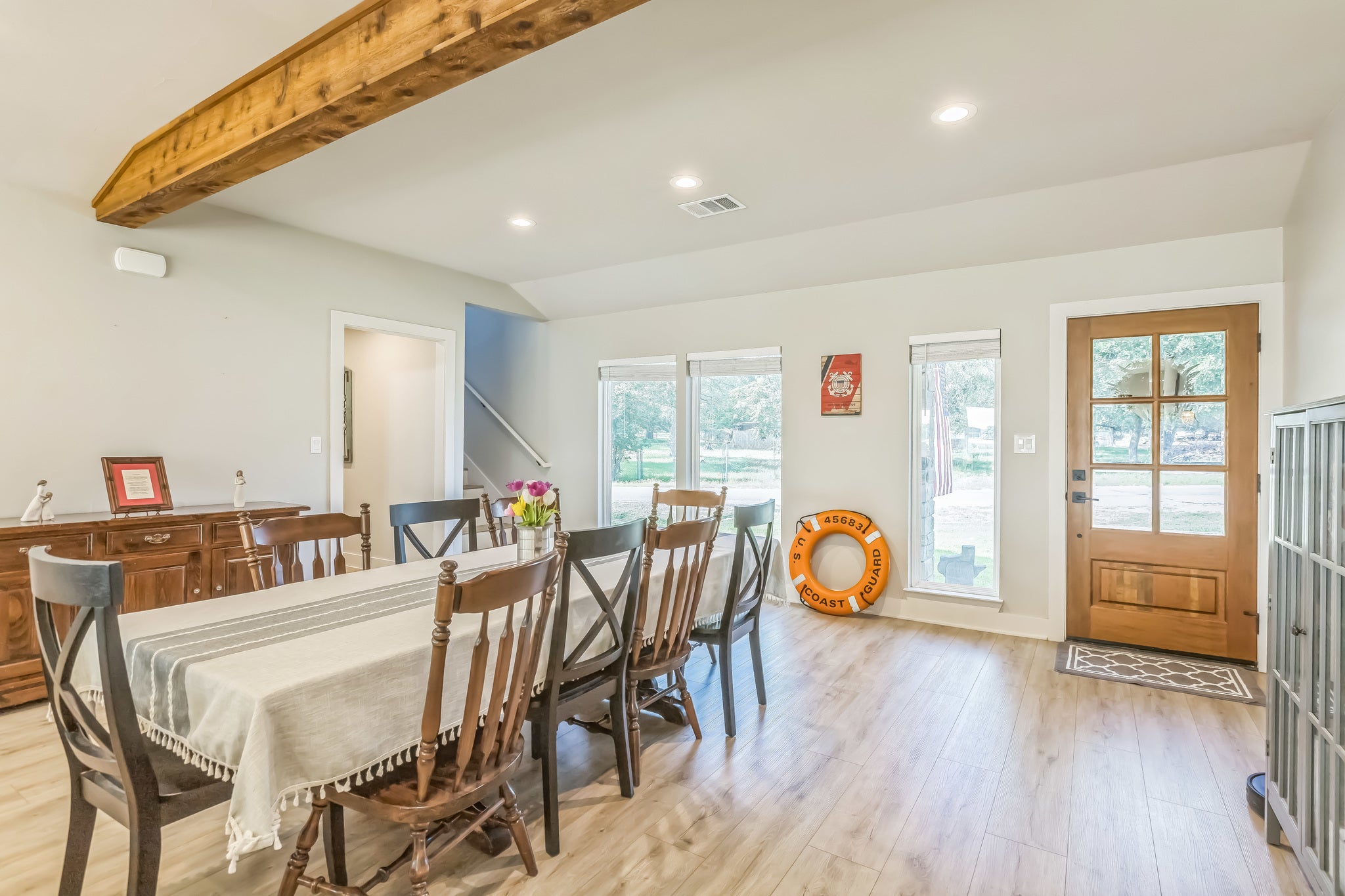 Experience the beauty and serenity of lakeside living in this stunning 2022, built home on coveted Lake LBJ. This thoughtfully designed, open-concept residence offers the perfect blend of modern comfort and timeless waterfront charm. Step inside to a spacious living area that flows seamlessly into a large, contemporary kitchen which is perfect for entertaining family and friends. The natural light and lake views create a warm, inviting atmosphere throughout the main level. The layout includes a spacious primary suite with a luxurious en-suite bathroom and walk-in closet, plus an additional bedroom and full bath on the first floor. Upstairs, you'll find two more generously sized bedrooms, a third full bathroom, and a versatile loft area. Enjoy endless days on the water thanks to your private, covered boat dock just steps from your back door. The dock is just a short distance to the main body of Lake LBJ. Whether you love boating, fishing, or simply relaxing lakeside, this home offers a lifestyle that feels like a vacation every day. With quality construction from 2022, you’ll enjoy modern energy efficiency, updated finishes, and peace of mind for years to come. Located in a quiet, desirable area of Lake LBJ. Don’t miss your opportunity to own a piece of lakefront paradise. Schedule your private tour today and discover what makes life on Lake LBJ so special. The canal was recently widened by approximately 7 feet to provide better navigation and aesthetics.