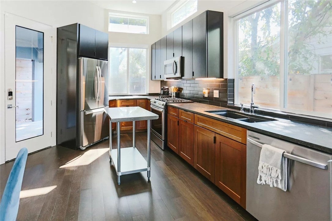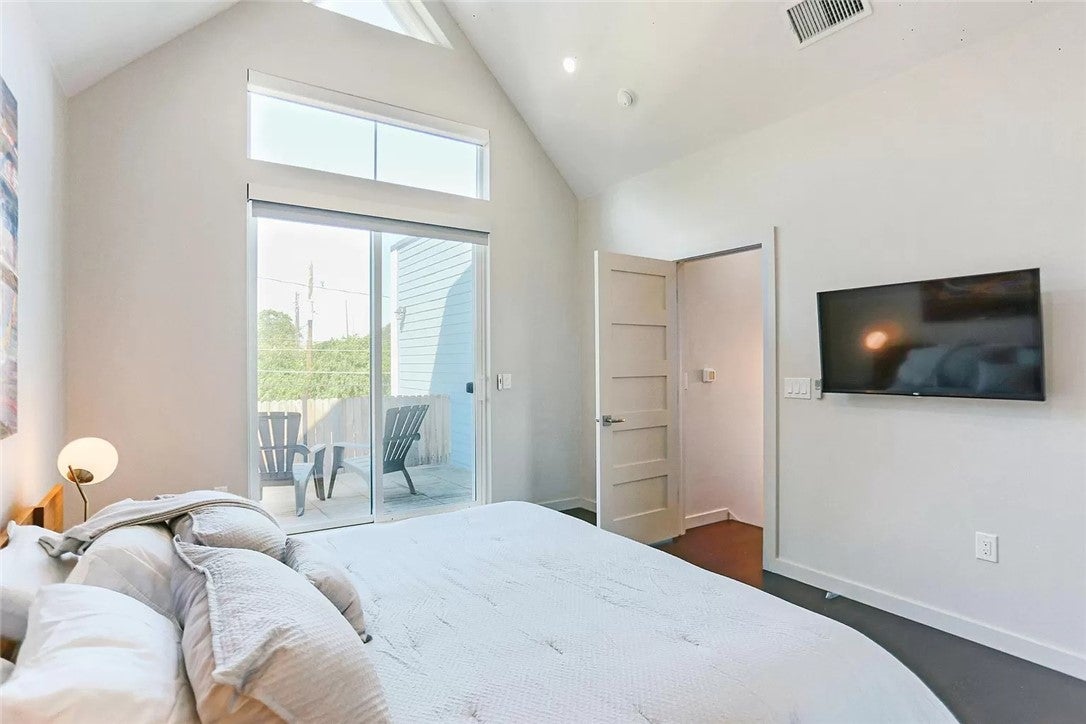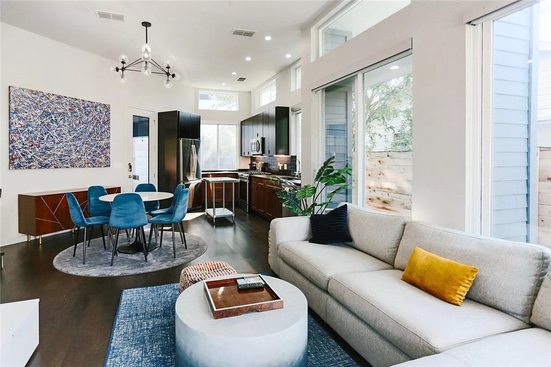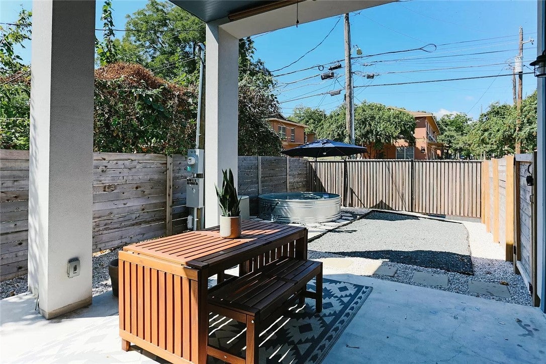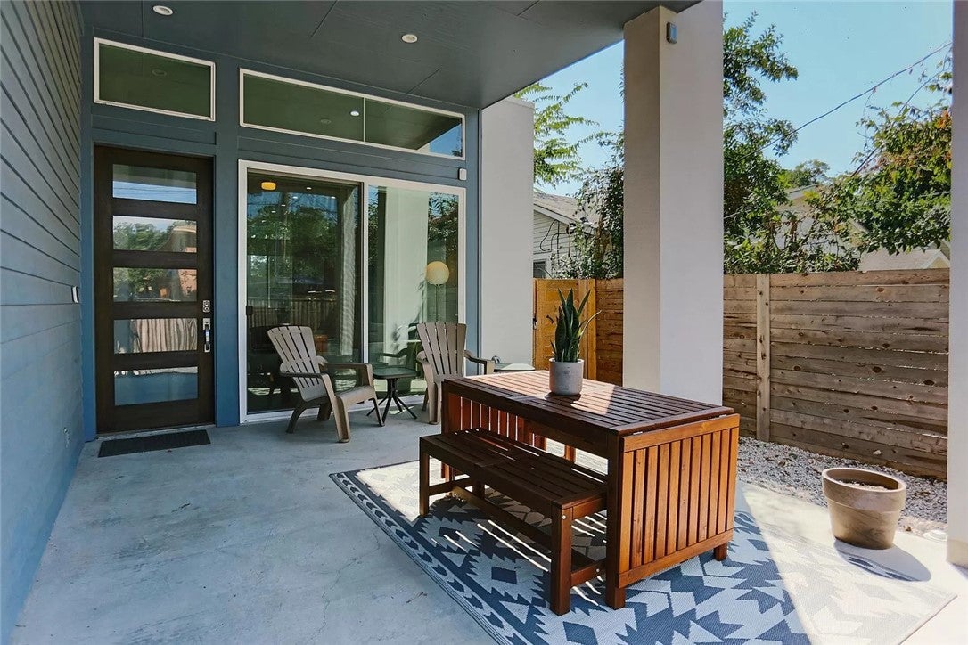 Prime location in East Austin ! This beautiful 2 bedroom / 2.5 bathroom home is less than 1.8 miles to downtown! Offered FULLY FURNISHED. Interior features include 11ft ceilings downstairs, hardwood flooring throughout, tons of natural light, open floor plan & more. Exterior features include front & back covered patios, cowboy pool, 2 rooftop terraces, spiral staircase to 3rd story terrace with downtown views. Low maintenance yard. 1 car garage & 1 car carport. Please note the secondary bedroom will come furnished with a bed. Small pets allowed.