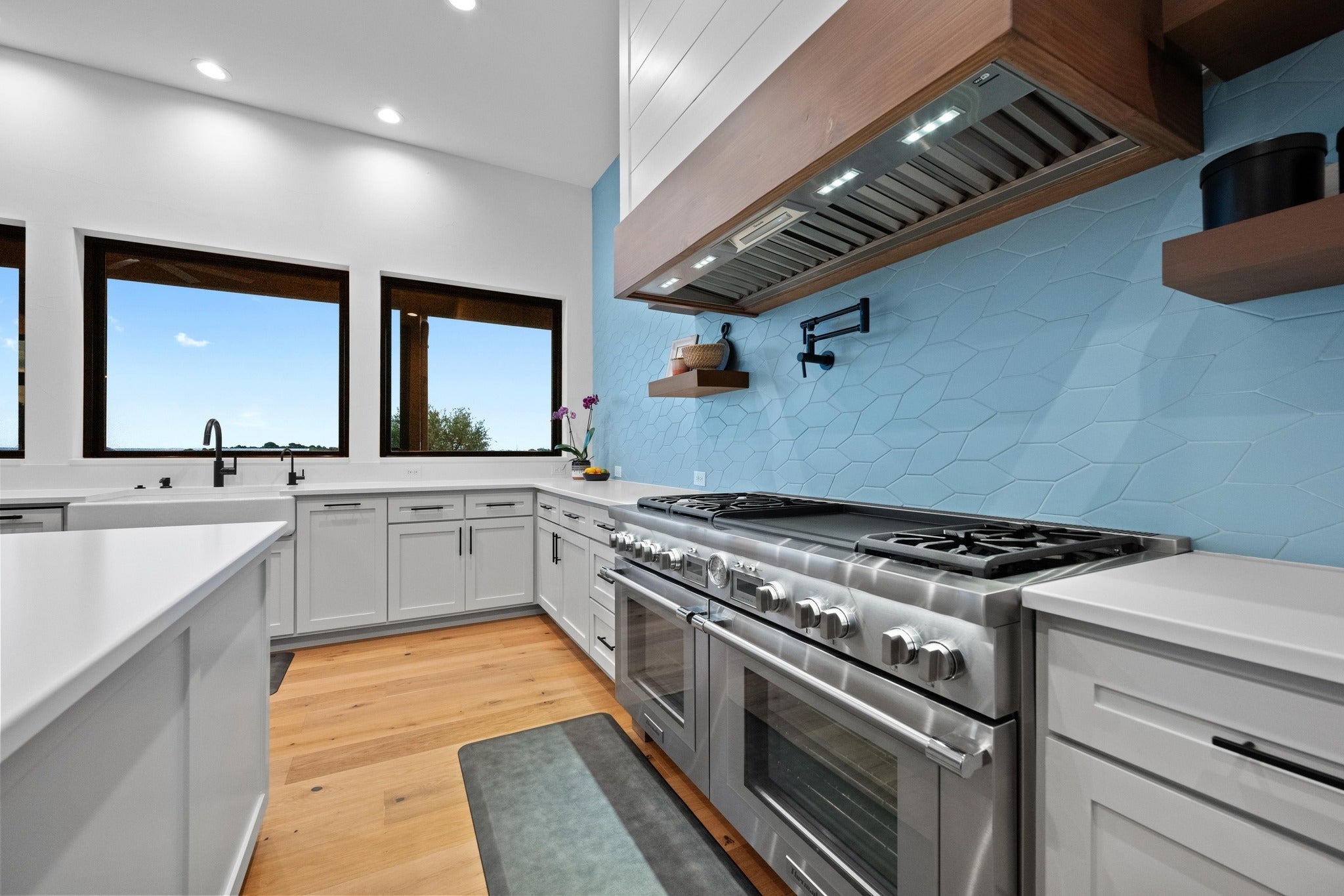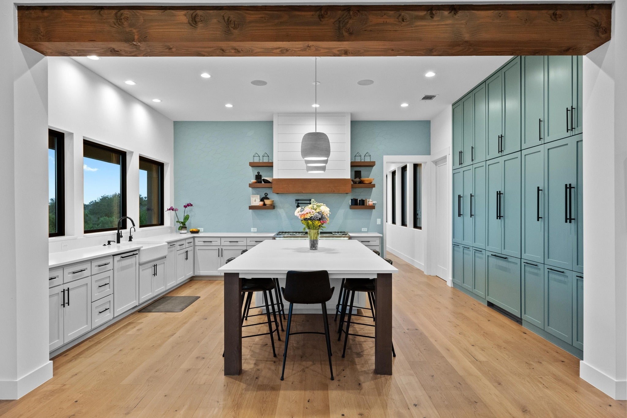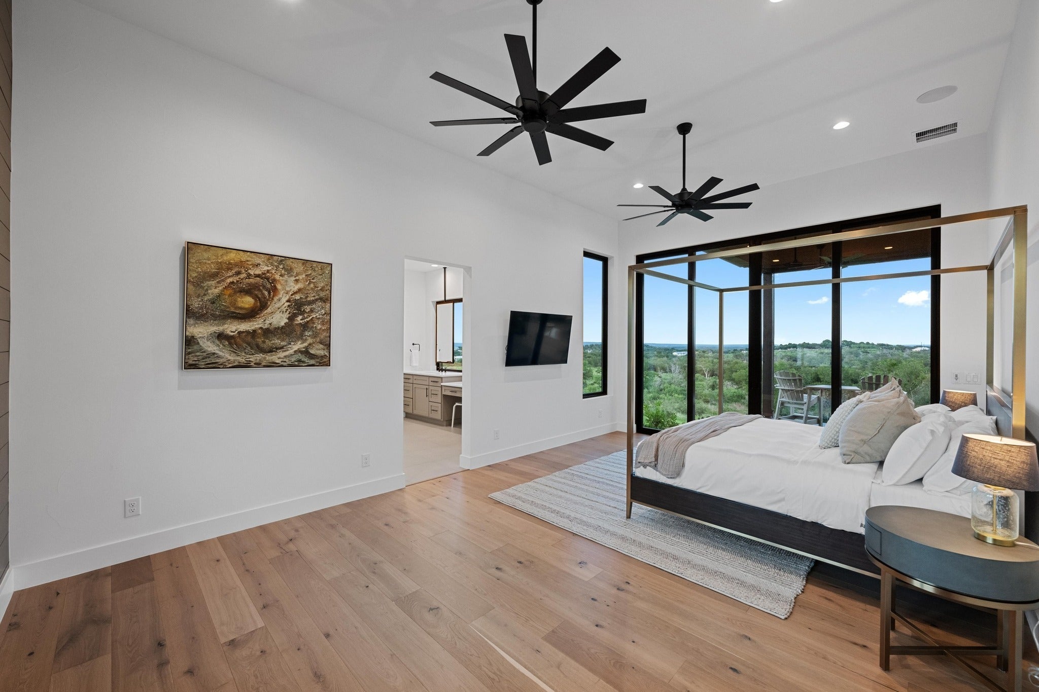 Set on a beautifully landscaped 1.01-acre lot in the exclusive gated community of Trails of Horseshoe Bay, this custom-built home offers sweeping Hill Country and Lake LBJ views with a 165-acre ranch as your backyard neighbor for added privacy. Designed for comfort and entertaining, the open-concept layout features a spacious great room connecting the living, dining, and kitchen areas, all oriented toward the pool and scenic views. The gourmet kitchen includes a Thermador appliance package with 6-burner gas range, paneled refrigerator and dishwasher, drawer microwave, large island, and custom soft-close cabinetry with slide-out storage. White Oak flooring, 10’–14’ ceilings, 8’ doors, and Anderson Low-E SmartSun windows with motorized shades highlight the quality throughout. The primary suite offers a spa-style bath with no-curb walk-in shower, dual vanities, and custom mirrors. Lives as a 2-bedroom home with a dedicated office and spacious upstairs loft, offering flexibility for work, fitness, media, or additional guest space. The main level includes a private study, while upstairs features a guest bedroom and open loft. Outdoor living includes a heated pool, covered patio, and fully equipped outdoor kitchen with panoramic views. Oversized 4-car garage with epoxy floors. Additional features: whole-house water softener, reverse osmosis system, Sonos sound system, and smart wiring. A rare opportunity to own a private, view-oriented property in one of Horseshoe Bay’s most desirable communities. 111 Rock N Robyn Trl is truly a special home in one of Horseshoe Bay’s most desirable neighborhoods and is a must-see!