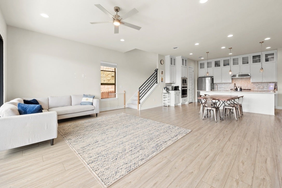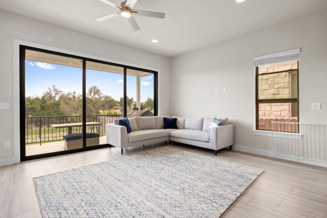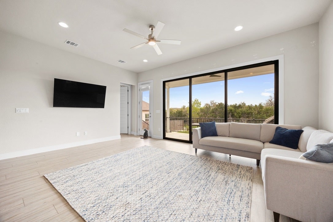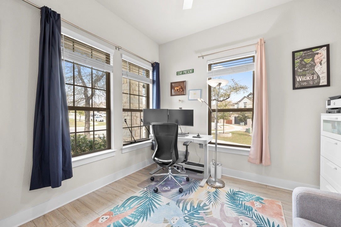Spacious and thoughtfully designed 5-bedroom, 3.5-bath home in the highly sought-after Deerbrook community in Leander. This home offers an ideal layout with the primary suite and a dedicated office conveniently located on the main floor—perfect for both everyday living and working from home. Enjoy an open-concept living, dining, and kitchen space filled with natural light and designed for effortless entertaining. The kitchen flows seamlessly into the main living area, creating a warm and inviting atmosphere. Upstairs, you’ll find additional bedrooms and flexible space to accommodate guests, hobbies, or a media room. Step outside to your private backyard backing to a serene greenbelt—no rear neighbors and peaceful views year-round. The home also includes a refrigerator, washer, and dryer for added convenience (hot tub is not included), plus an EV charger in the garage. Located in Deerbrook, residents enjoy top-tier amenities including a resort-style pool, fitness center, walking trails, playground, dog park, and a community center with regular neighborhood events. Conveniently situated near major roadways, shopping, dining, and top-rated Leander ISD schools, this home offers the perfect balance of comfort, convenience, and community living.