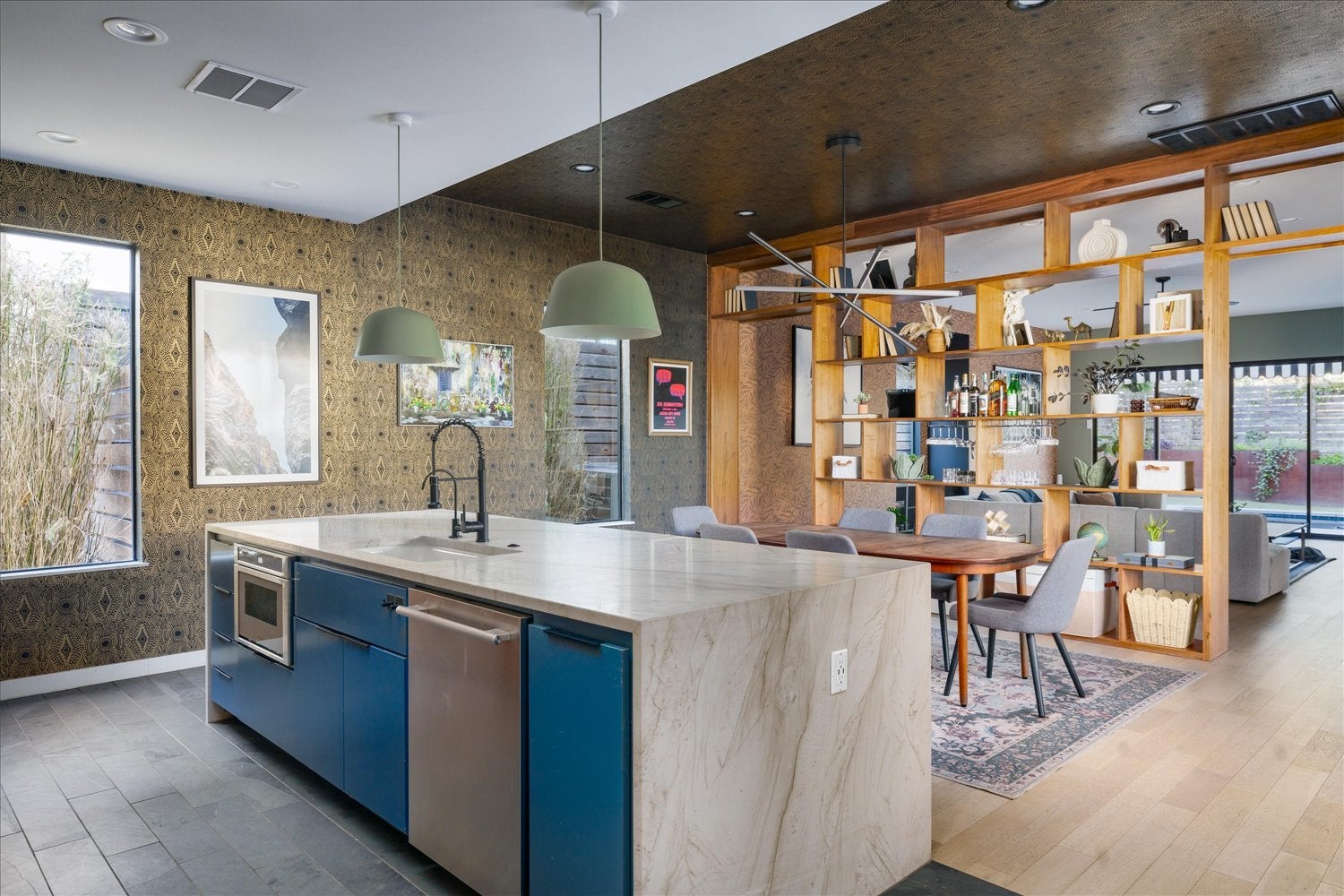 Location, luxury, lifestyle. Welcome to 508 Leland, a stunning residence in coveted Travis Heights, just steps from South Congress buzz and quiet greenbelt trails. Designed by award-winning architect Davey MacEathron, this stylish yet welcoming 4-bed, 3.5-bath, home boasts a chef’s kitchen with full Thermador appliance suite and custom walnut cabinets, expansive living and dining space that opens into a backyard oasis with pool, two gameroom/flex spaces, abundant natural light, gated front yard, an Epoxy-finished garage, and two additional covered, non-tandem parking spaces. Since the home’s original purchase in 2020, it has received ~$100K in custom upgrades, interior design, and landscaping. At the entrance of the home, you are greeted by a gated front yard with mature landscaping. The main floor welcomes you into a spacious living room, dining room, chef’s kitchen with Thermador appliance suite, oversized pantry, powder bathroom, and resort-like backyard with a heated pool, covered patio, outdoor kitchen, and lush landscaping including two mature olive trees. On the second floor, you’ll find the spacious primary bedroom, primary bath with spa-like wet room that includes a Kohler triple showerhead system and freestanding soaking tub, two separate walk-in closets, and a dedicated balcony. The second floor also houses a second bedroom, second full bathroom, spacious laundry room, and a sunny flex space with views of the Travis Heights hills, perfect for a library, workspace, or playspace. The third floor houses the spacious third and fourth bedrooms, a third full bathroom, a second flexspace perfect for a playspace or media room, and a large storage closet. Throughout the home are upgrades like hickory hardwood floors indoors, Brazilian Ipe wood decking outdoors, artisan tile from Clay Imports and Bedrosians, reverse-osmosis filtered water faucets in the kitchen and third floor bath, and pre-wiring for Sonos or similar speakers in the living room and backyard.