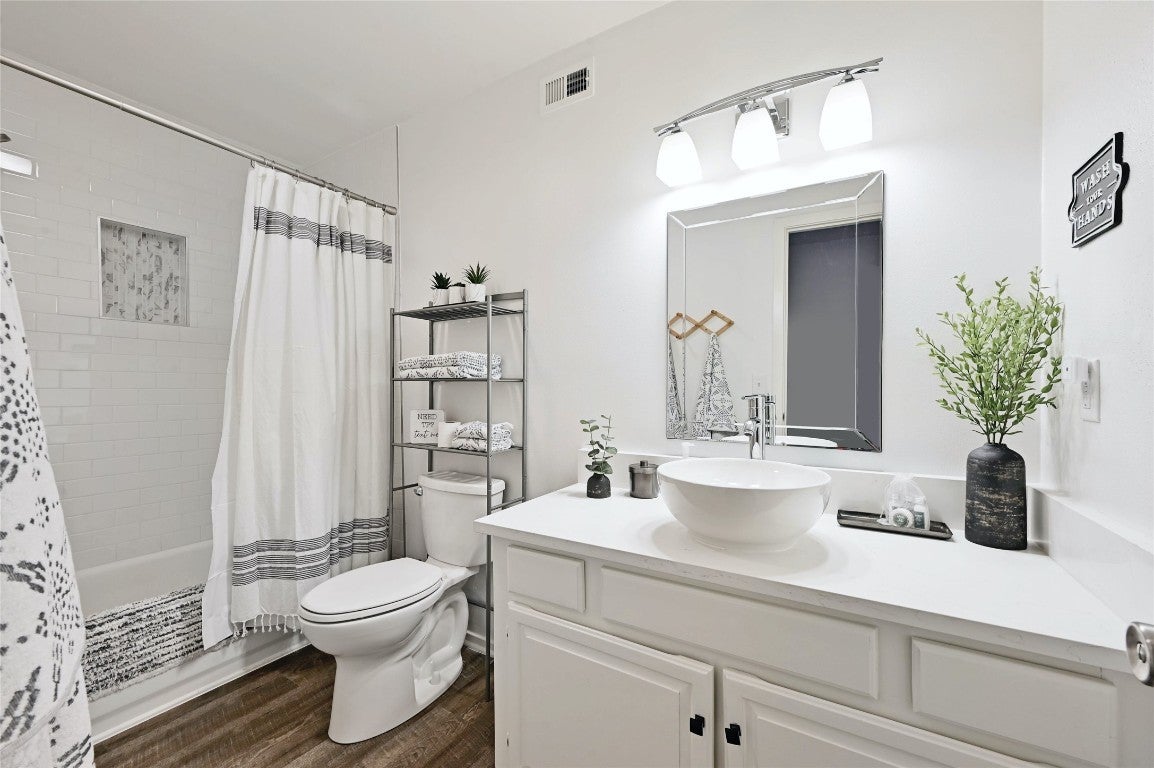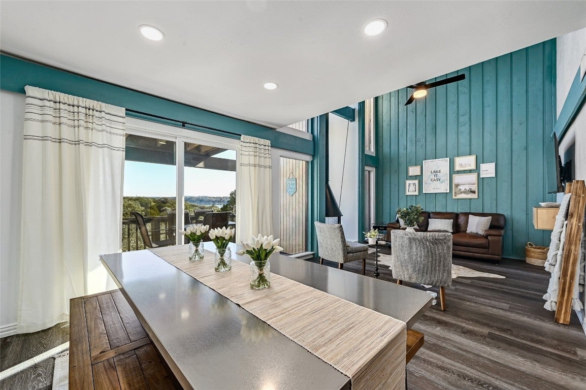 Enjoy the tranquil lifestyle of lakeside living at this beautiful townhome in Point Venture. This recently updated townhome features 3 bedrooms and 3 bathrooms all situated over 3 levels. An expansive wall of windows, soaring ceilings and a phenomenal wood burning stove create a warm and relaxed vibe in the beautiful living room. Whip up your favorite dishes in the updated kitchen that includes granite countertops, painted cabinets and white appliances. The main floor owner's suite is a relaxing retreat after a day of boating, fishing and swimming and boasts an ensuite bath and private patio. Head up the modern stairs to the secondary bedrooms. The alfresco patio is ideally positioned to take in the balmy tranquility of the lake and provides plenty of space for lounging, dining and enjoying great conversations. Walk to the tennis courts and swimming pool or get a quick 18 in with the Point Venture golf course right down the street. The ideal lifestyle awaits you; don't miss your opportunity to lease this incredible townhome!
