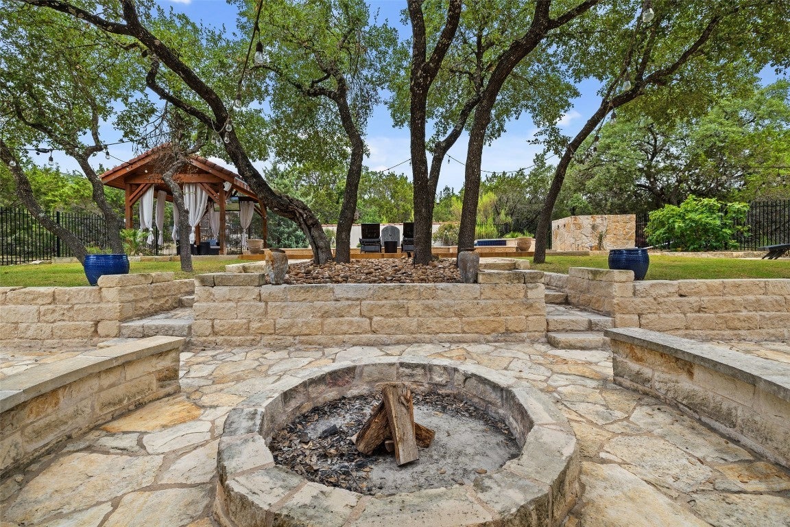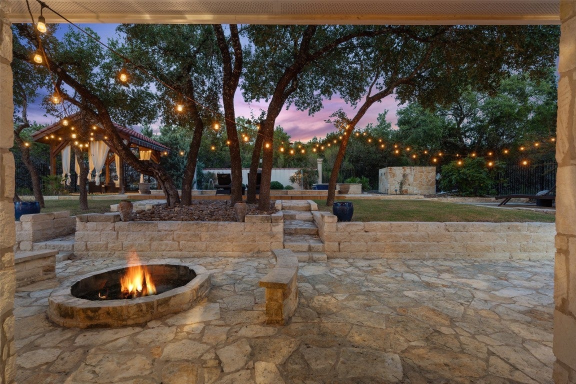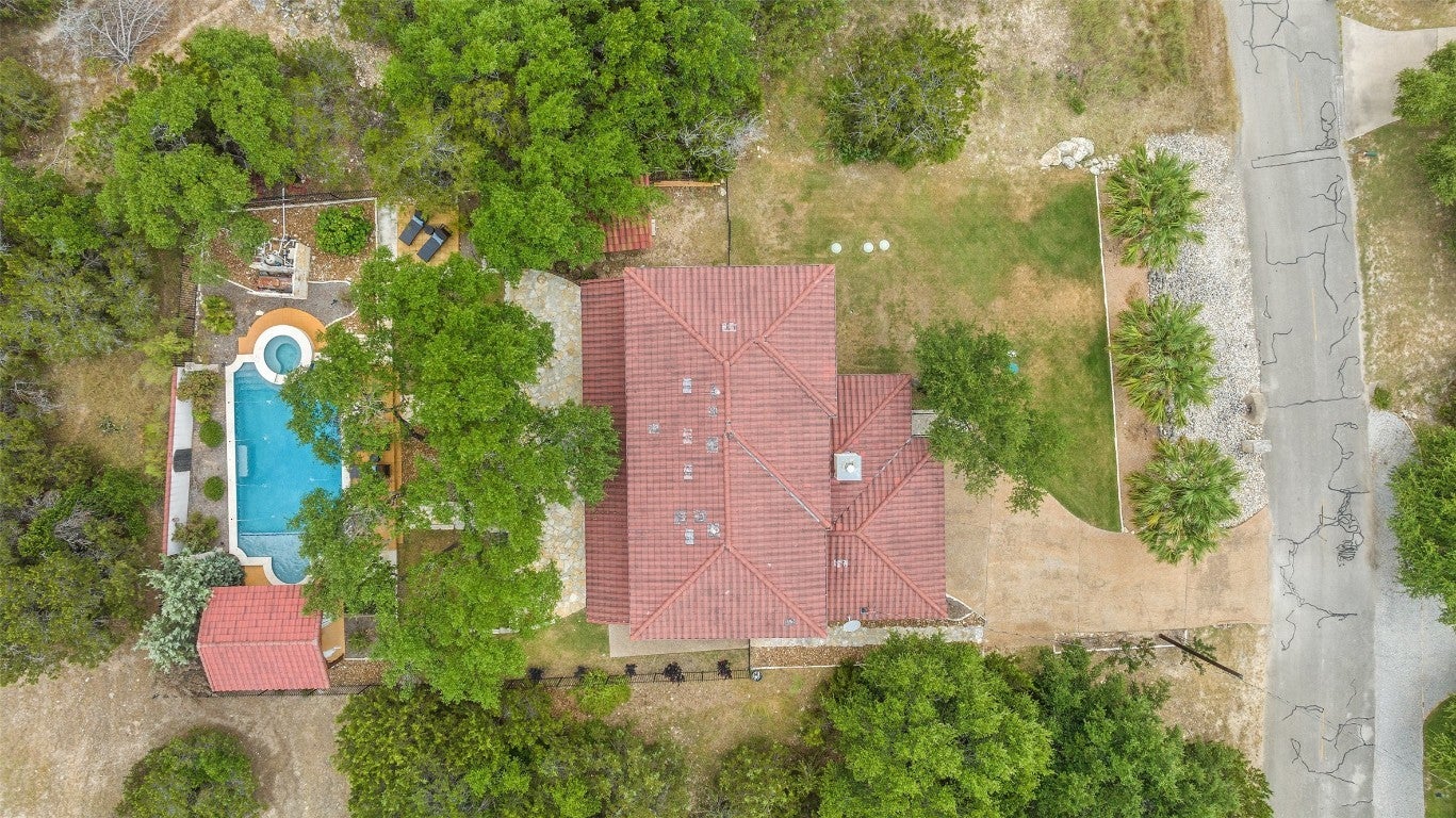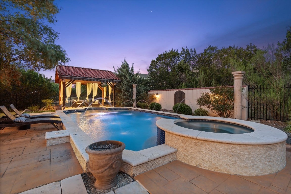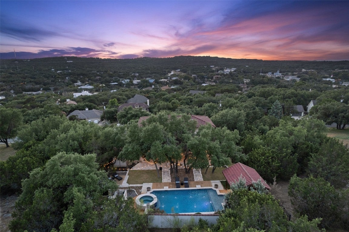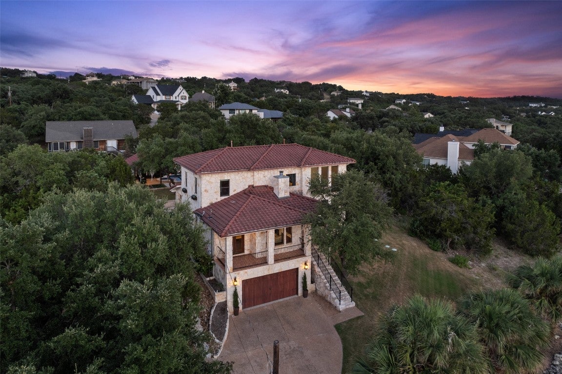Exquisite Spanish style residence with private saltwater pool nestled within the highly desirable Village of Briarcliff and within the acclaimed Lake Travis School District. Embrace the timeless appeal of a Spanish tile roof and Mediterranean-inspired aesthetics that define this distinctive home. Boasting 3 bedrooms, an office, 3 baths, and an expansive theater room which could be reimagined into any flexible space. This residence offers ample space for comfortable living and entertaining. Enjoy your morning coffee or evening beverage of choice on the front balcony looking out towards the Hill Country, and experience resort-style living with a saltwater pool spa combo, ideal for refreshing swims and leisurely afternoons under the Texas sun. This backyard oasis will not disappoint and features a pergola lounge area, wood burning fire pit, beautifully lit oak trees, and tiered entertaining areas. Offering proximity to lake access, recreational activities, and a thriving community atmosphere, Briarcliff provides a serene escape while maintaining convenient access to near by Bee Cave, Lakeway, and Austin with its vibrant culture. Don't miss the opportunity to make this exceptional property your new home. Schedule a private tour today. Adjacent lot is also available to purchase for additional price.
