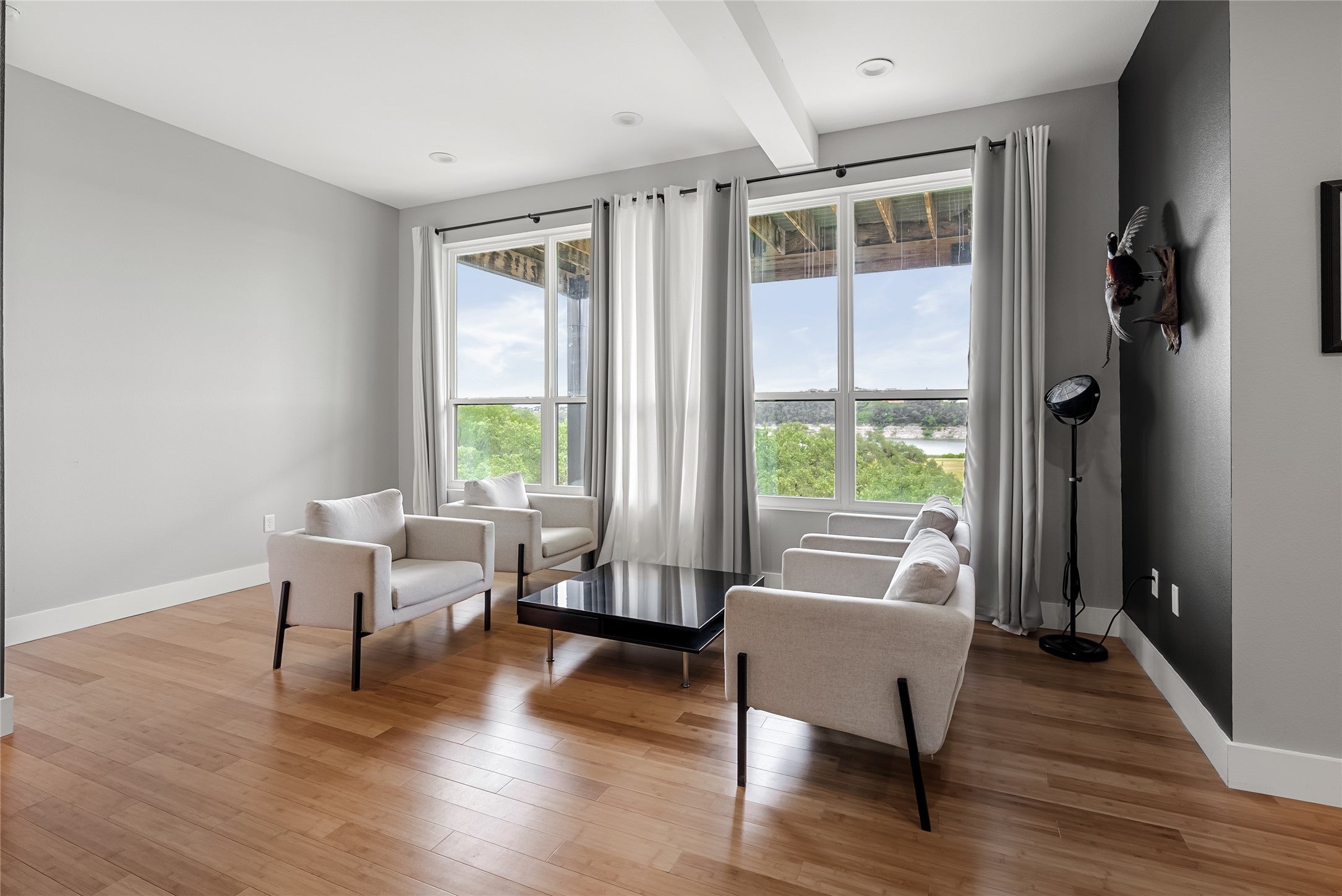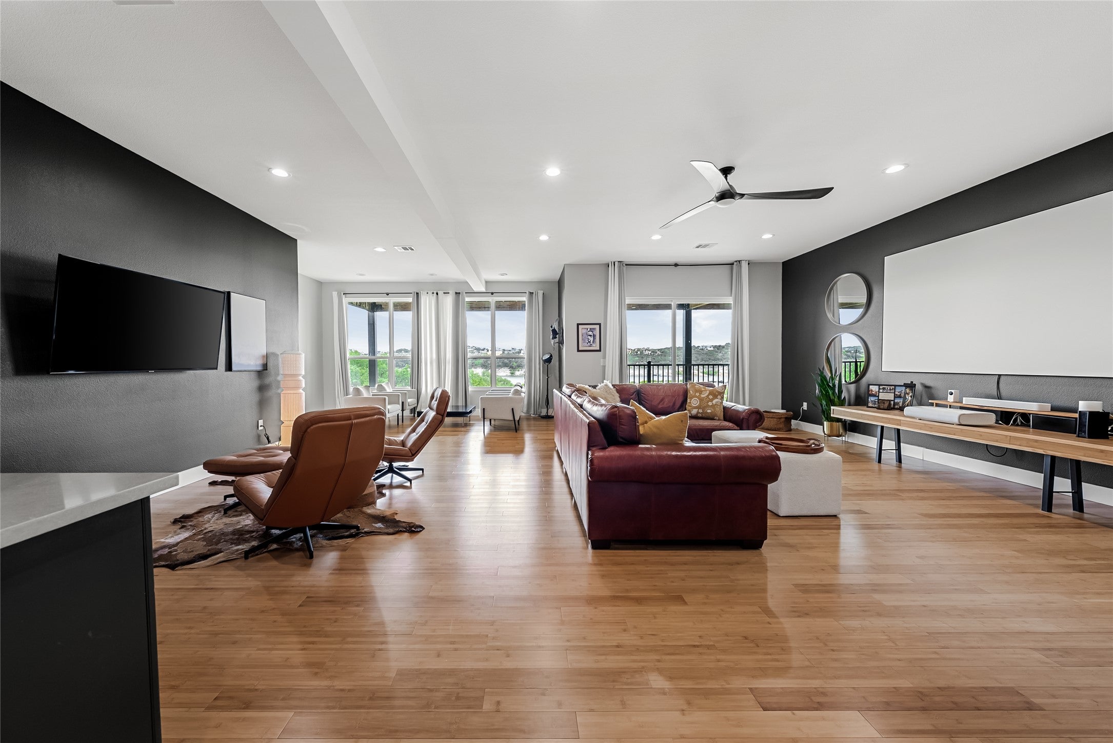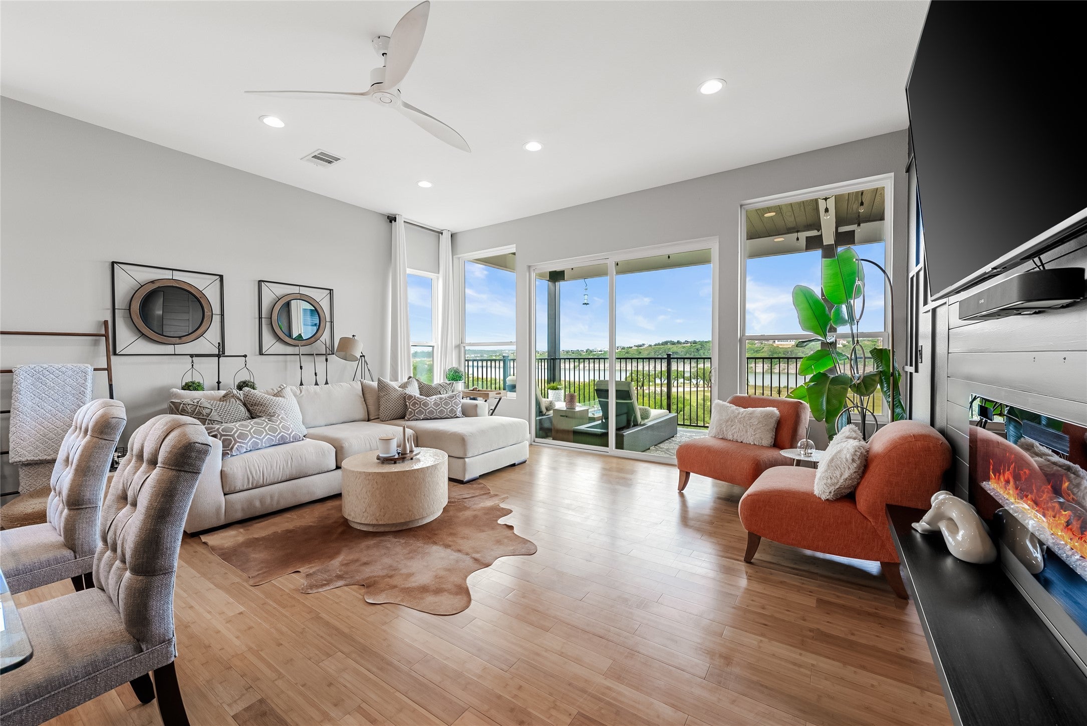 STR-Permitted Waterfront Retreat | Elevator, Lake Views & Fully Furnished! Set above the shimmering waters of Lake Travis in desirable Lago Vista, this modern 3-story condo offers bold architecture, serene views, and the ease of elevated lakefront living. Featuring 5 spacious bedrooms, 4 full baths, a private study, and an open-concept layout designed for entertaining; every detail is thoughtfully curated. The sleek kitchen showcases quartz counters, matte black cabinetry, and upscale appliances, while a private elevator provides effortless access across all levels. The top-floor living area captures panoramic lake vistas—perfect for relaxation or entertaining. A rare blend of style, comfort, and scenery—this is lake living refined.