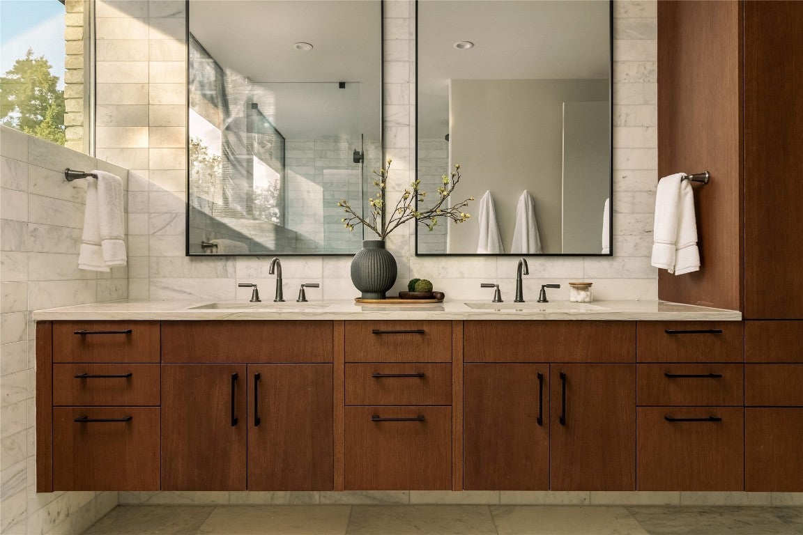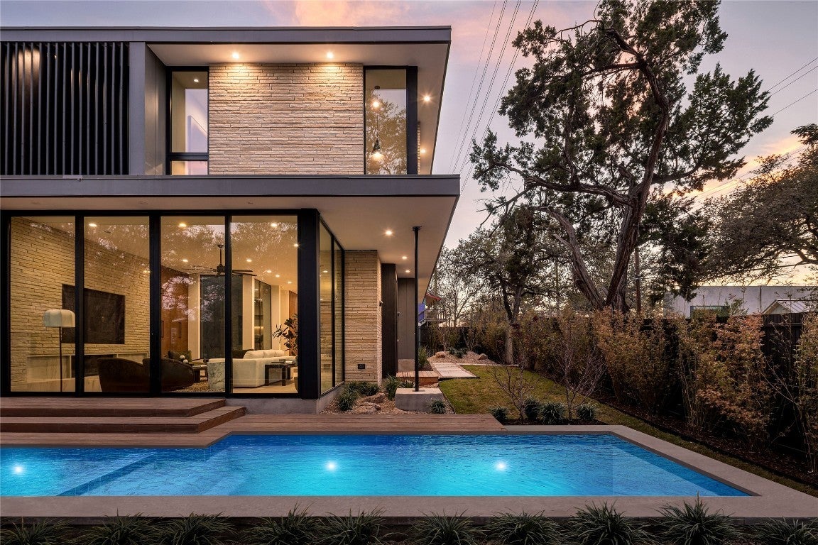 915 Columbus is a design-forward new build set on a corner lot in the heart of Bouldin. Intimate by design, this home places emphasis on architecture, materiality, and mood—where every square foot is considered and nothing is overdone. The exterior blends stone and cedar with crisp, modern lines, creating a quiet confidence from the street. Inside, floor-to-ceiling windows draw in natural light while maintaining a darker, more refined palette. The layout is efficient and open, with living and dining spaces flowing seamlessly into a sculptural kitchen featuring custom cabinetry, premium appliances, and a waterfall island that anchors the home without dominating it. A dedicated office offers a calm, focused workspace. The primary suite is a true retreat—minimal, serene, and intentionally designed—with a spa-like bath that reinforces the home’s relaxed, modern feel. Out back, the energy shifts. The yard is intentionally quiet and zen, anchored by a sleek pool, modern hardscaping, and native landscaping that feels more resort than residence. It’s a private moment—designed for slowing down, not filling up. Above it all, the third-story rooftop deck opens to city views and soft evening light, extending the living experience upward and outward. Just down the street, Terry Black’s BBQ is an easy walk. Auditorium Shores, the Long Center, and Zilker Park sit nearby, while Downtown Austin and the energy of South Lamar and South Congress are moments away—placing the home squarely in the middle of Austin’s most iconic lifestyle corridors without sacrificing a sense of calm. Designed and built by award-winning Joseph Design Build, 915 Columbus delivers architectural integrity, intentional scale, and a distinctly modern point of view. A home defined by design.