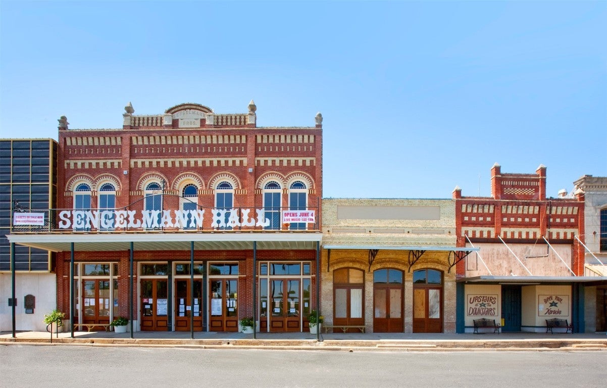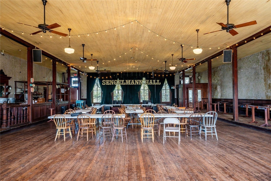 Welcome to Sengelmann Hall, an iconic property featured on the National Register of Historic Places, along with culturally important dancehalls like Gruene Hall & Luckenbach. Located in the heart of Schulenburg, Texas, this exceptional building, dating back to 1894, offers a rare opportunity to own a piece of Texas history. Originally established as a social hall & beer garden, Sengelmann Hall has been meticulously maintained & restored, showcasing its original charm & character. 4,000 SF dance floor & Victorian interiors are original. This historically preserved Texas dance hall, featured in Texas Monthly, boasts over 10,000 square feet of versatile space w/endless potential for a variety of commercial uses. The two-story building features a spacious main hall w/soaring ceilings, a spacious 2nd floor balcony, full-service commercial kitchen, stage for live performances, charming beer garden, several private dining & event spaces. Live bands such as Asleep at the Wheel, James Hand, Ray Wylie Hubbard, Chrystal Gayle, and Billy Joe Shaver to name a few performed at the hall. The professional sound system is a game changer in addition to the 2 stages & maximum occupancy of 400 in the upstairs hall. The property's prime location on Main Street provides excellent visibility & easy access for patrons, making it an ideal setting for a restaurant, brewery, or event venue. Originally the 4 Main Street storefronts were a barber shop, a Saloon & restaurant, café & meat market. The surrounding area is known for its rich cultural heritage, attracting visitors from near & far, & the property is within close proximity to popular local attractions, shops & amenities. Whether you're looking to embark on a new business venture or expand an existing one, Sengelmann Hall offers a one-of-a-kind opportunity to own a piece of Texas history while making a lasting impact on the vibrant community of Schulenburg.