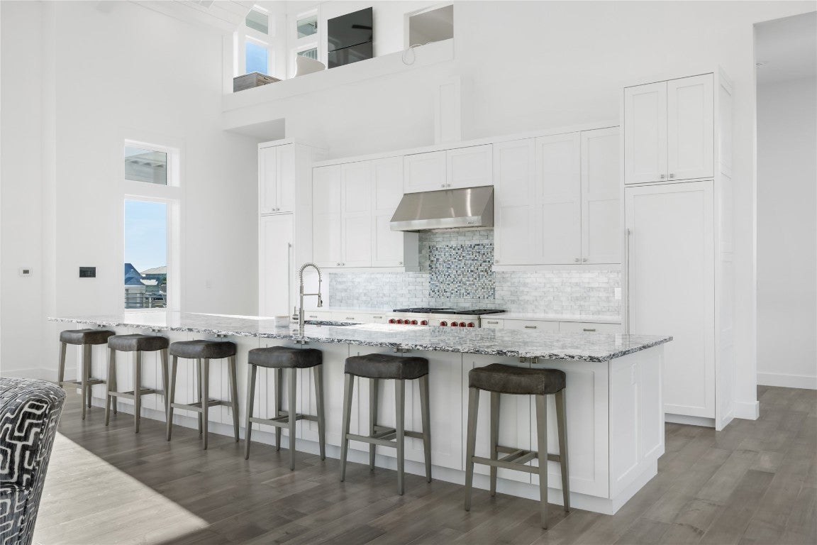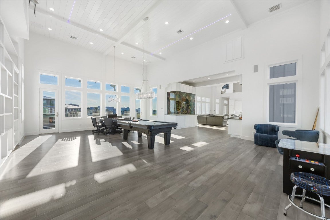 The Last Resort is a landmark waterfront estate offering an unparalleled luxury lifestyle on the Texas Coastal Bend. Spanning two waterfront lots with approximately 180 feet of coastline, this brand-new construction is positioned directly on the bay in Rockport, Texas. Crowning the home is a fourth-level observation deck—the highest vantage point in Rockport—providing uninterrupted 360-degree views of the town, bay, and coastline. A dramatic drive-up leads to a striking two-story glass foyer, immediately framing expansive water views. The main living areas feature a vaulted, beamed two-story living room with walls of windows, filling the home with light and coastal scenery. The kitchen and living space flow seamlessly together, anchored by a substantial island, Wolf range, and a fully equipped catering kitchen designed for large-scale entertaining. A custom 1,000-gallon aquarium serves as a unique architectural focal point. Offering approximately 8,000 square feet of interior living space, the home includes a luxurious primary suite with spa-like bath and private deck with sweeping views, two guest suites, two bunk rooms, and a separate guest casita. Oversized bathrooms throughout feature multiple sinks and generous counter space for everyday comfort. Designed for life on the water, the property includes a climate-controlled tackle and fishing room with a 500-pound ice maker and a $250,000 custom dock with two boat lifts and Azek decking. Four garages provide ample storage for vehicles, watercraft, and equipment. Outdoor living spans over 4,000 square feet and includes a heated pool and spa, multiple fire features, and a fully equipped outdoor kitchen. Crestron whole-home automation is integrated throughout. Offered fully furnished and turnkey, including all furniture, artwork, and appliances. Located within the Islands of Rockport, a private waterfront community with resort-style amenities.