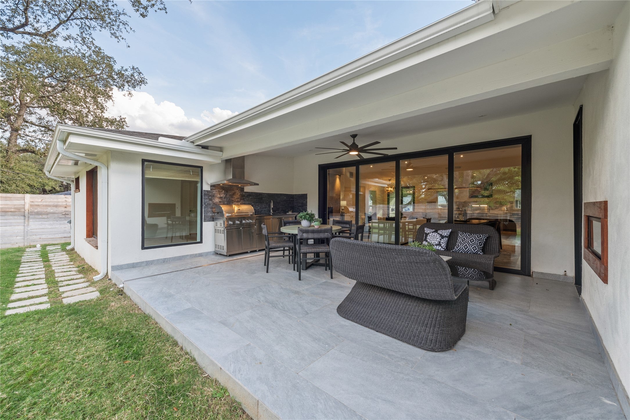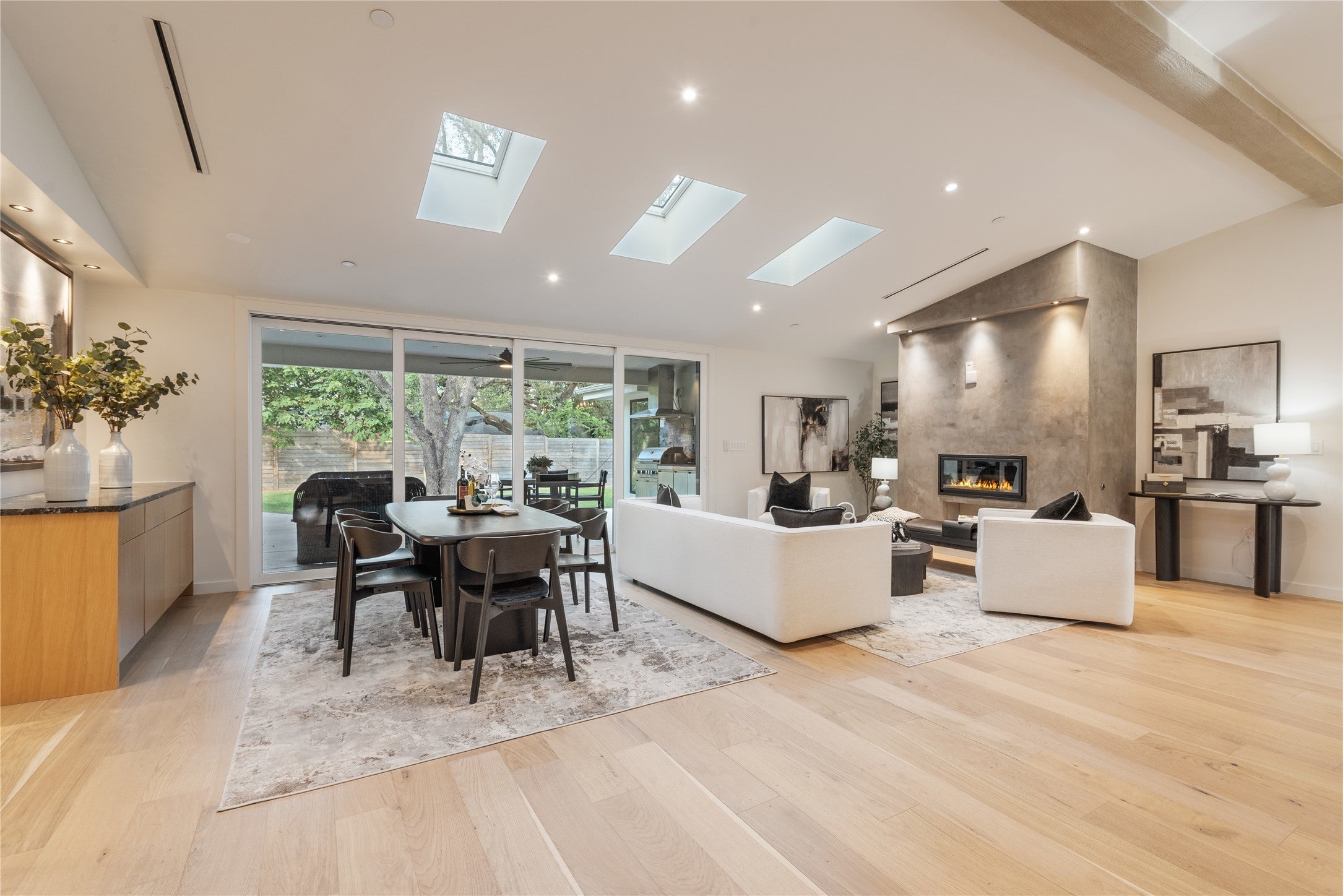 4000 Greystone sparkles and shines brightly after a thoughtful, thorough renovation. From the heated swimming pool with sitting shelf to the covered outdoor patio with kitchenette and fireplace, this 5 bedroom residence displays quality inside and out. Open concept kitchen and living with oversized kitchen island, Gaggenau appliances, double dishwashers and 6’ beverage fridge create an entertainer’s dream. Three bedrooms downstairs + an office make for almost 1-level living. Spa primary bath has s steam shower, heated floors & towel rack, & direct access to the pool out back.