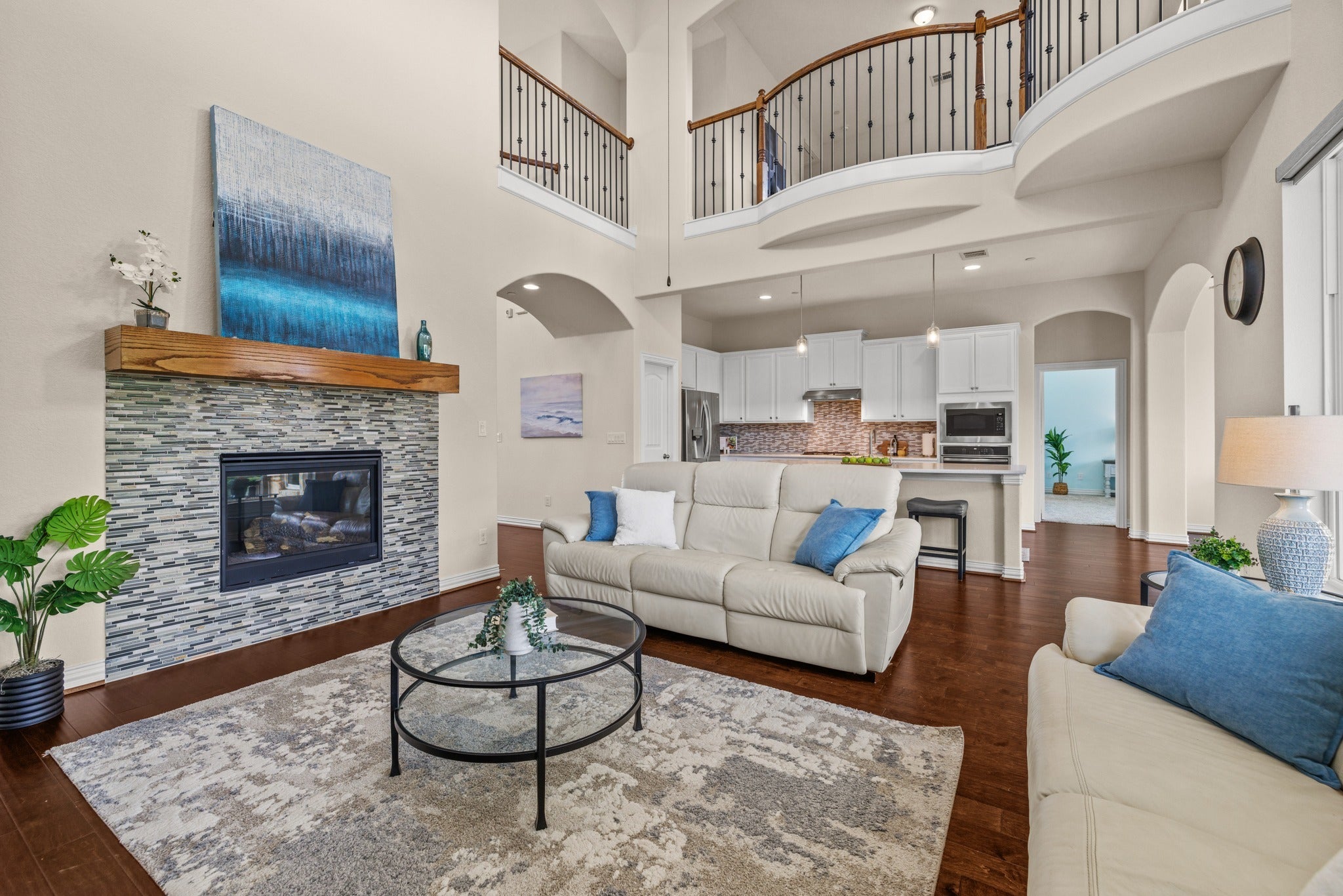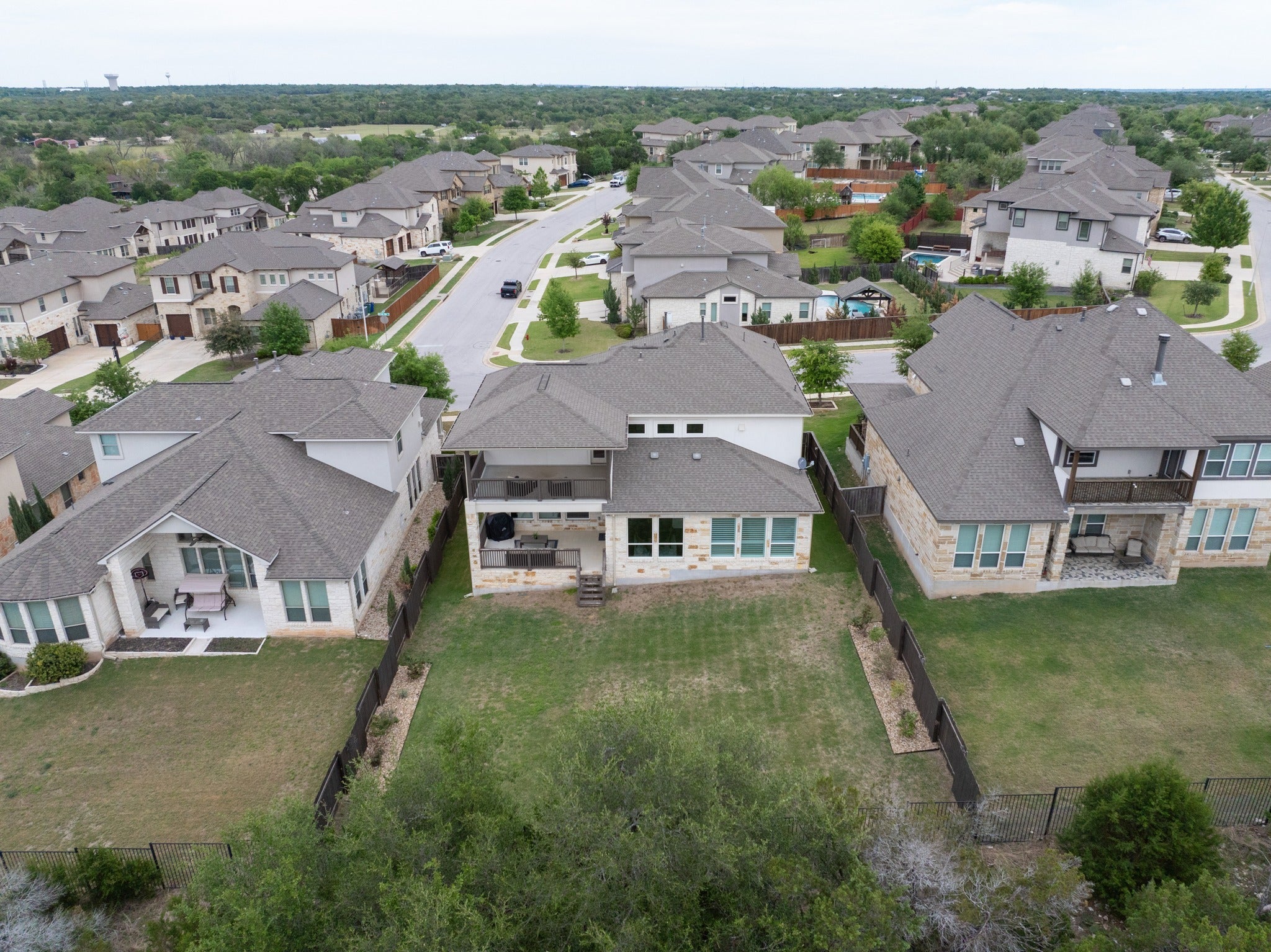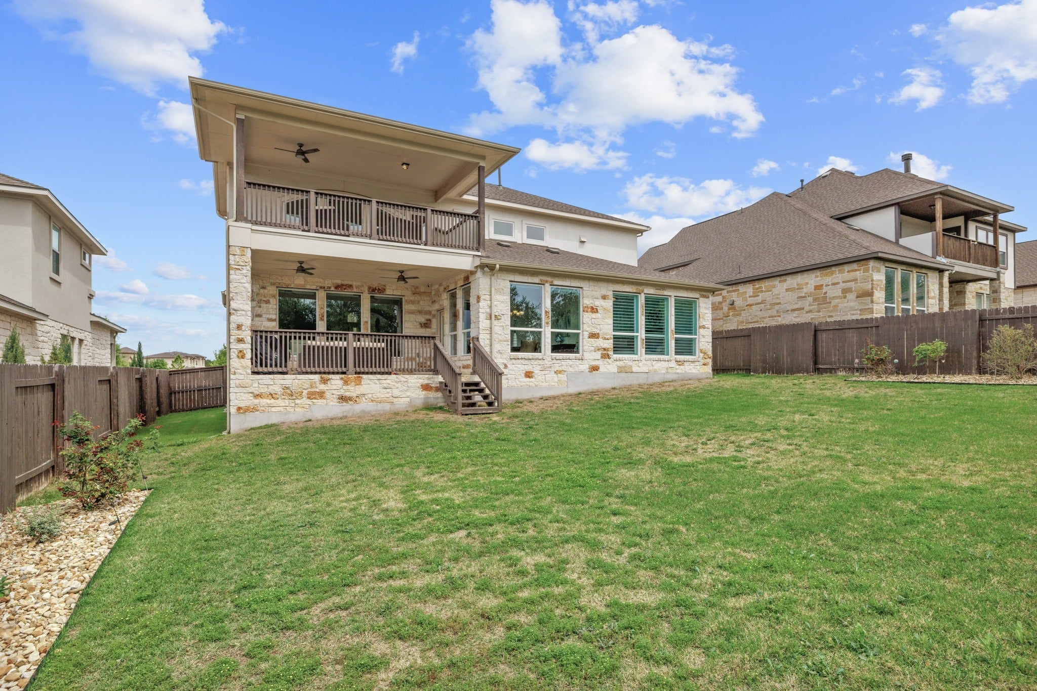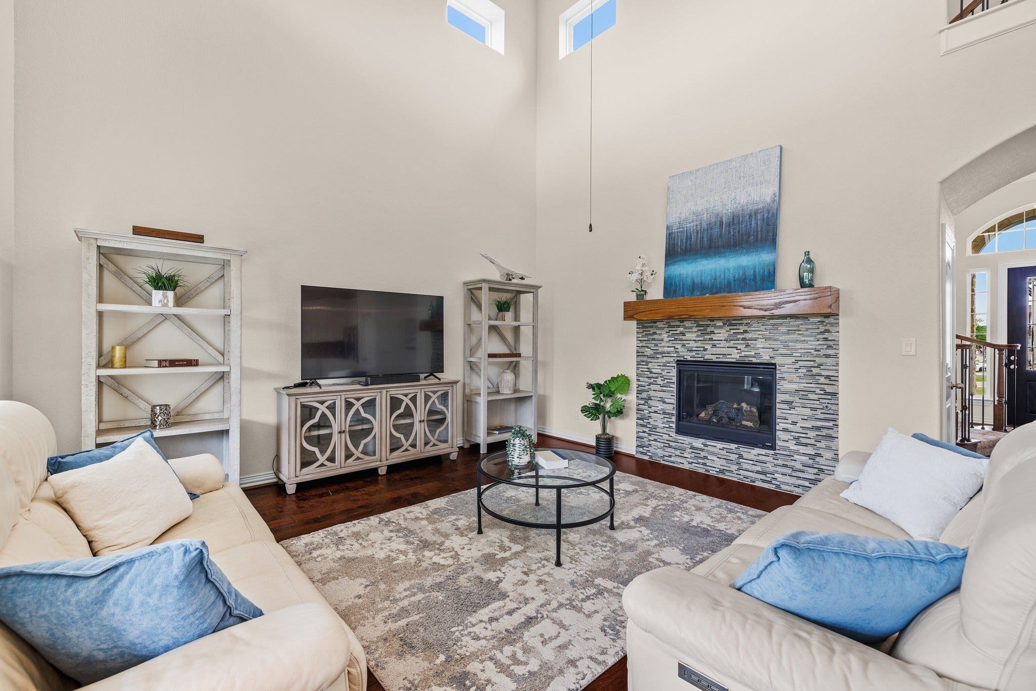 Nestled on a premium lot backing to a serene greenbelt, this stunning two-story home offers the perfect blend of space, privacy, and modern design. Built in 2018, this 4-bedroom, 3 full bath, 1 half bath residence spans 3,116 square feet and is thoughtfully designed for both everyday living and entertaining. The striking stone exterior and inviting entry set the tone as you step inside to discover an open and functional layout with two spacious living areas. The main level features a bright and airy living room that flows seamlessly into the kitchen and dining spaces, creating an ideal environment for gatherings. The well-appointed kitchen offers ample cabinetry, generous counter space, and a layout that opens beautifully to the main living area. The primary suite is conveniently located on the main floor, providing a private retreat with a spacious ensuite bath. Upstairs, you’ll find a second living area perfect for a game room, media space, or flex area, along with additional bedrooms and bathrooms that offer comfort and versatility for family or guests. Step outside to enjoy the peaceful backyard setting with no rear neighbors—just expansive greenbelt views that provide both privacy and a natural backdrop. With its modern construction, functional floor plan, and desirable setting, this home checks all the boxes for comfortable, stylish living.