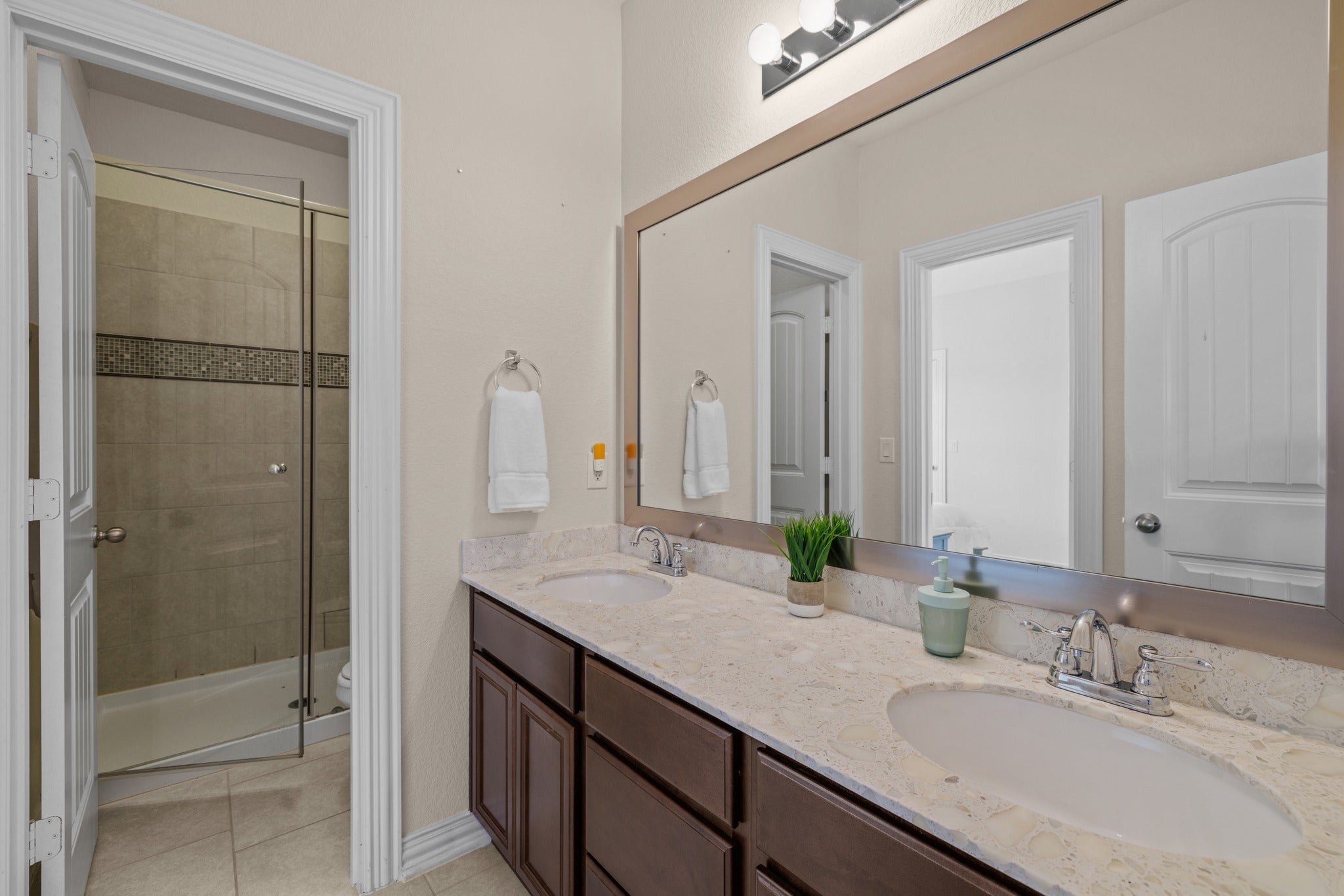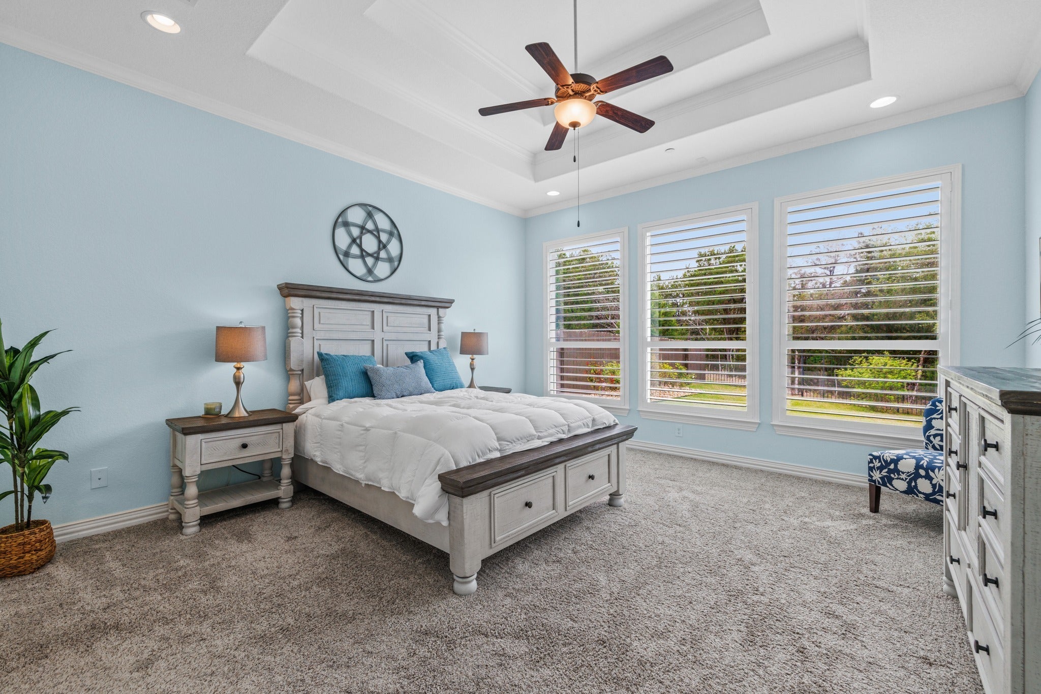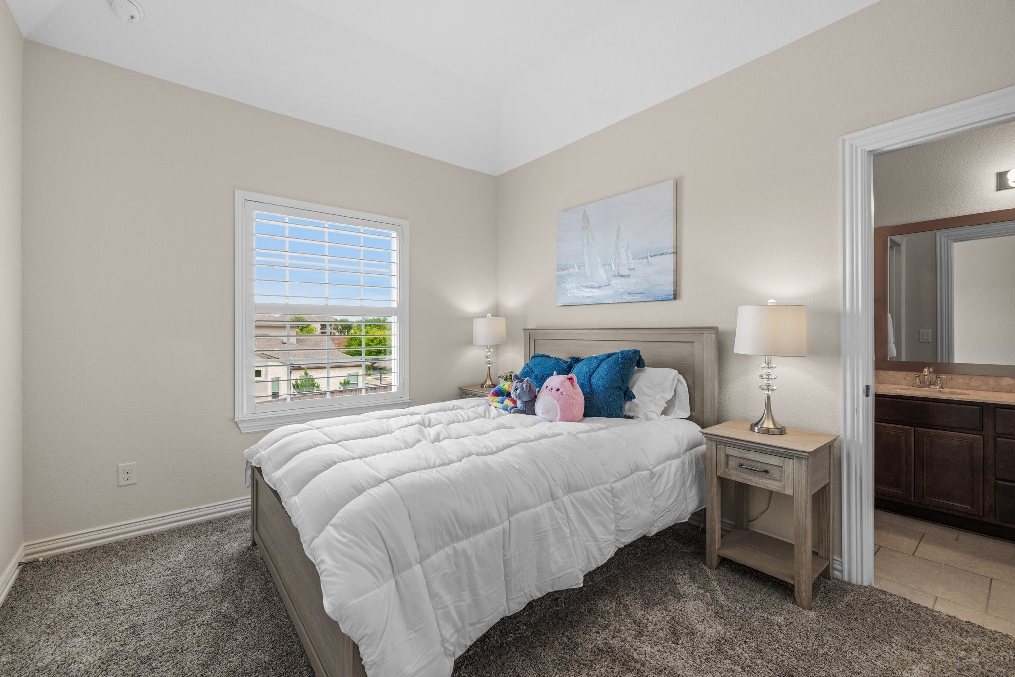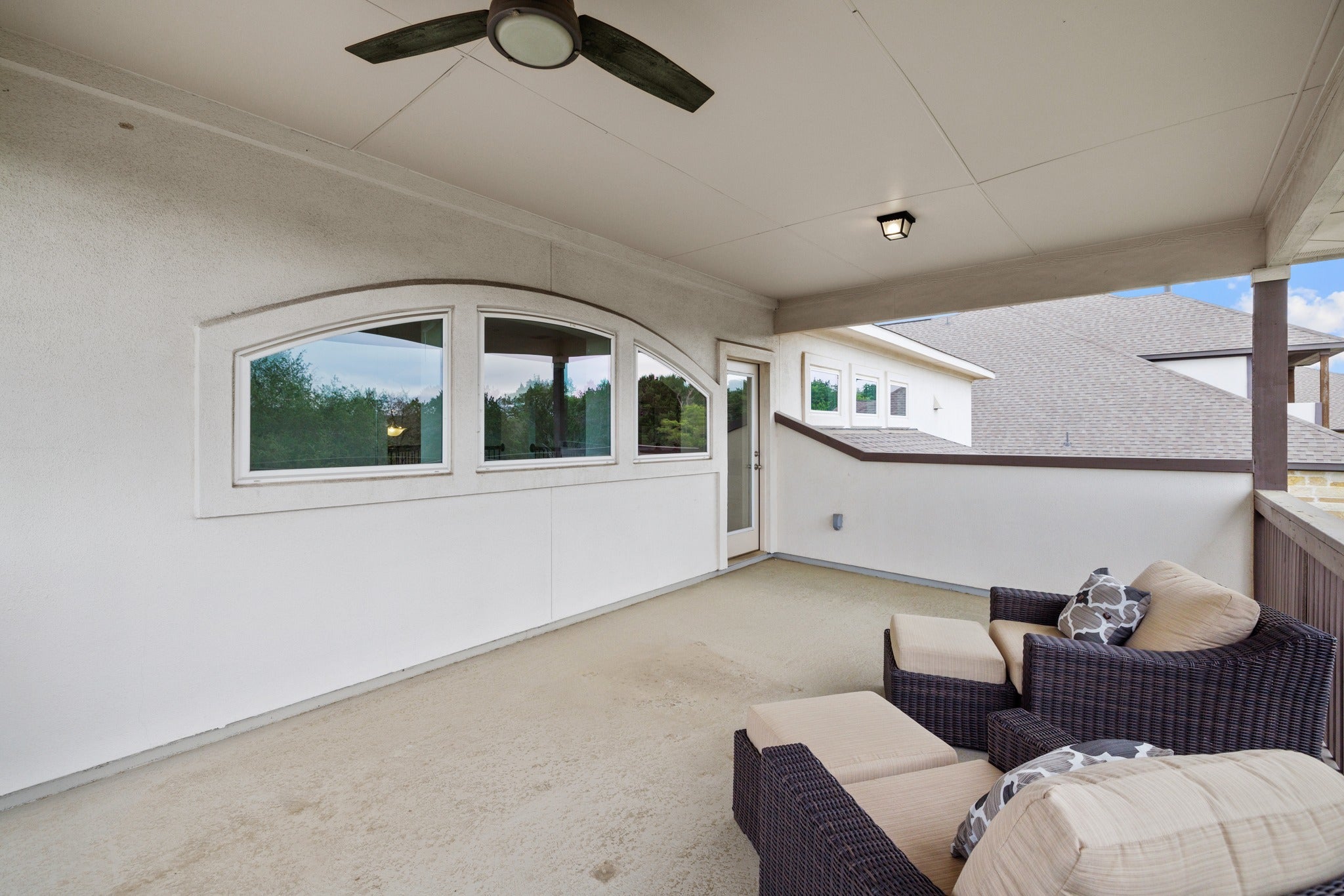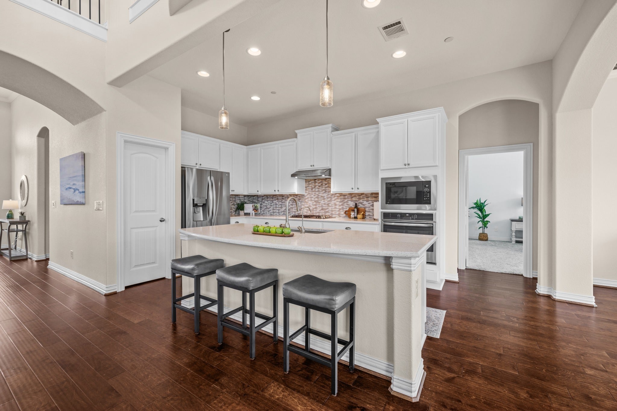 Nestled on a premium lot backing to a serene greenbelt, this stunning two-story home offers the perfect blend of space, privacy, and modern design. Built in 2018, this 4-bedroom, 3 full bath, 1 half bath residence spans 3,116 square feet and is thoughtfully designed for both everyday living and entertaining. The striking stone exterior and inviting entry set the tone as you step inside to discover an open and functional layout with two spacious living areas. The main level features a bright and airy living room that flows seamlessly into the kitchen and dining spaces, creating an ideal environment for gatherings. The well-appointed kitchen offers ample cabinetry, generous counter space, and a layout that opens beautifully to the main living area. The primary suite is conveniently located on the main floor, providing a private retreat with a spacious ensuite bath. Upstairs, you’ll find a second living area perfect for a game room, media space, or flex area, along with additional bedrooms and bathrooms that offer comfort and versatility for family or guests. Step outside to enjoy the peaceful backyard setting with no rear neighbors—just expansive greenbelt views that provide both privacy and a natural backdrop. With its modern construction, functional floor plan, and desirable setting, this home checks all the boxes for comfortable, stylish living.