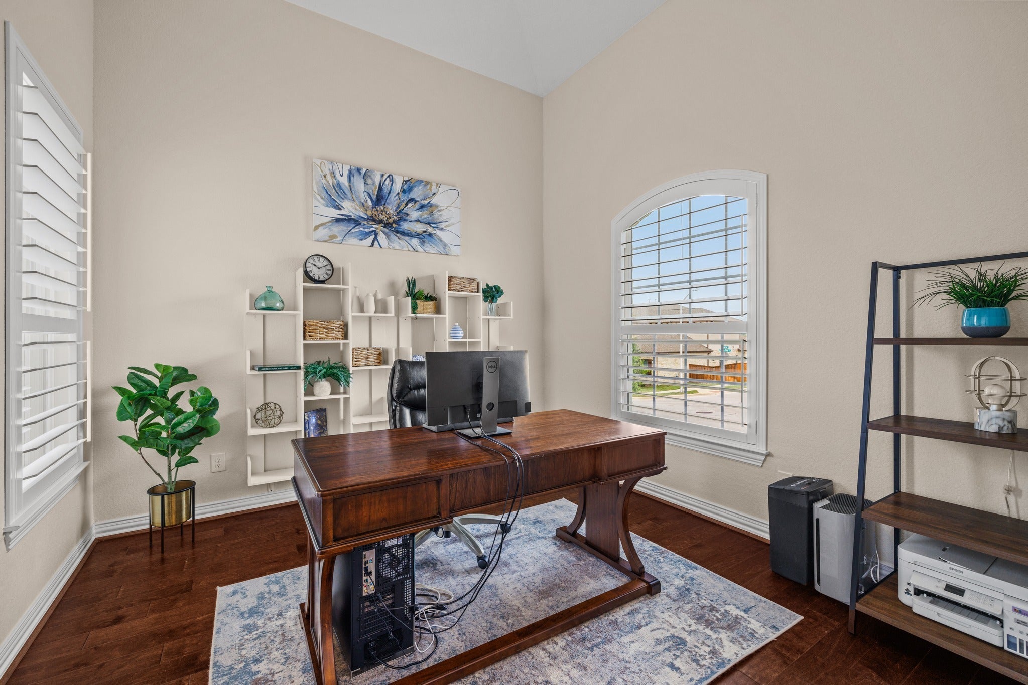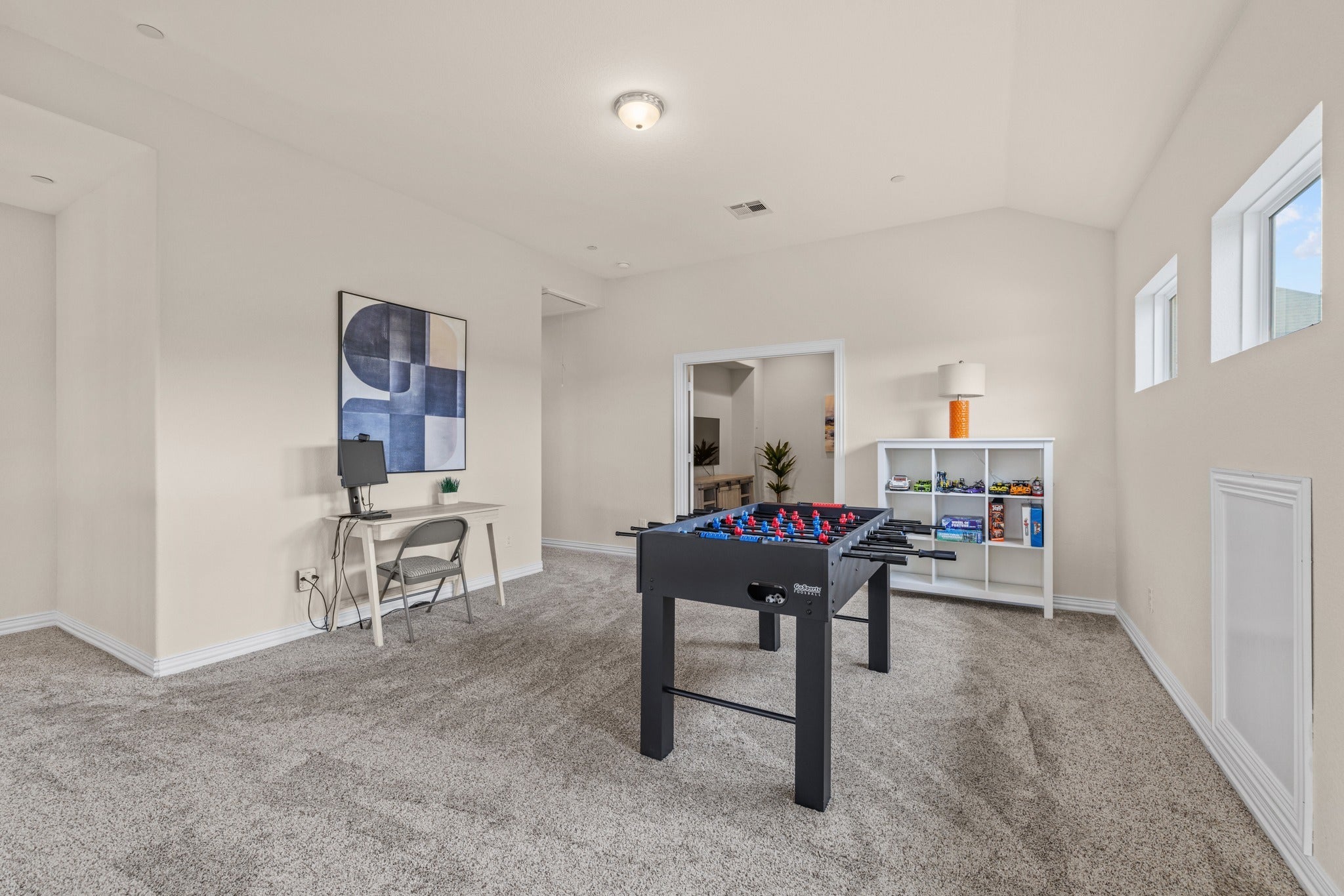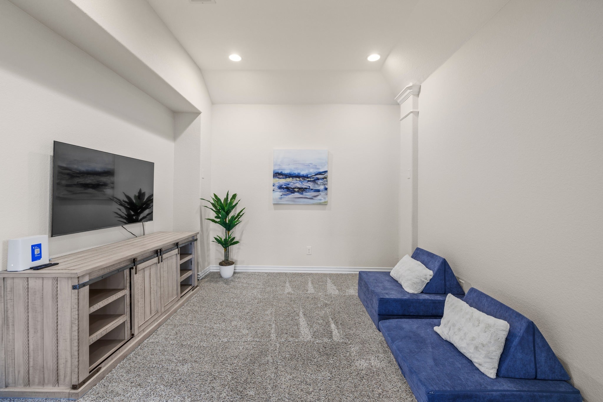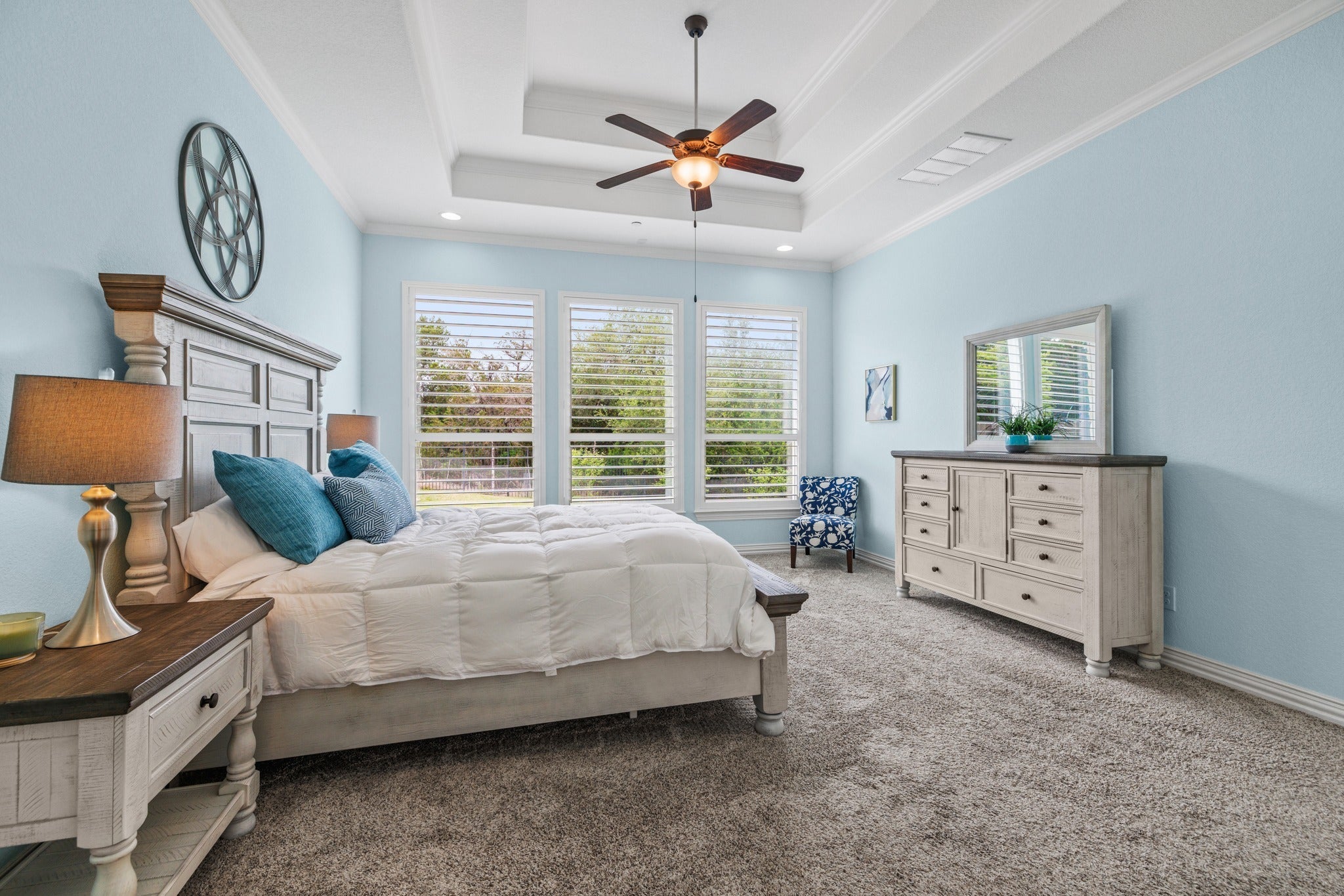 Nestled on a premium lot backing to a serene greenbelt, this stunning two-story home offers the perfect blend of space, privacy, and modern design. Built in 2018, this 4-bedroom, 3 full bath, 1 half bath residence spans 3,116 square feet and is thoughtfully designed for both everyday living and entertaining. The striking stone exterior and inviting entry set the tone as you step inside to discover an open and functional layout with two spacious living areas. The main level features a bright and airy living room that flows seamlessly into the kitchen and dining spaces, creating an ideal environment for gatherings. The well-appointed kitchen offers ample cabinetry, generous counter space, and a layout that opens beautifully to the main living area. The primary suite is conveniently located on the main floor, providing a private retreat with a spacious ensuite bath. Upstairs, you’ll find a second living area perfect for a game room, media space, or flex area, along with additional bedrooms and bathrooms that offer comfort and versatility for family or guests. Step outside to enjoy the peaceful backyard setting with no rear neighbors—just expansive greenbelt views that provide both privacy and a natural backdrop. With its modern construction, functional floor plan, and desirable setting, this home checks all the boxes for comfortable, stylish living.